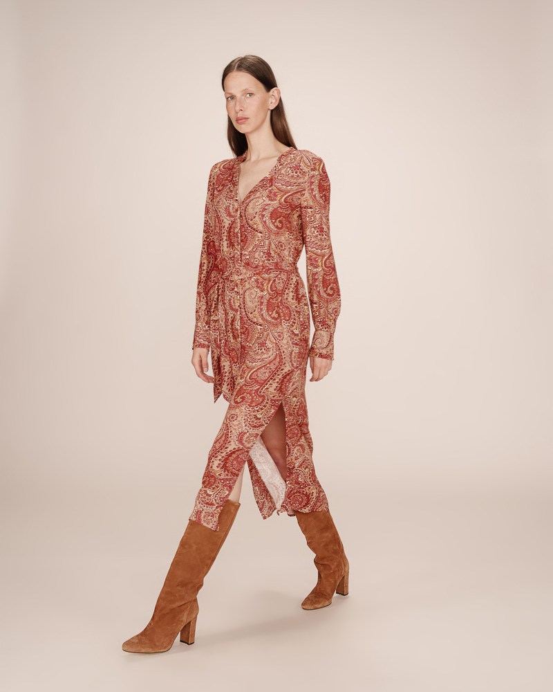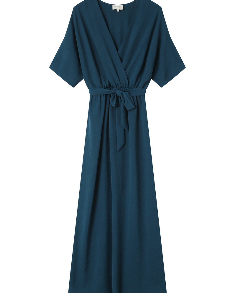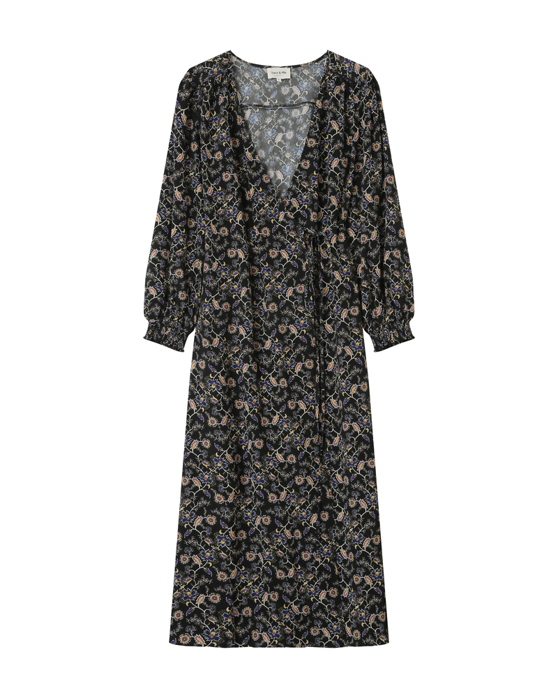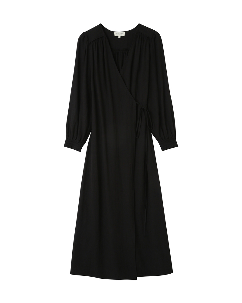 Made from lurex fabric, the TALIA long dress is a must-have of the season. Metallic threads are woven into this piece to create a radiant fabric. Details such as long puff sleeves and a V-neckline highlight the femininity of the style. The TALIA wrap dress features an elasticated waistband at the back and a tie belt at the waist to structure the silhouette.