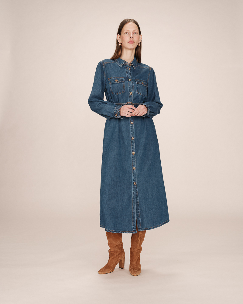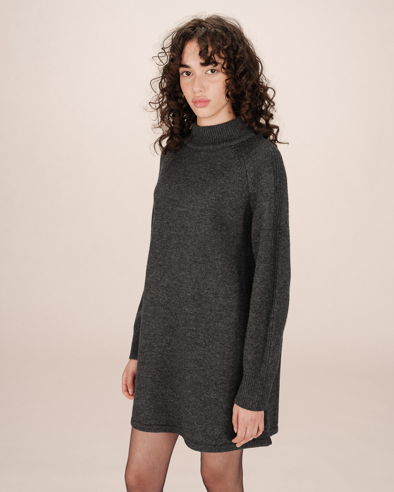 Confectionnée en laine et coton mélangés, la robe en maille TALCY ajoute à la collection une pièce chaude et féminine. Avec son col cheminée et ses manches longues, la robe s'invite facilement dans le vestiaire de la saison. La coupe ajustée sublime les courbes féminines tandis que les détails, tels que la fente boutonnée sur le côté, en font une pièce travaillée.