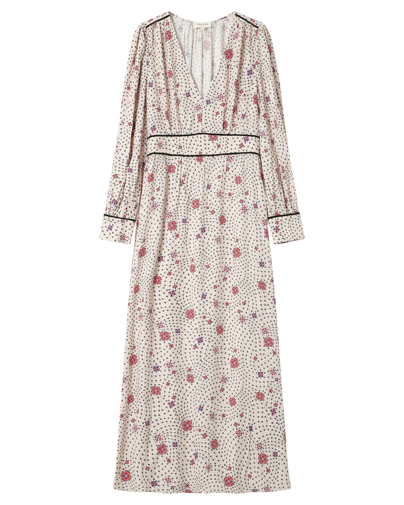 Les éléments classiques de la robe en velours TIVOLI, tels que l'encolure bateau et la longueur mi-mollet, s'associent à une coupe ajustée et à des détails twistés pour une silhouette féminine et moderne. Confectionnée dans un tissu en velours, la robe longue TIVOLI est sublimée par des fronces à la taille qui ajoutent du mouvement à la silhouette.