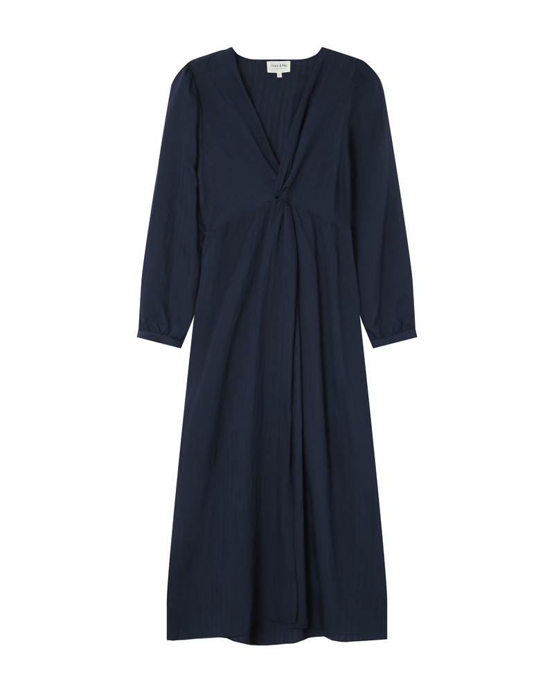 Le tissu fluide de la robe en maille TILLEUL accompagne chaque mouvement, tandis que le lien à nouér à la taille structure la silhouette pour sublimer avec élégance les courbes féminines. Le modèle possède une encolure en V, une coupe droite et des manches longues. La robe en maille TILLEUL est une pièce résolument féminine et sophistiquée.