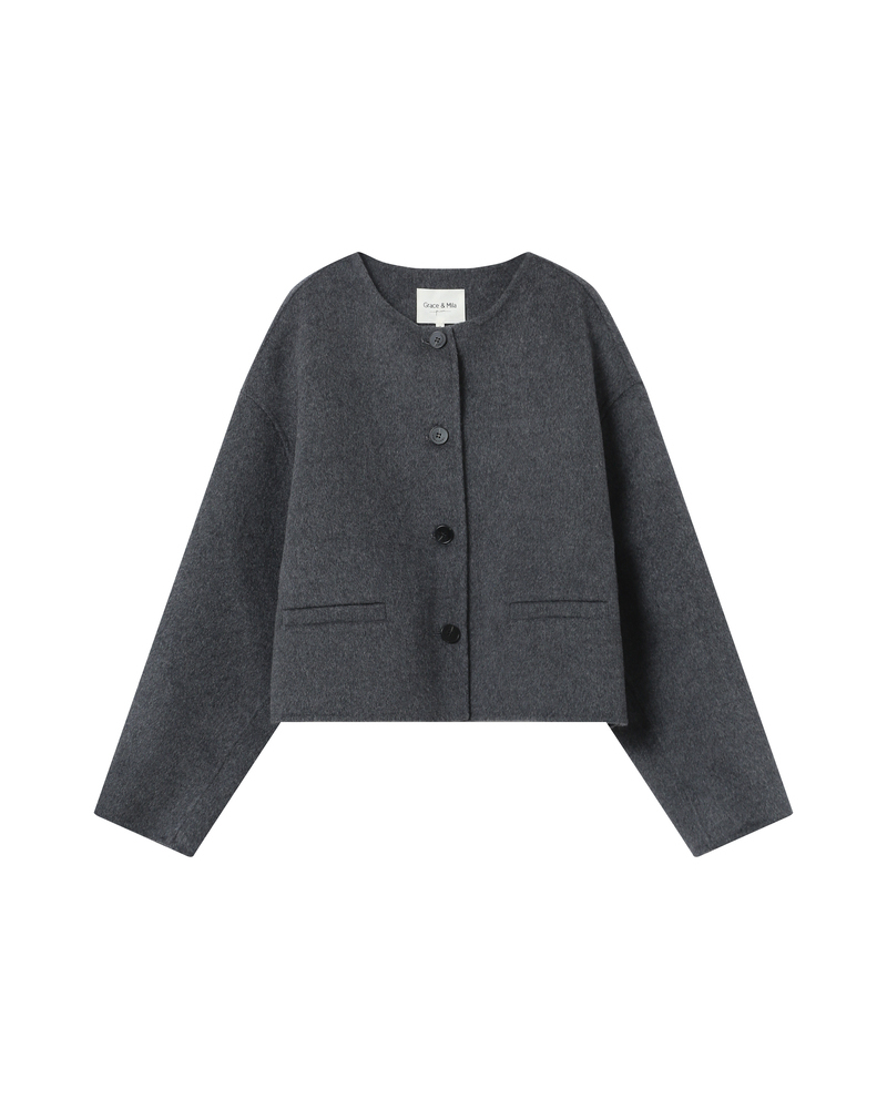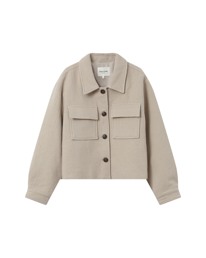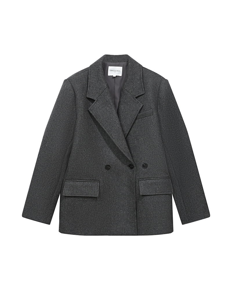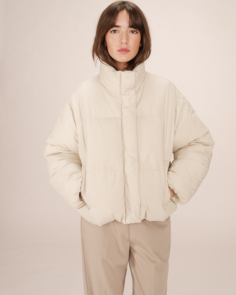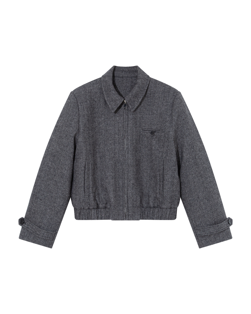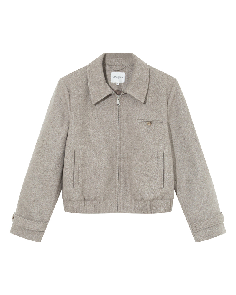 The TIFFANY boxy jacket is made from a herringbone wool blend, giving it a structured and modern look. This chic and sophisticated piece features long sleeves with buttoned tabs, a faux pocket, and an elasticated waist. The lightly quilted lining and the G&M engraved zipper make it a piece with refined details. The TIFFANY wool jacket is a timeless piece that creates a defined silhouette.