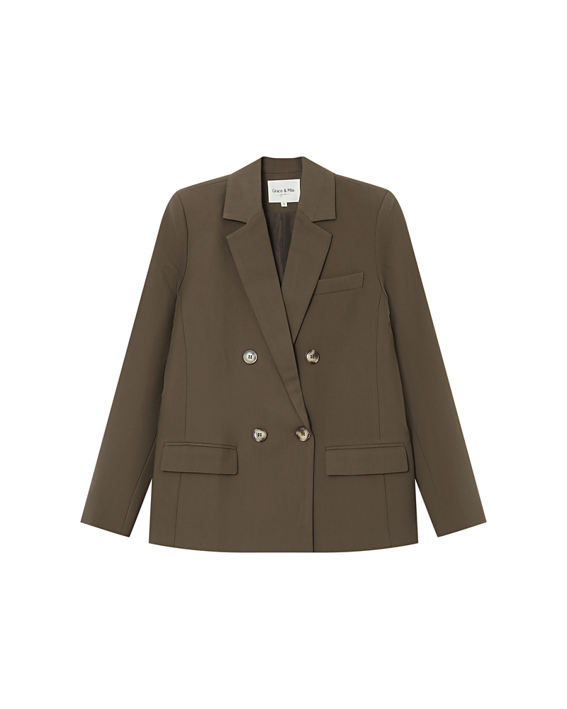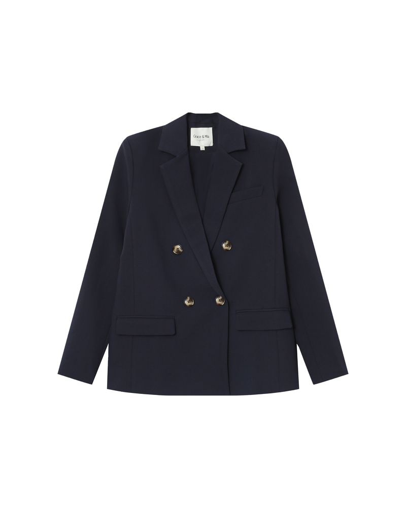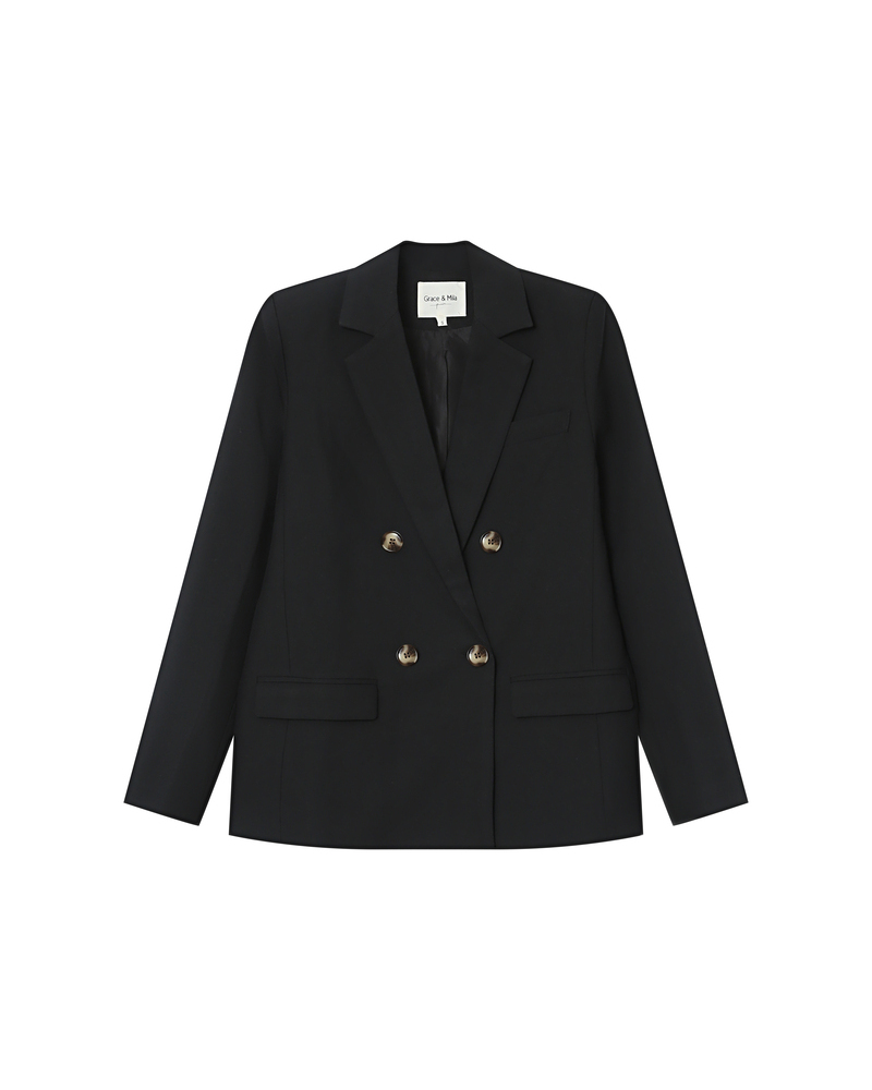 The SUREAU tailored blazer is a bold piece inspired by menswear. It features an elegant straight cut, enhanced by a double-breasted front and notched lapel collar. The flap welt pockets and horn-effect buttons of the SUREAU long-sleeved blazer add extra character. A structured and timeless piece that creates a chic, modern silhouette.