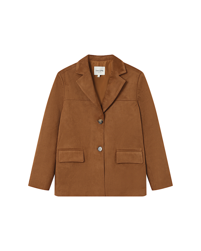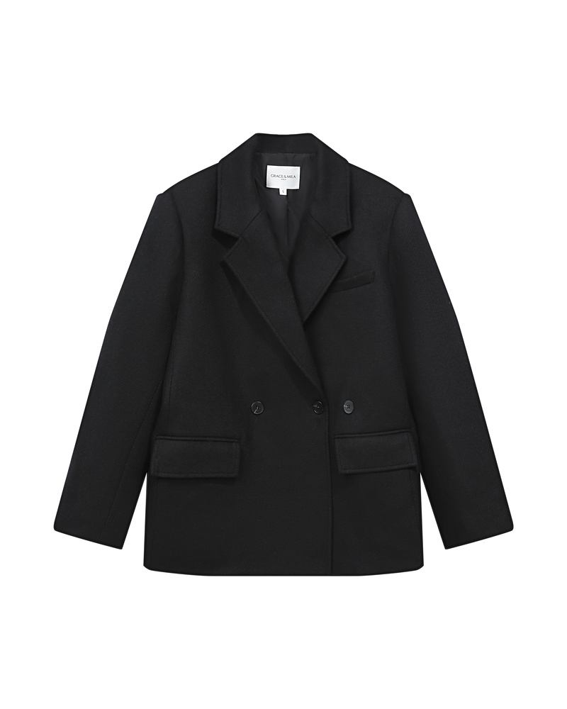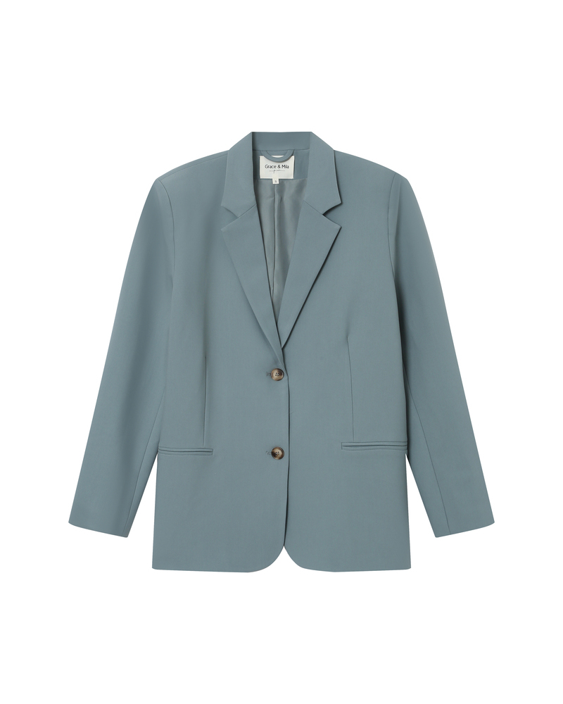 The STRONG tailored blazer embodies bold elegance and is inspired by menswear. The straight cut and notched lapel collar create a structured and timeless silhouette. The welt pockets and horn-effect buttons add a touch of understated refinement. The STRONG blazer is a must-have piece in the feminine wardrobe. The model is fully lined.