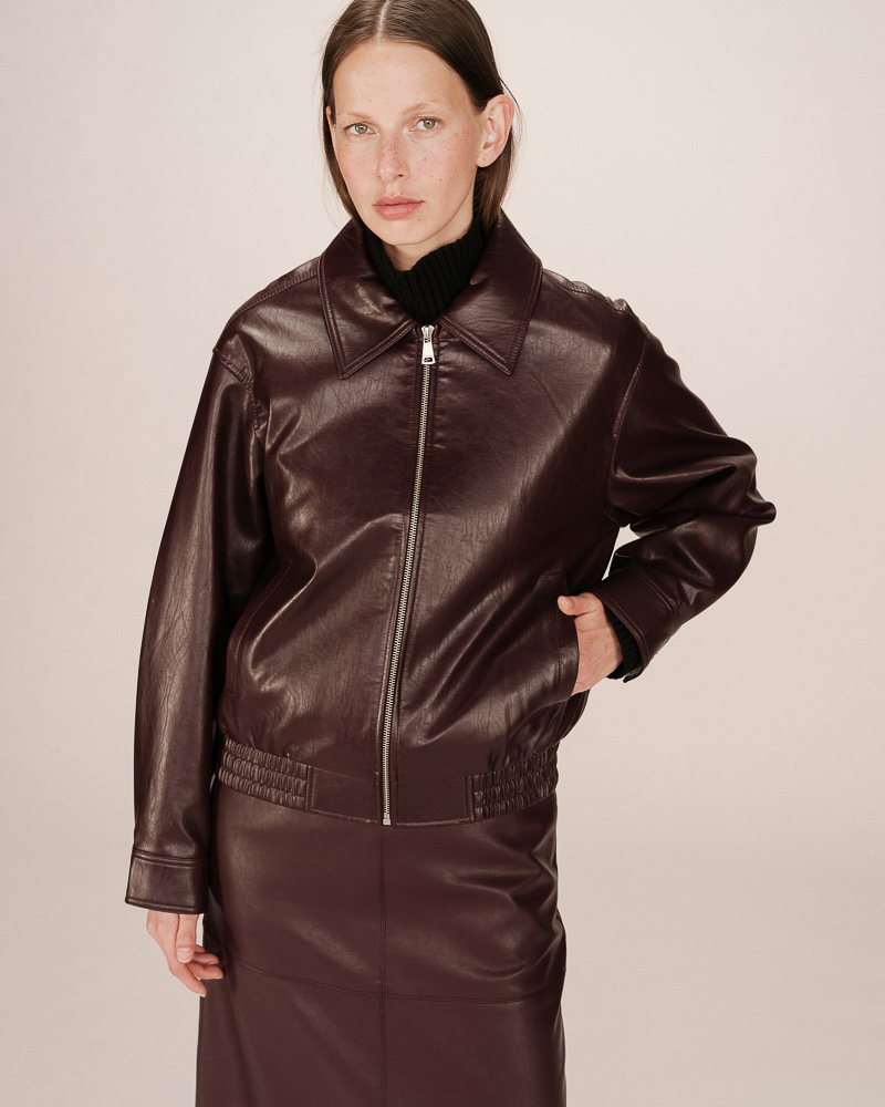 The SUNISA faux leather jacket is a must-have for the autumn/winter season. Its oversized cut combines with long sleeves and a classic collar to create a modern and timeless silhouette. The SUNISA oversized coat features a front zip closure, side pockets, and a pointed seam detail at the back. The piece is fully lined.