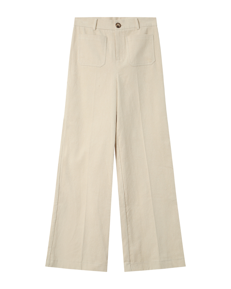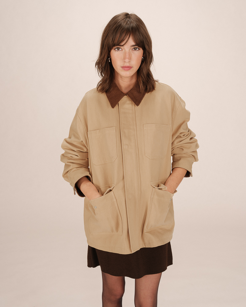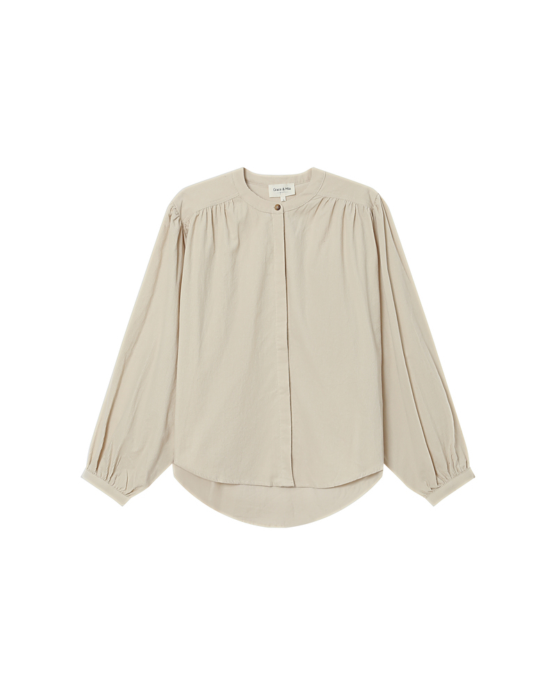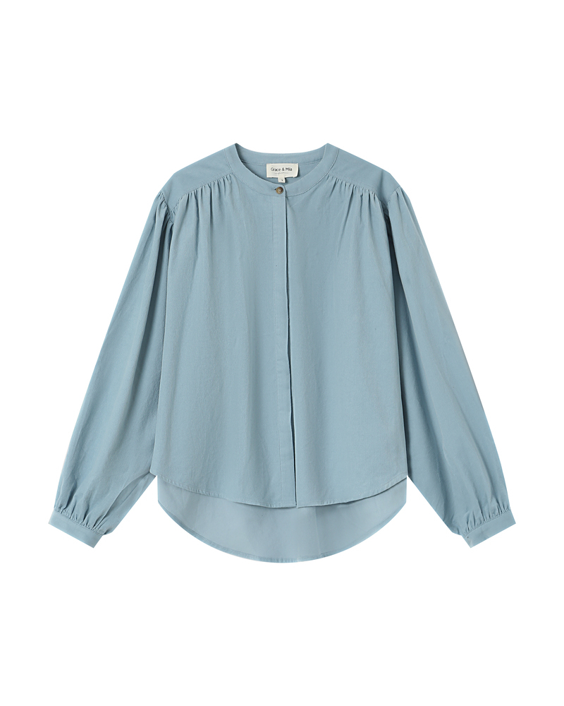 The SURI oversized blouse is crafted from 100% cotton corduroy, blending comfort with a retro touch. The long puff sleeves with buttoned cuffs add soft volume to the silhouette. The SURI corduroy blouse features gathering at the shoulders and back yoke for an elegant play of textures.