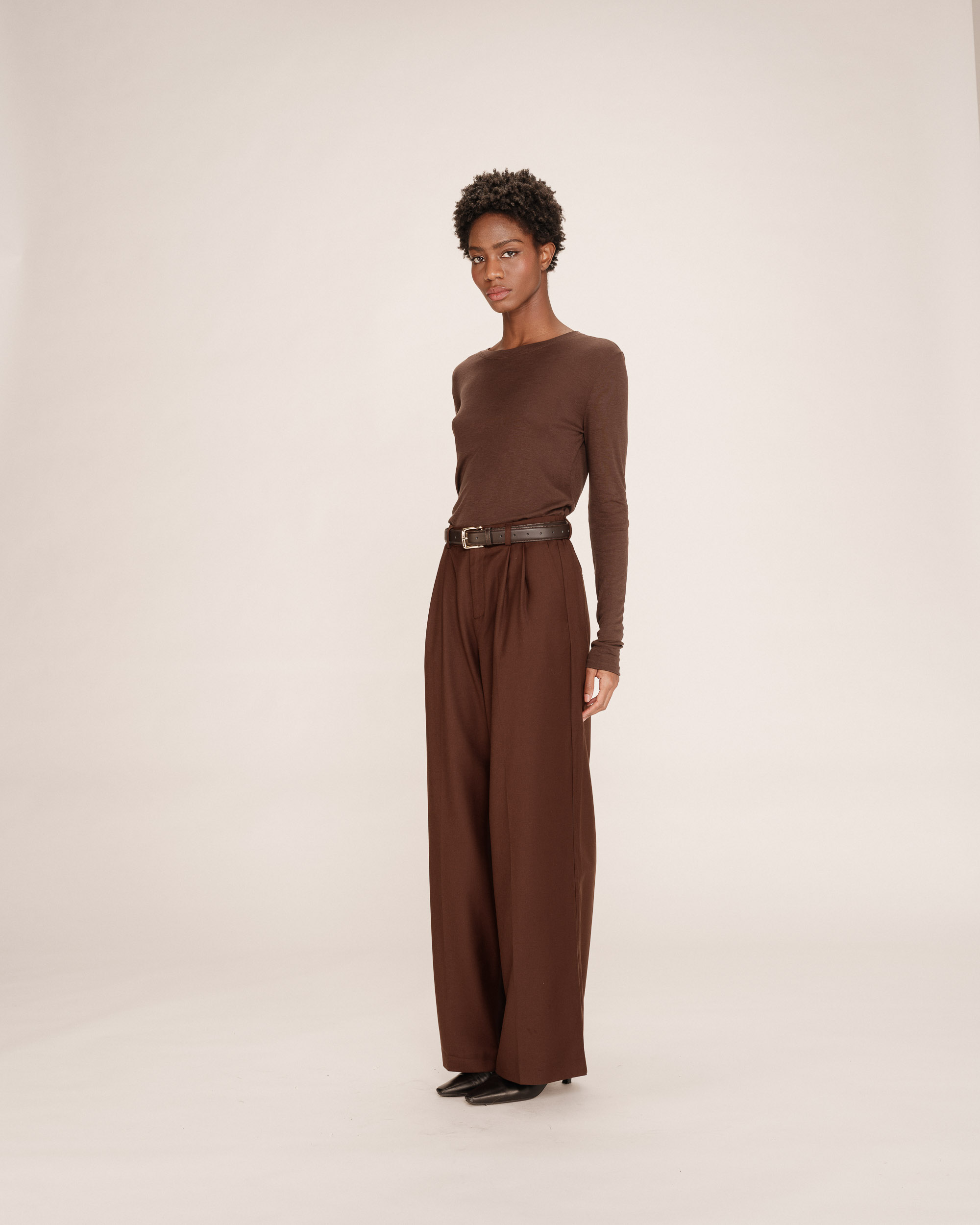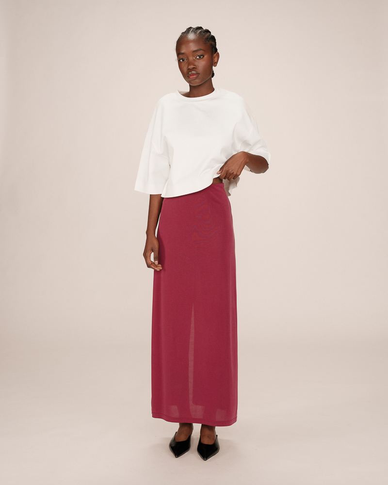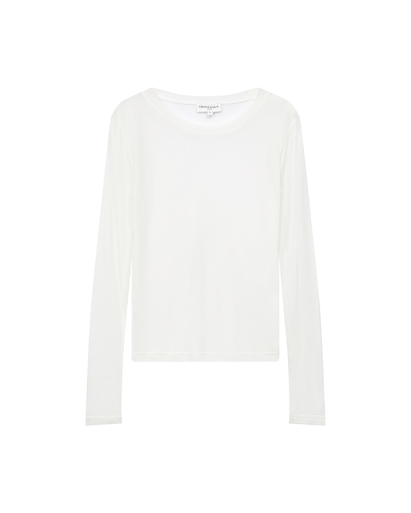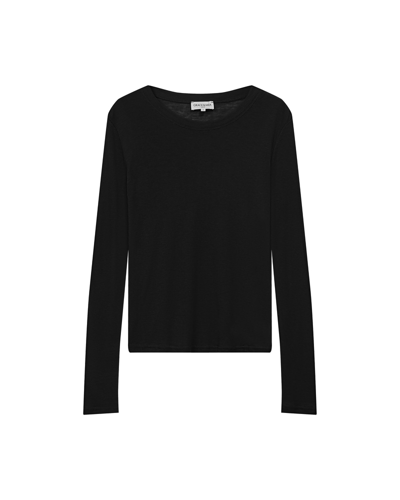 The TONI long-sleeve T-shirt is crafted from a slightly sheer wool-blend jersey for a feminine and relaxed look. The round neckline, long sleeves, and straight cut adapt to every woman's curves. The TONI jersey top is a feminine essential that easily complements the everyday wardrobe.