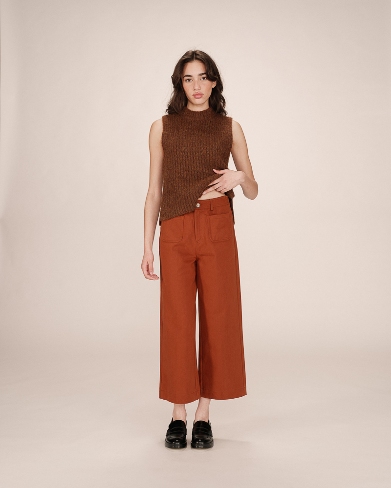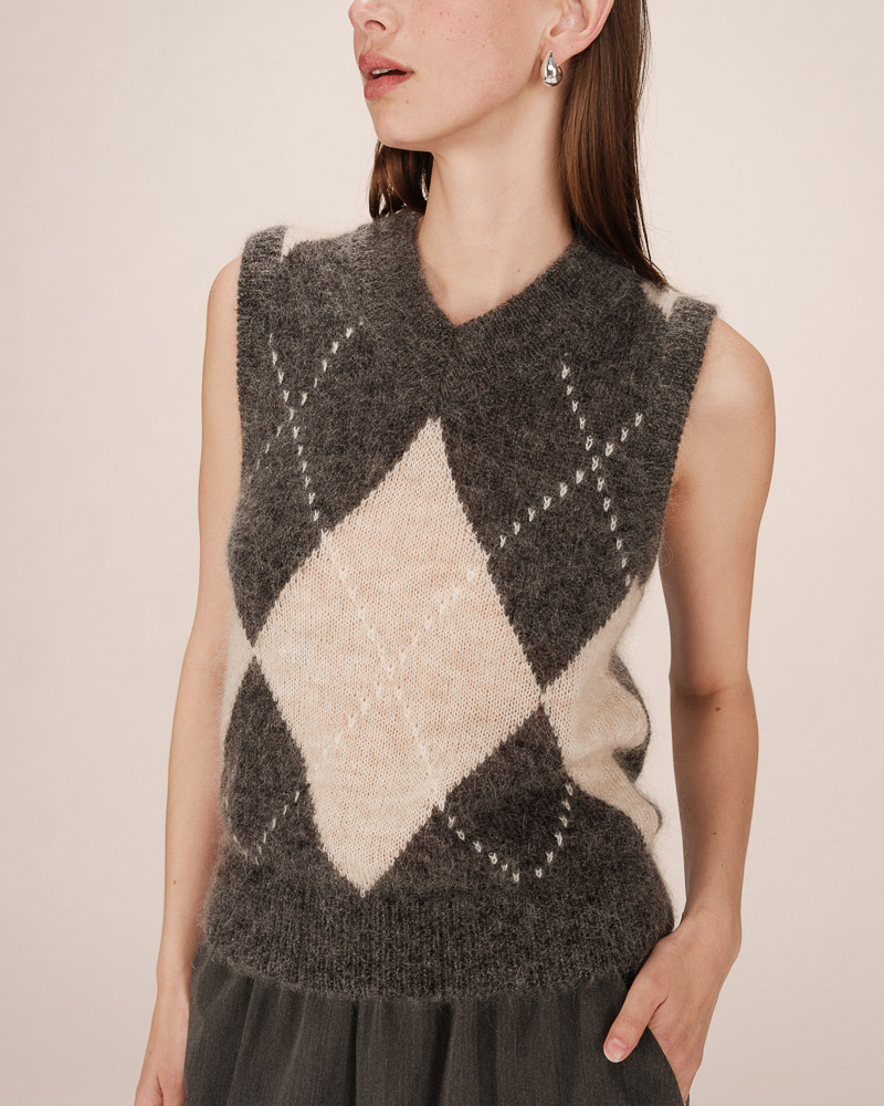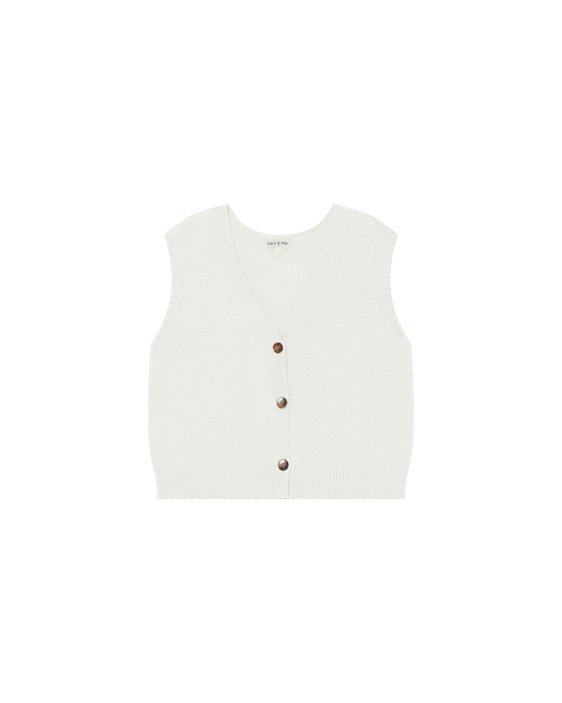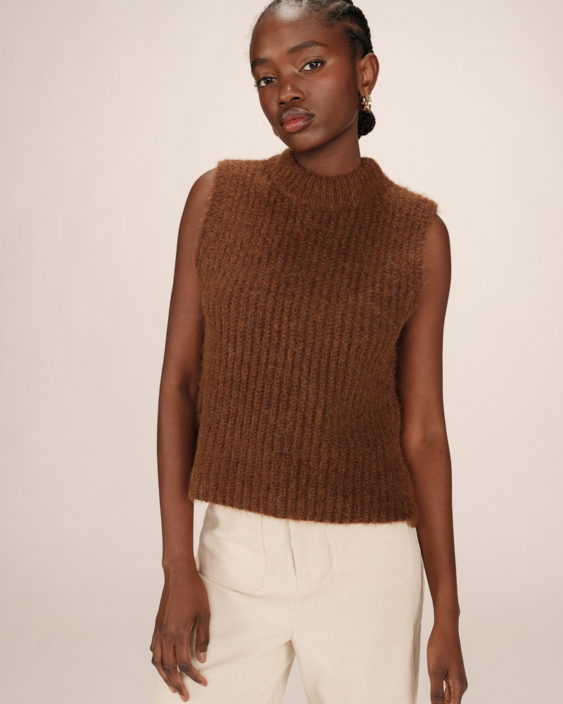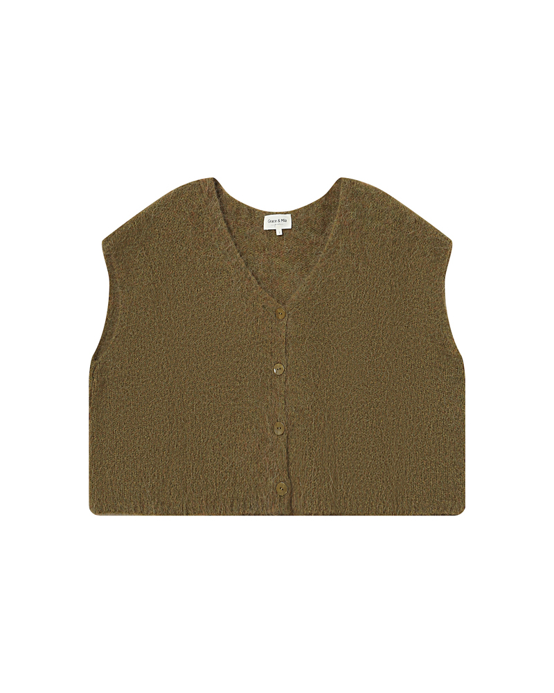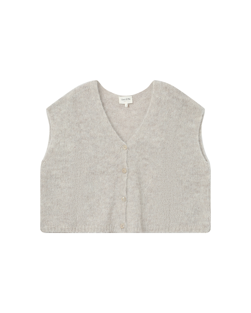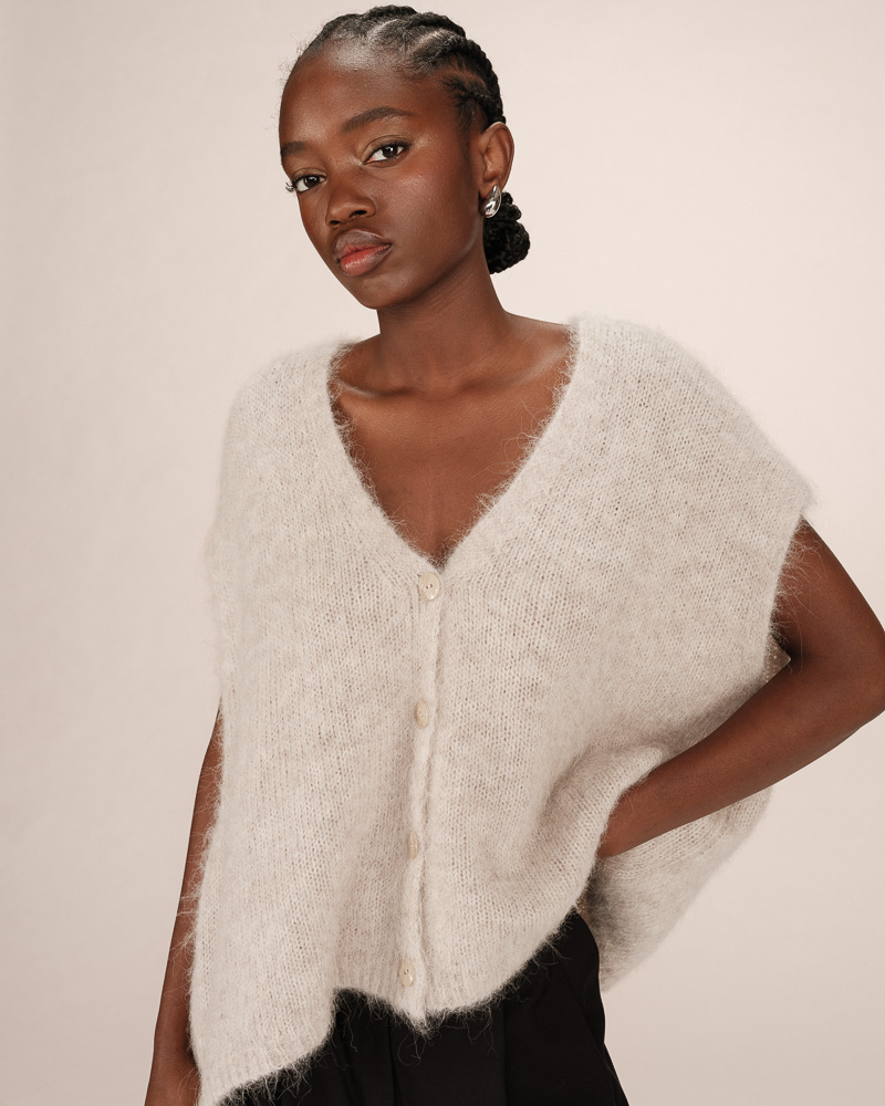 The SAVANT sleeveless cardigan is a piece knitted in a blended alpaca and wool yarn. Its loose fit and V-neckline flatter all body shapes and enhance feminine curves. The button fastening at the front adds a touch of classic elegance to this modern and versatile piece.