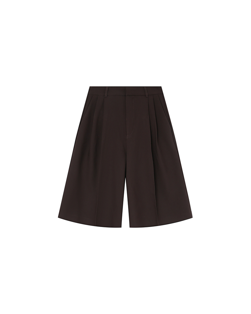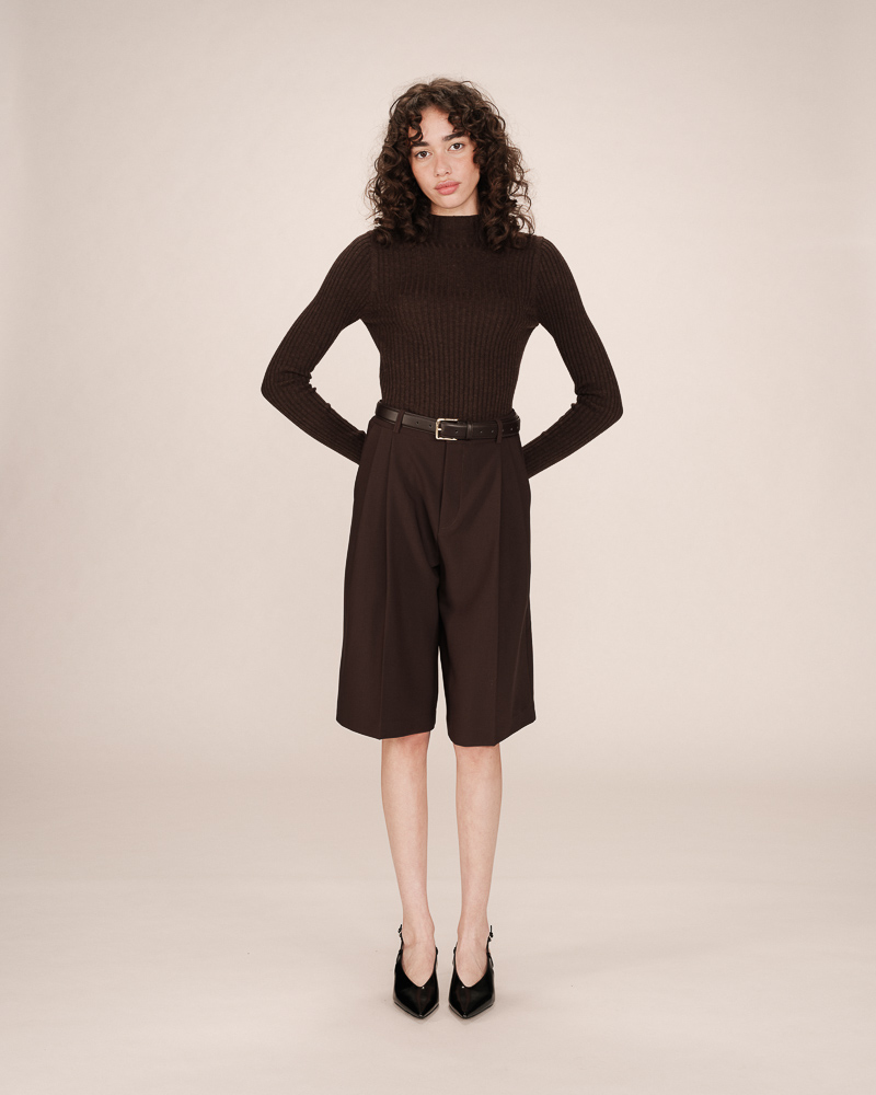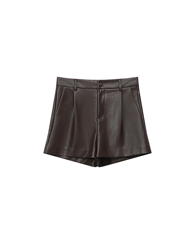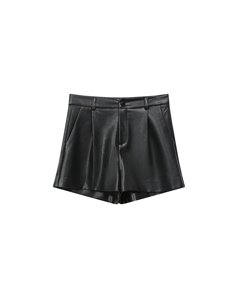 Faux leather dresses the TRAVIS wide shorts to create a modern and trendy piece. The model features a high waist and front pleats that shape an elegant and sophisticated silhouette. The TRAVIS faux leather shorts are a wardrobe essential for a bold and confident style.