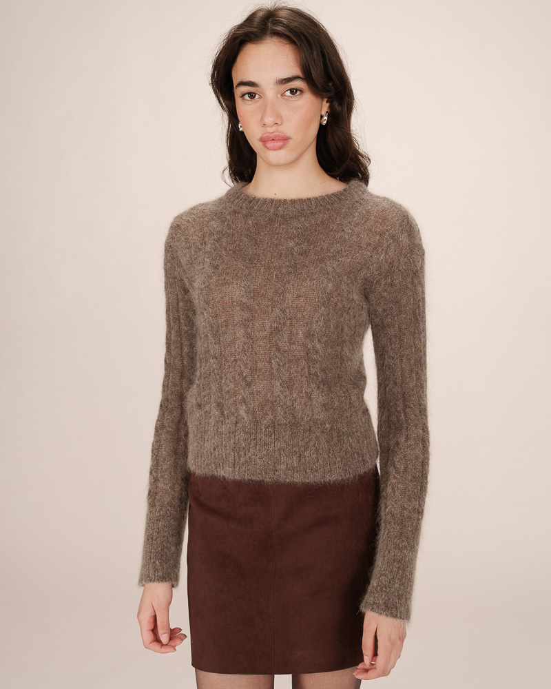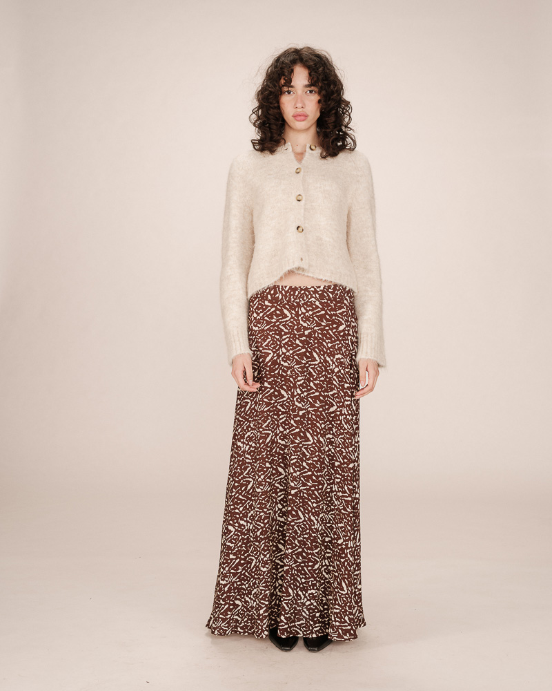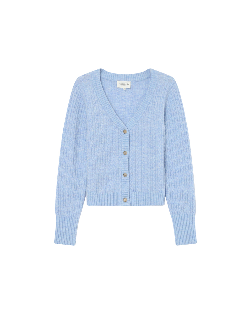 The SAMSO knitted cardigan enchants with its delicate cable-knit pattern, creating a look that is both soft and refined. The cropped, fitted cut enhances the silhouette, while the V-neckline and button placket give it a feminine feel. The ribbed trims on the SAMSO buttoned cardigan add a structured finish.