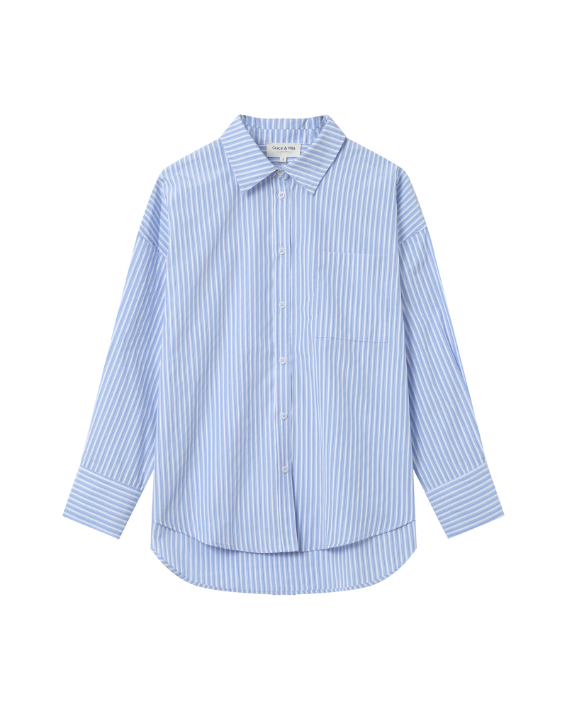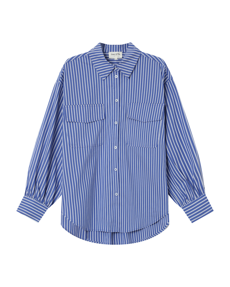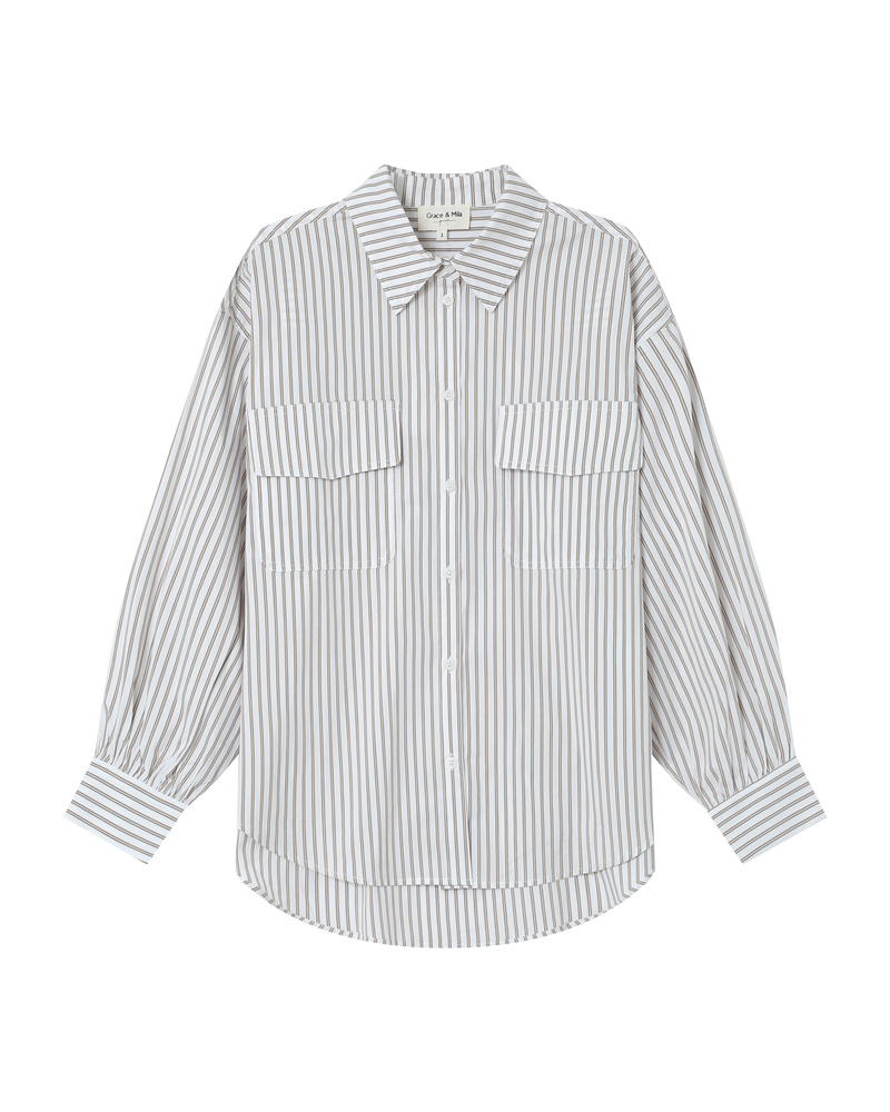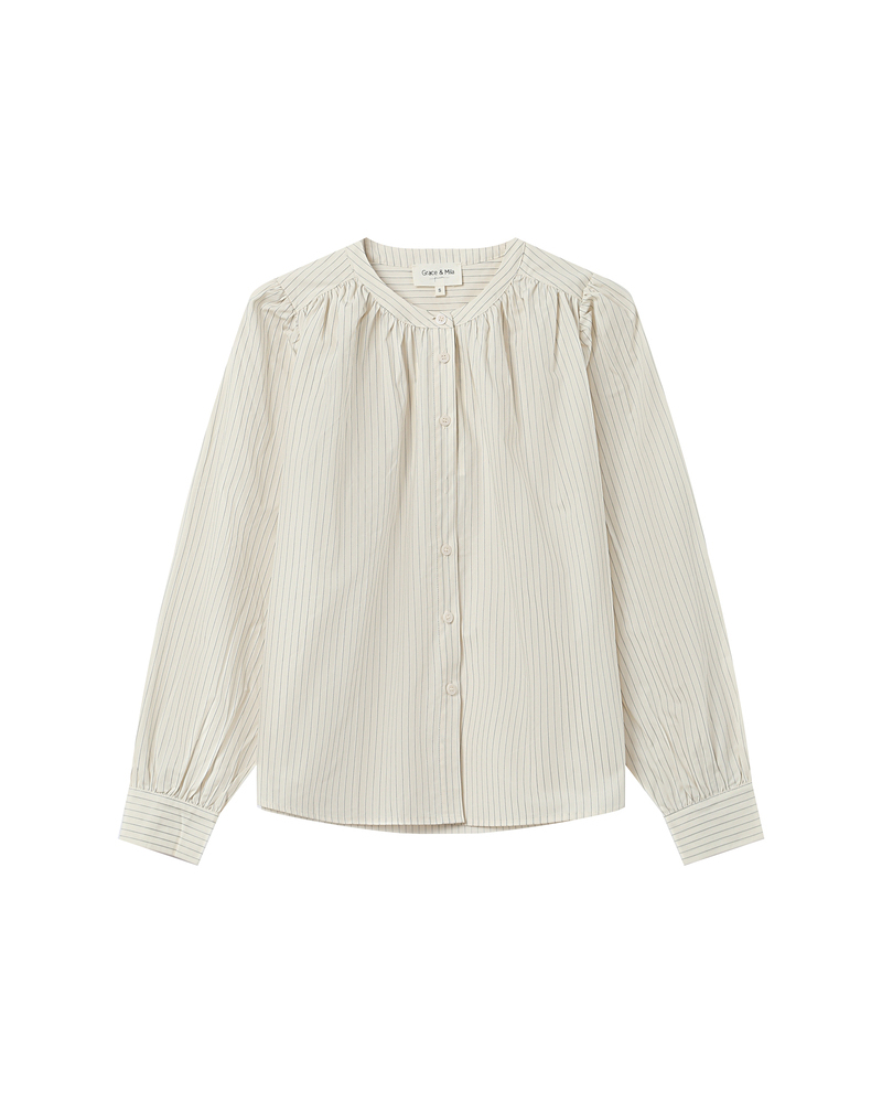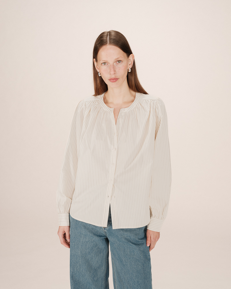 Made from 100% cotton, the SISSI striped blouse is a feminine and refined piece. The straight cut is enhanced by gathered details at the collar, cuffs, and panels, adding volume and movement. With its round neckline and clean lines, the SISSI cotton blouse blends retro charm with modern style.