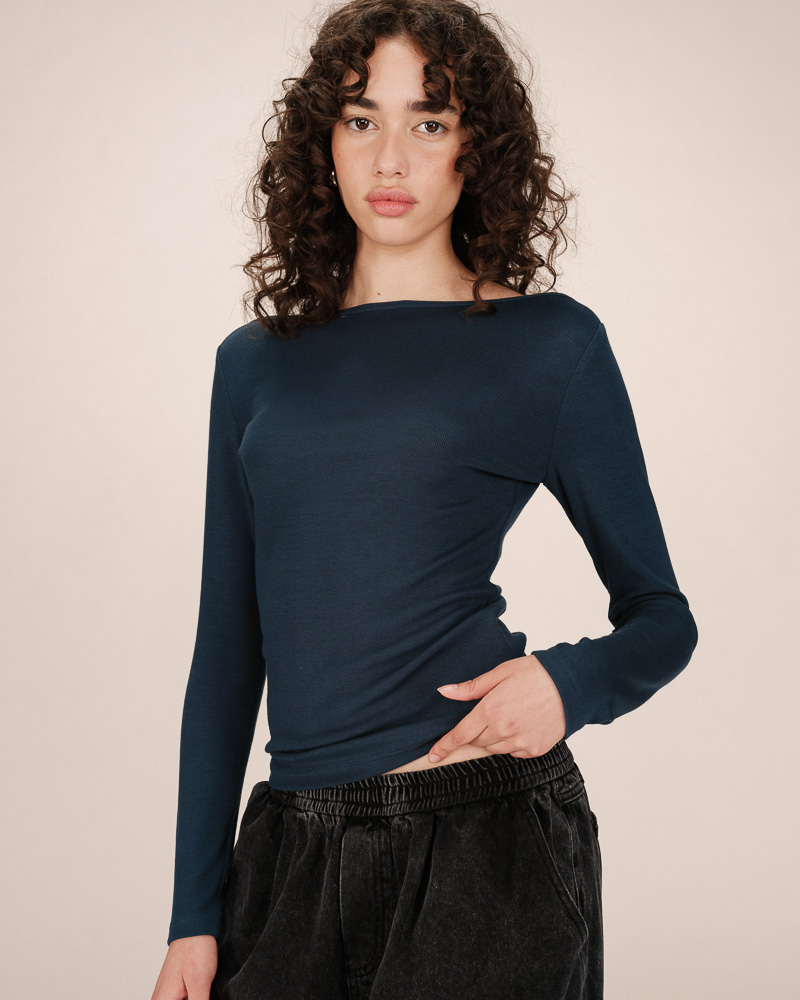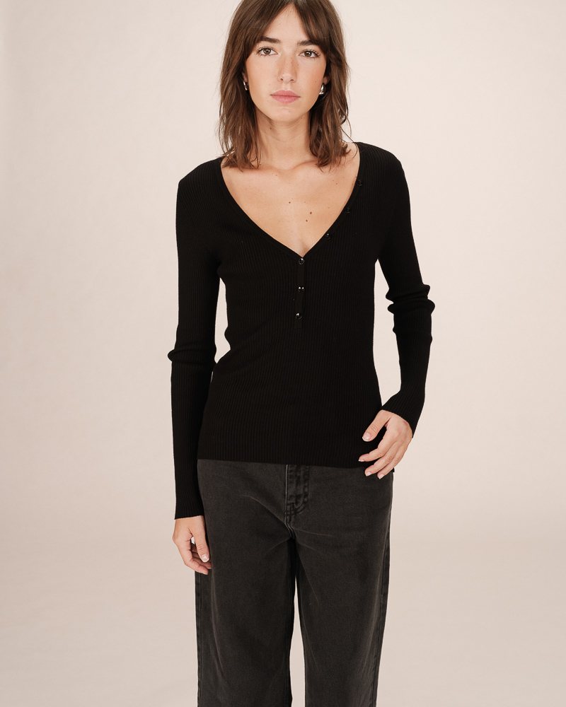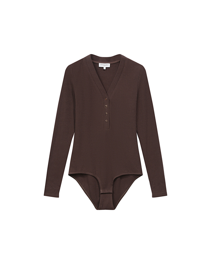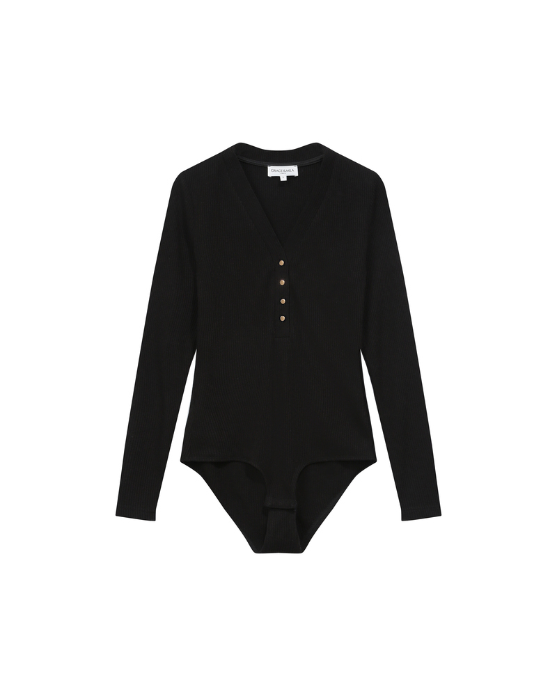 The TARO long-sleeve bodysuit is a wardrobe essential from the collection. The V-neckline is enhanced with a button placket that allows you to adjust the depth of the neckline. Soft and comfortable, the TARO ribbed bodysuit offers a fitted cut and creates a relaxed silhouette.