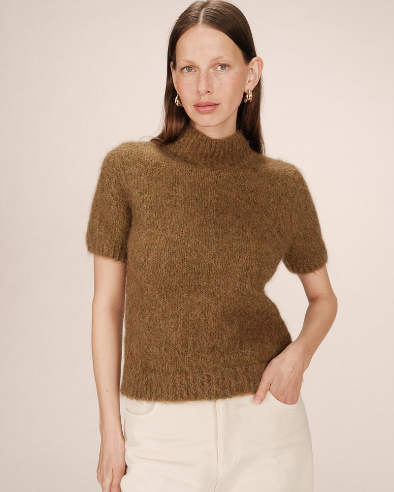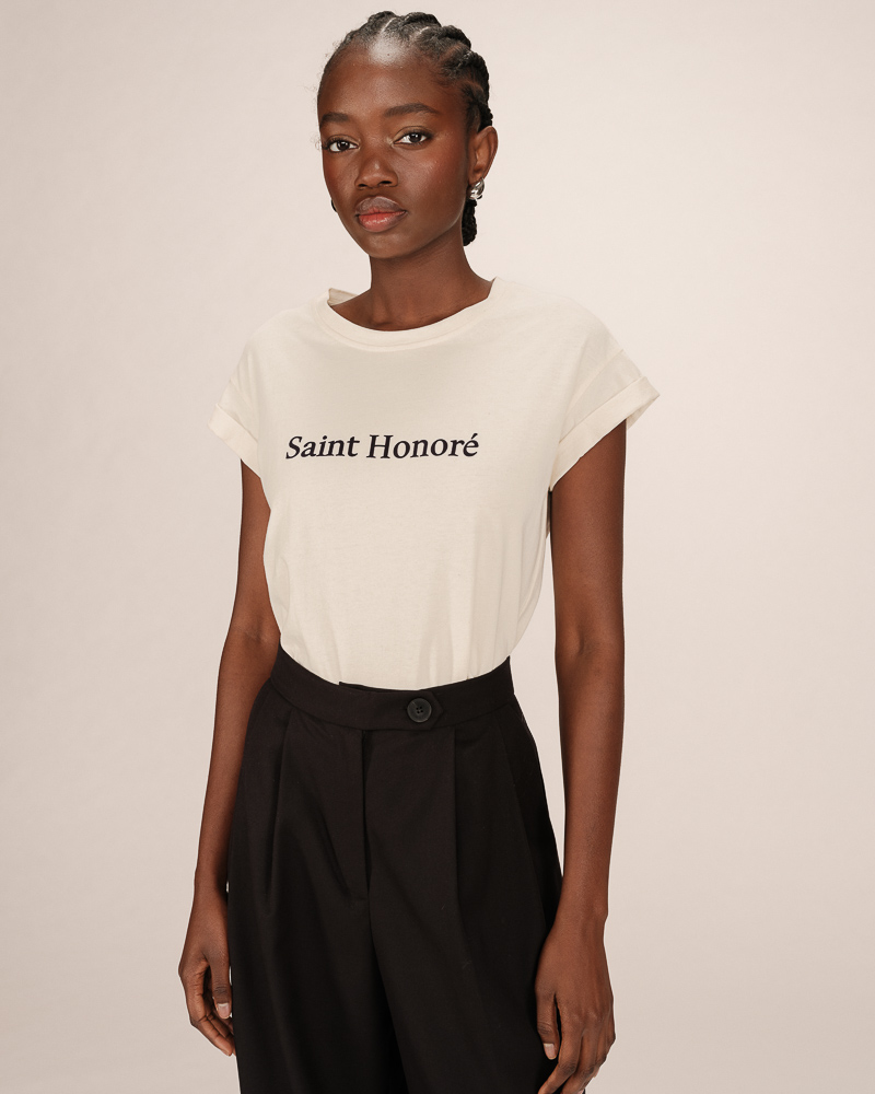The TIM short-sleeve top is a timeless piece from the Maison. The classic lines of the design adapt to every woman's curves. The V-neckline of the TIM straight top is enhanced with a lurex trim that highlights the neckline and adds a touch of femininity to the piece.