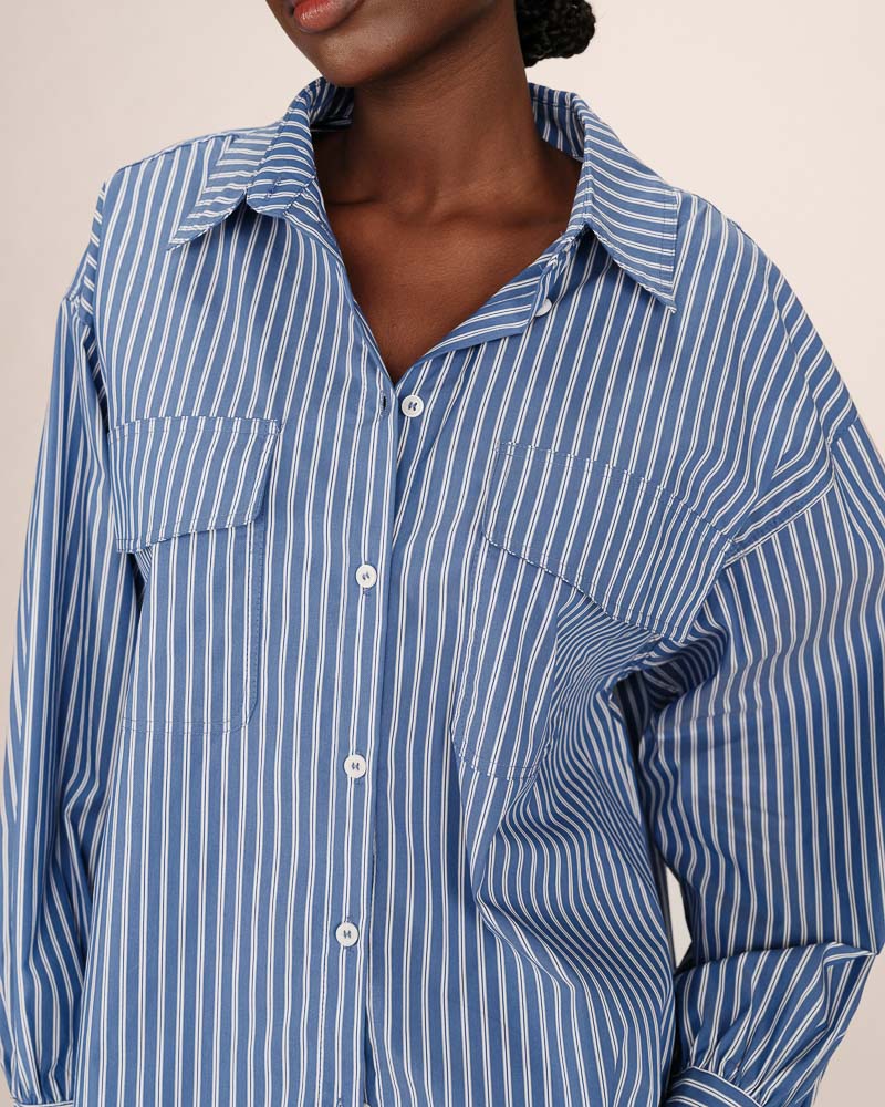 //// Confectionnée en 100% coton, la blouse rayée SISSI est une pièce féminine et raffinée. La coupe droite est sublimée par des détails de fronces au col, aux poignets et aux empiècements, apportant du volume et du mouvement. Avec l'encolure ronde et les lignes épurées, la blouse en coton SISSI conjugue charme rétro et modernité.