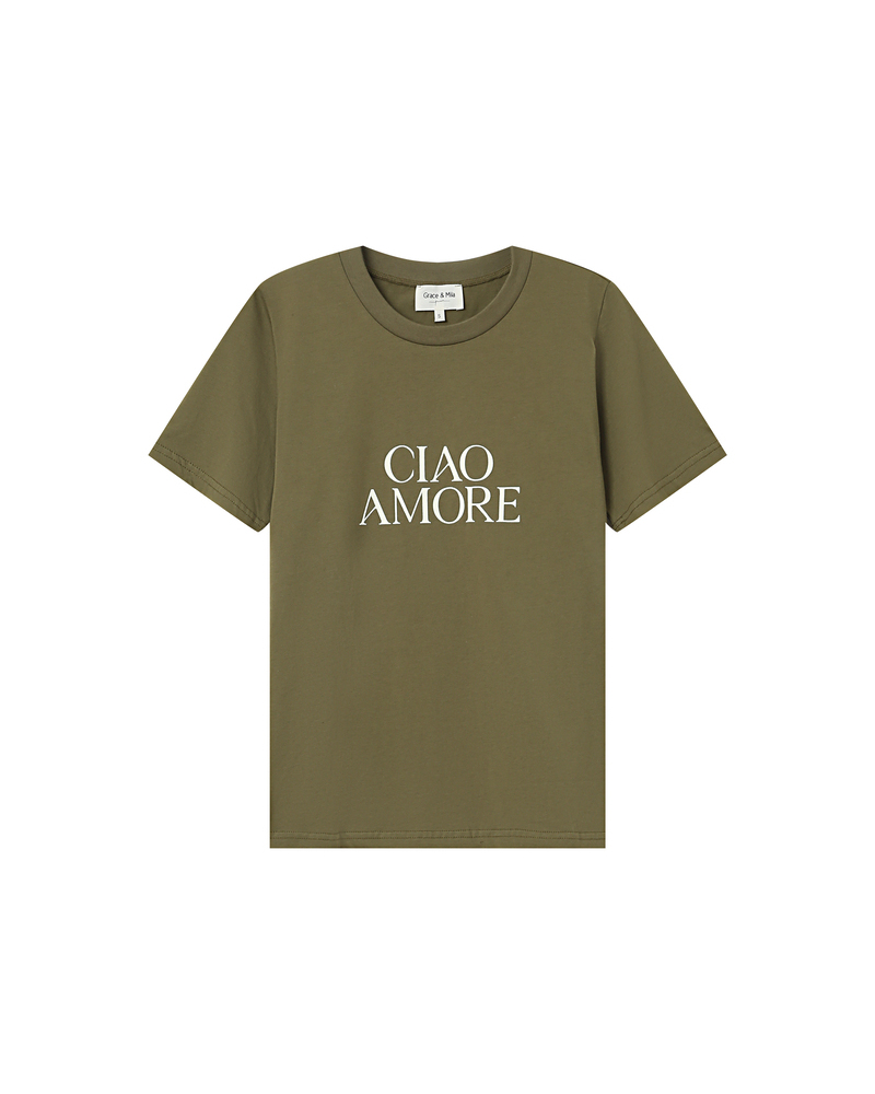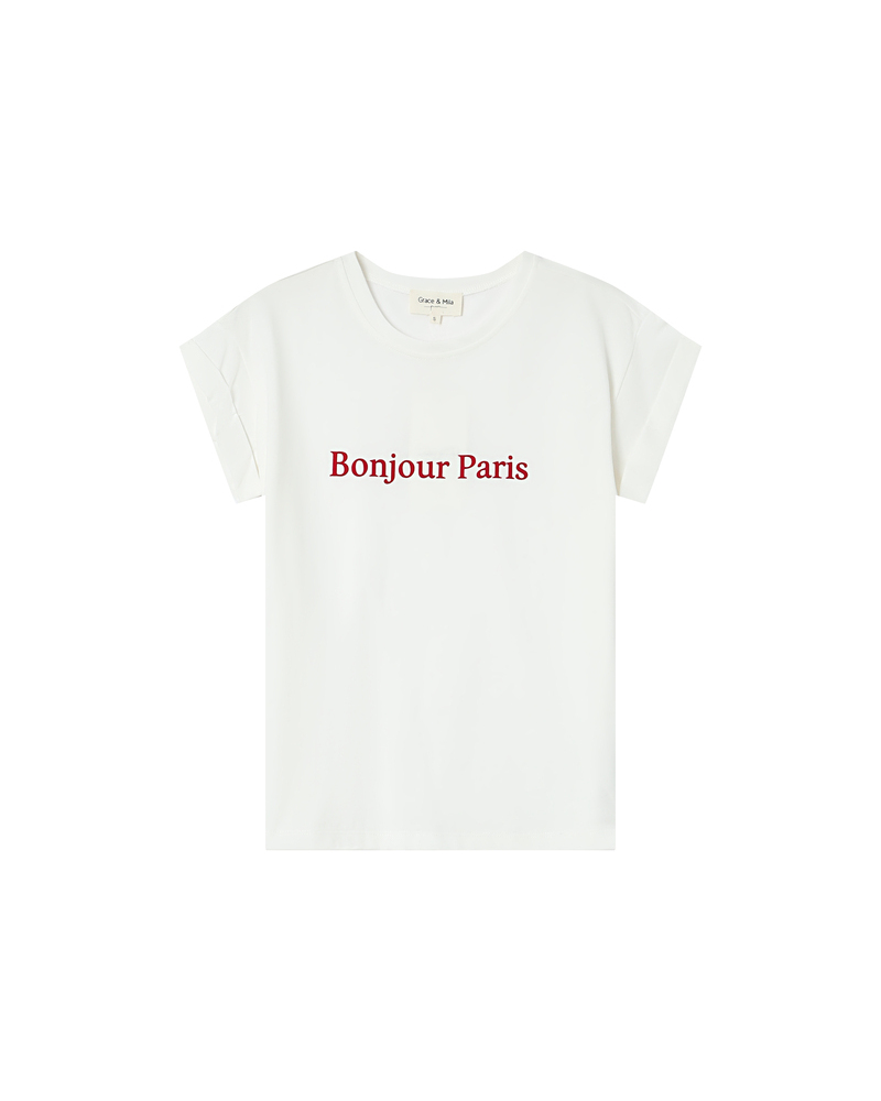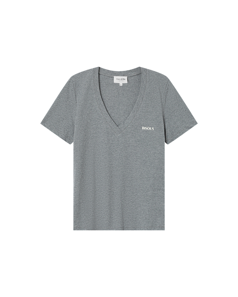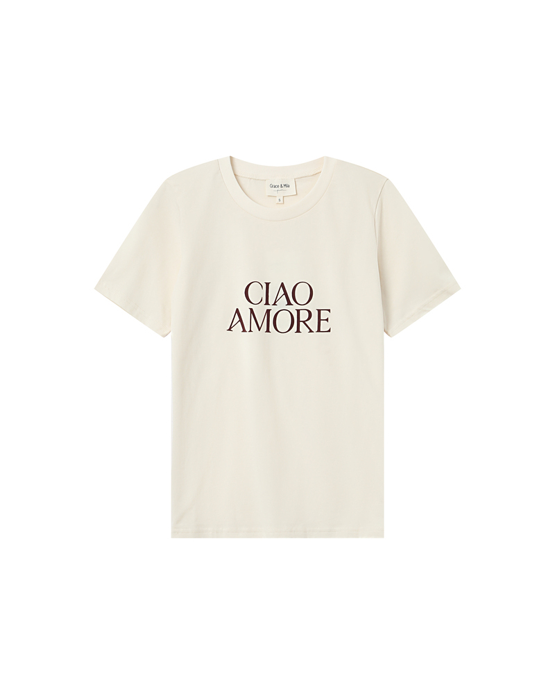 The TAKE short-sleeved T-shirt is made of 100% cotton. This everyday essential easily fits into the wardrobe. Its short sleeves, round neckline, and straight cut adapt to every woman's shape. The TAKE printed T-shirt is available with the messages 'KISS', 'HEART', and 'DREAM' printed inside a velvet heart.