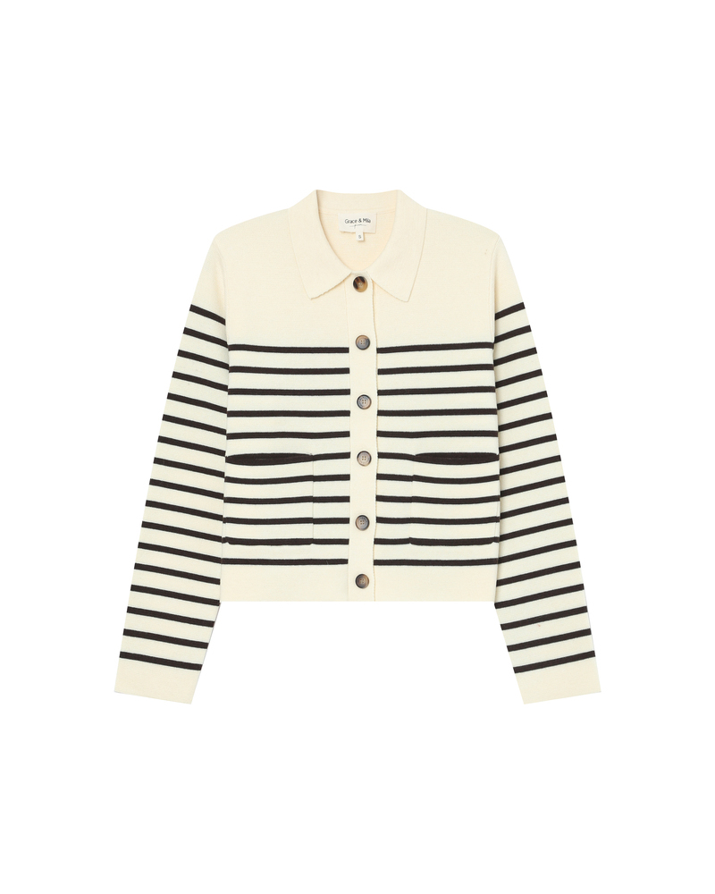 The SAILOR long-sleeved cardigan is a timeless piece that combines comfort and elegance. Made from Milano knit, this style offers structure with softness, featuring a straight cut and neat finishes. The shirt collar and patch pockets add a touch of revisited retro charm. Easy to wear, the SAILOR buttoned cardigan comes in solid or striped versions.