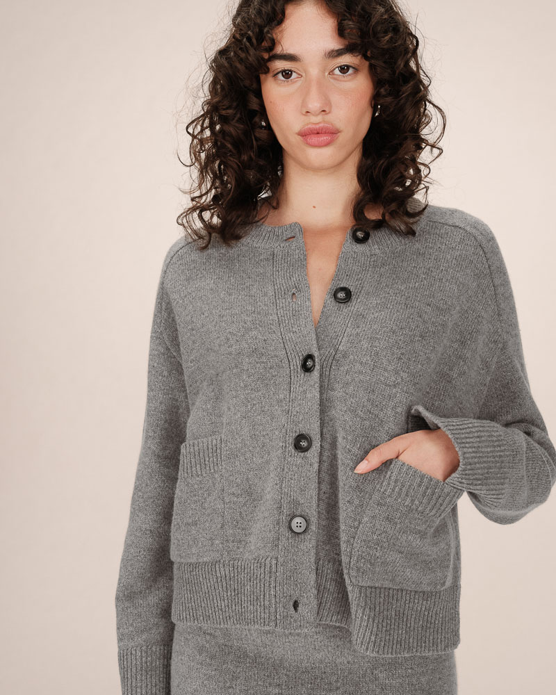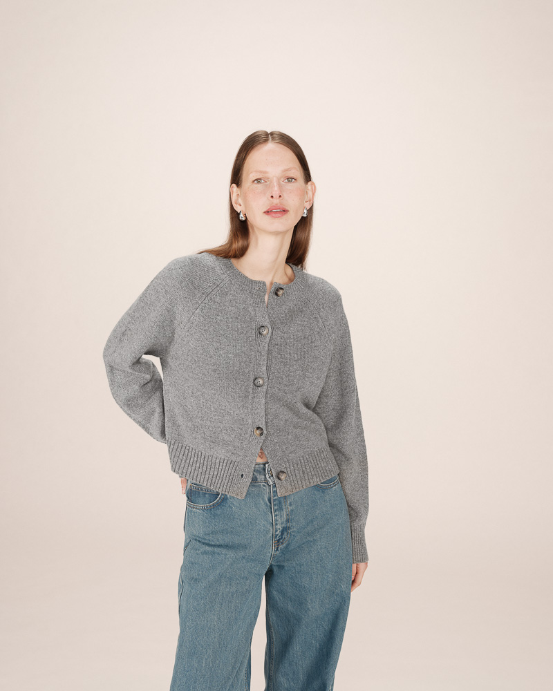 Knitted in a blend of wool and alpaca yarn, the SALMA buttoned cardigan is a soft and comfortable piece. Its straight cut and raglan sleeves create a relaxed silhouette, while the ribbed finishes give it structure. The round neckline and button fastening make the SALMA wool cardigan a perfect everyday essential.