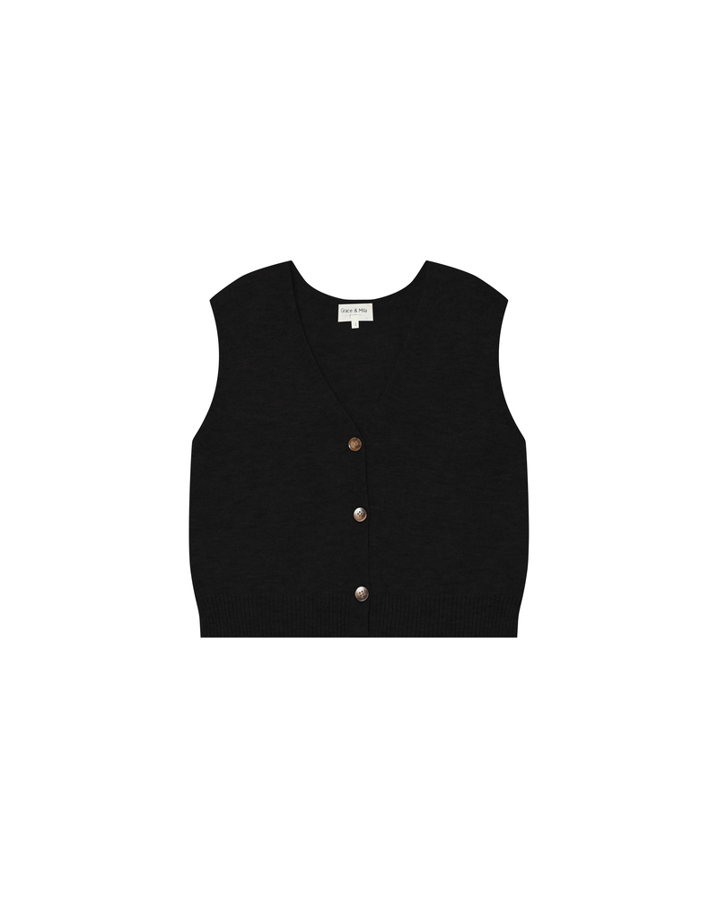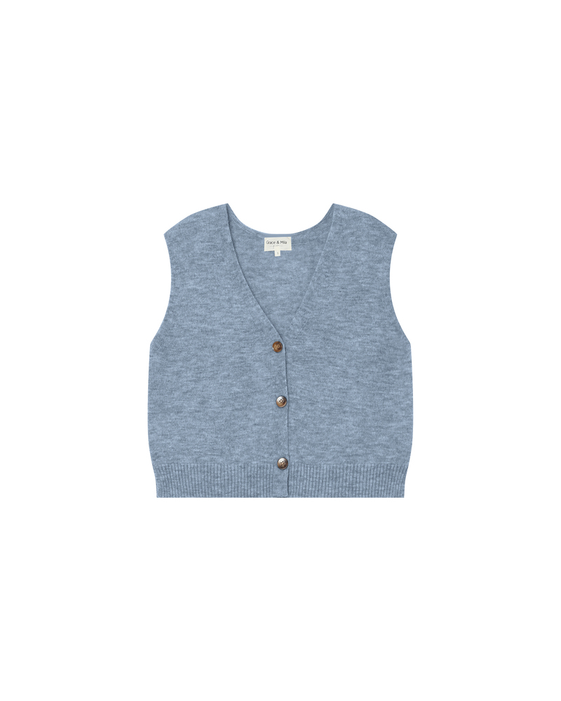 Made from a wool and mohair blend, the SANTA sleeveless cardigan is a warm piece with a trendy, modern look. This cardigan features refined finishes such as a buttoned front opening and side slits, making it a carefully crafted style. The SANTA wool and mohair cardigan is a seasonal must-have.
