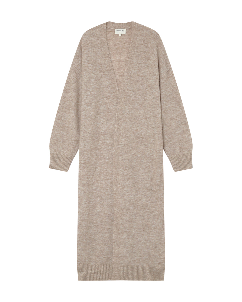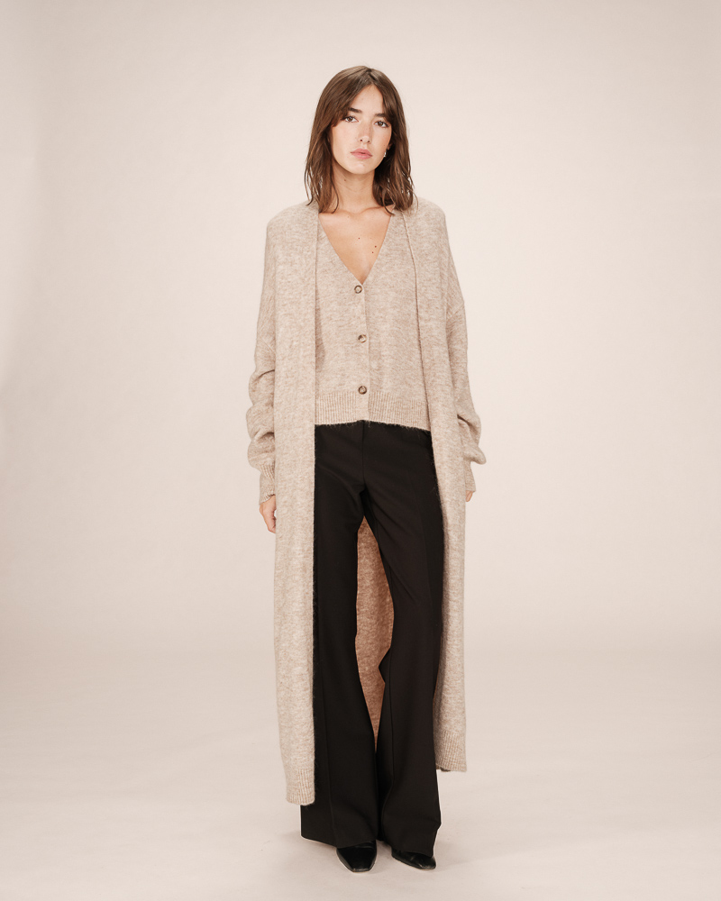 Warm and comfortable, the SANTIAGO long-sleeved cardigan is a must-have this season. Long and knitted in a blended wool and mohair yarn, the SANTIAGO knit cardigan creates a relaxed silhouette.
