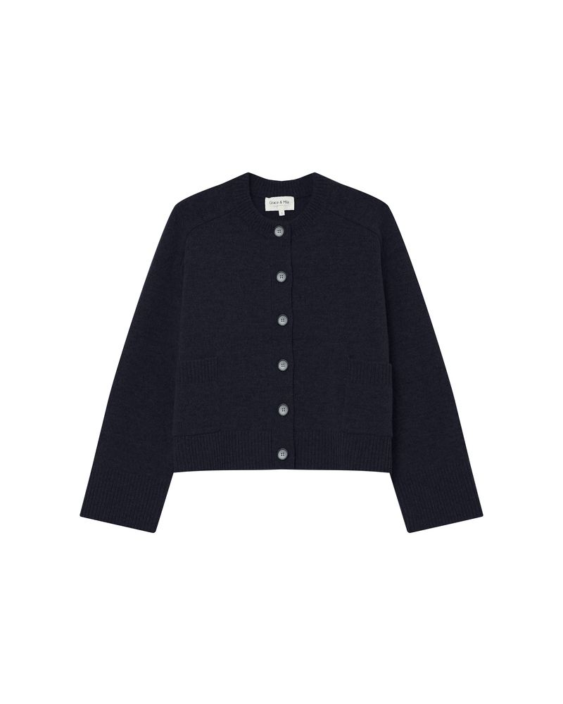 Knitted in a wool blend yarn, the SANDERS knit cardigan is a seasonal wardrobe essential. The long, wide sleeves tightened at the cuffs create a flattering volume. Classic elements such as the straight cut and round neckline are contrasted by an oversized fit for an elegant and timeless silhouette. The SANDERS wool cardigan features a front button placket.