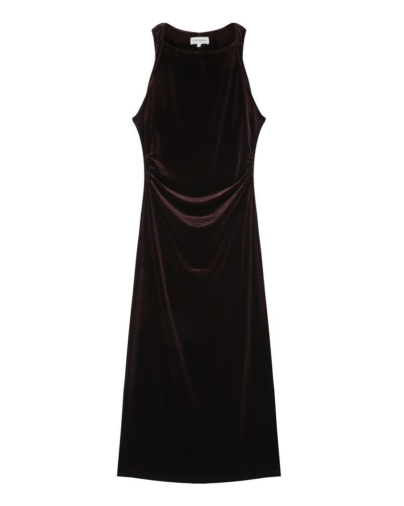 The classic elements of the TIVOLI velvet dress, such as the bateau neckline and mid-calf length, are combined with a fitted cut and twisted details for a feminine and modern silhouette. Made from velvet fabric, the TIVOLI long dress is enhanced by gathers at the waist that add movement to the silhouette.
