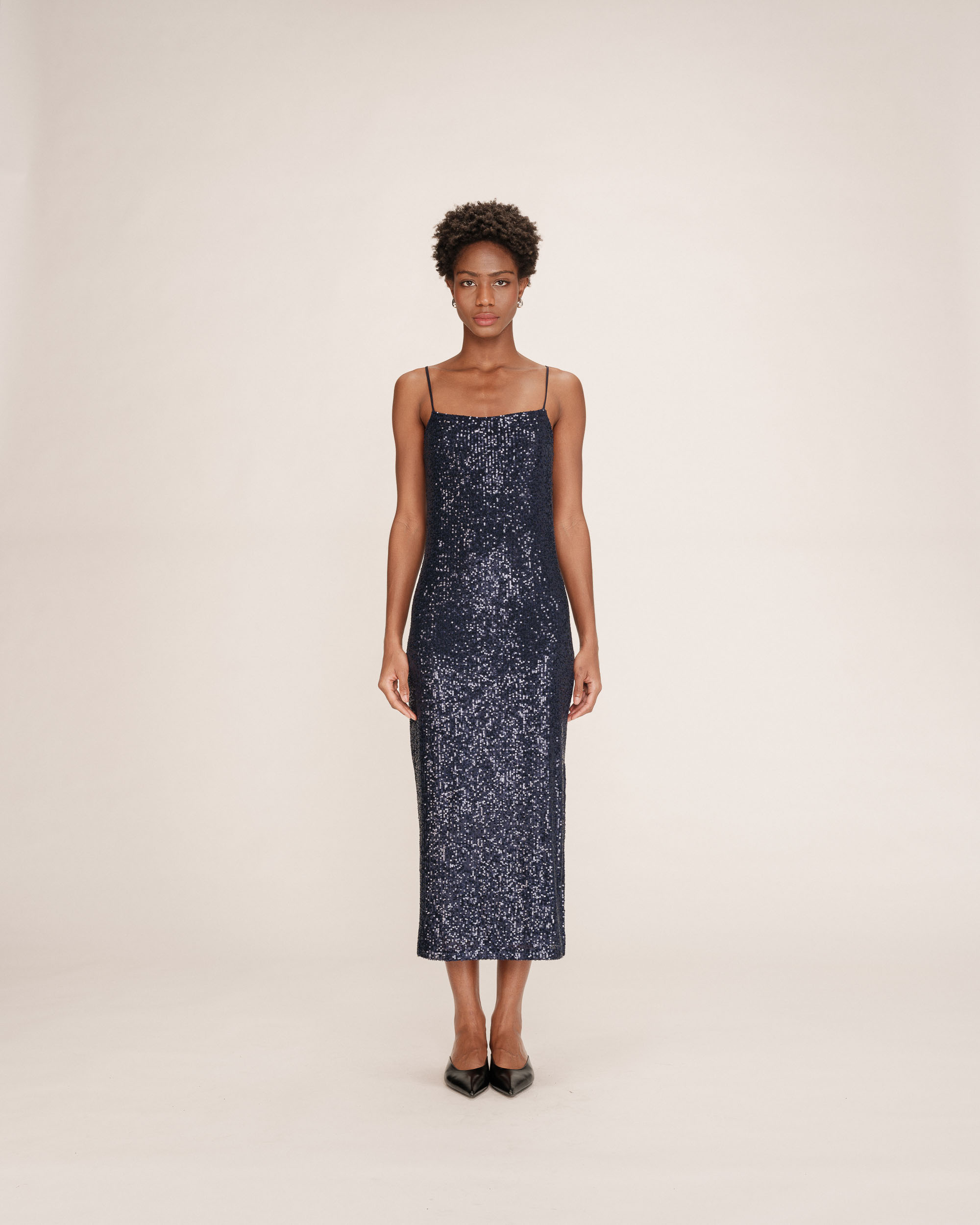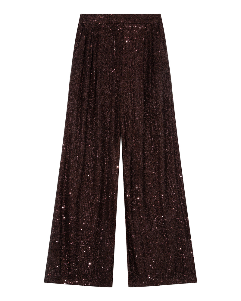 The TWENTY thin-strap top is enhanced with sequin velvet fabric and creates a luminous, festive silhouette. The straight cut and fluid fabric ensure an elegant drape, while the thin straps add a delicate and feminine touch. The TWENTY sequin top is a glamorous and modern piece. The top is lined.