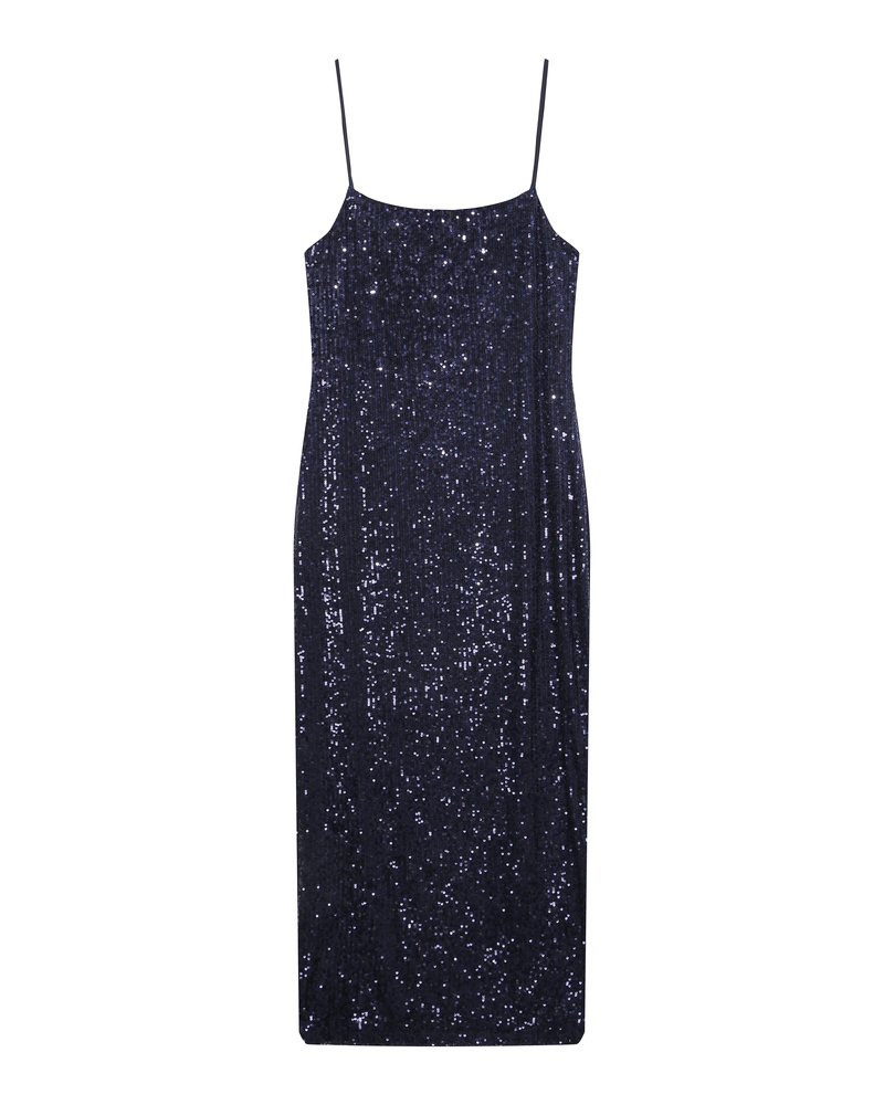 The TORI long dress is a must-have piece of the season. Made of sequins, the dress is enhanced by a fitted cut and a slit at the bottom, making it a piece with bold femininity. The model features thin adjustable straps and a round neckline suitable for every body shape.