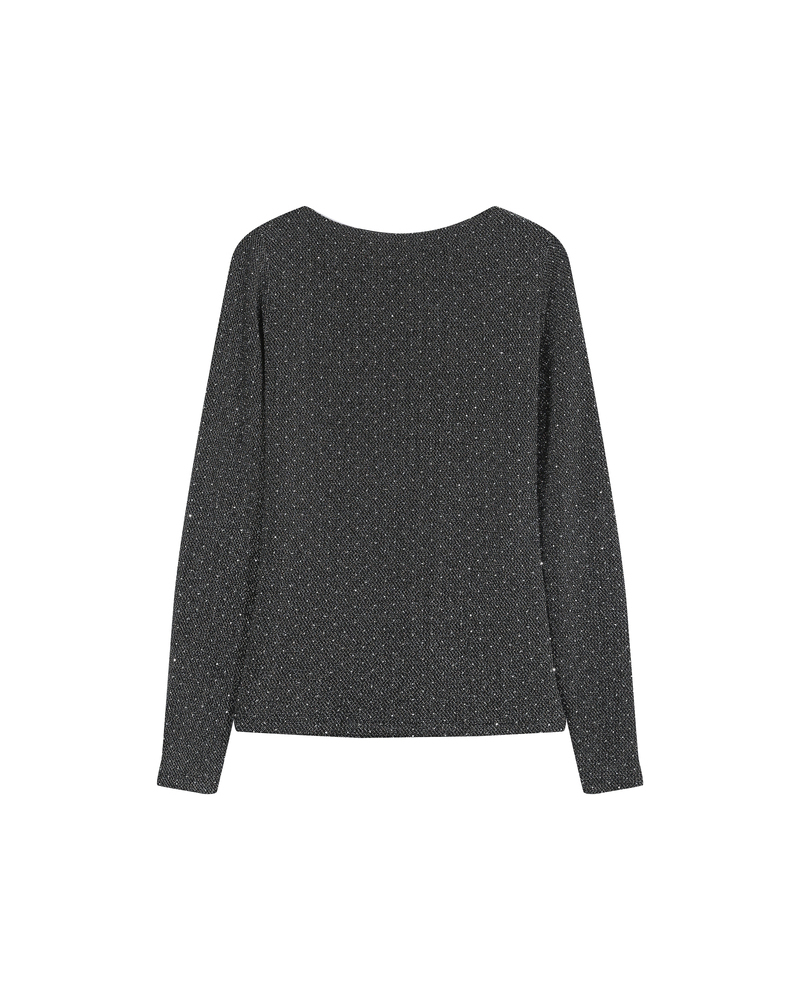 The fitted cut of the TIMOTHEE long-sleeved top is paired with a twisted keyhole opening to create a piece of confident femininity. Made from lurex jersey fabric, the TIMOTHEE lurex top shapes a luminous and elegant silhouette. This top is reversible and lined.