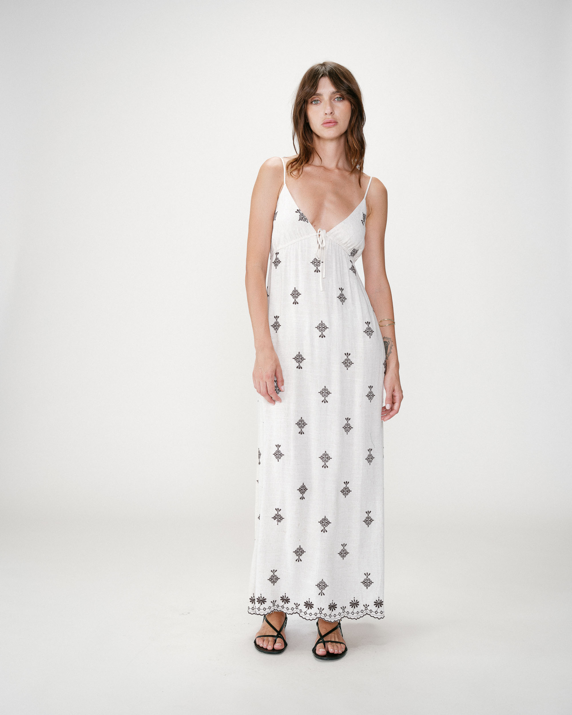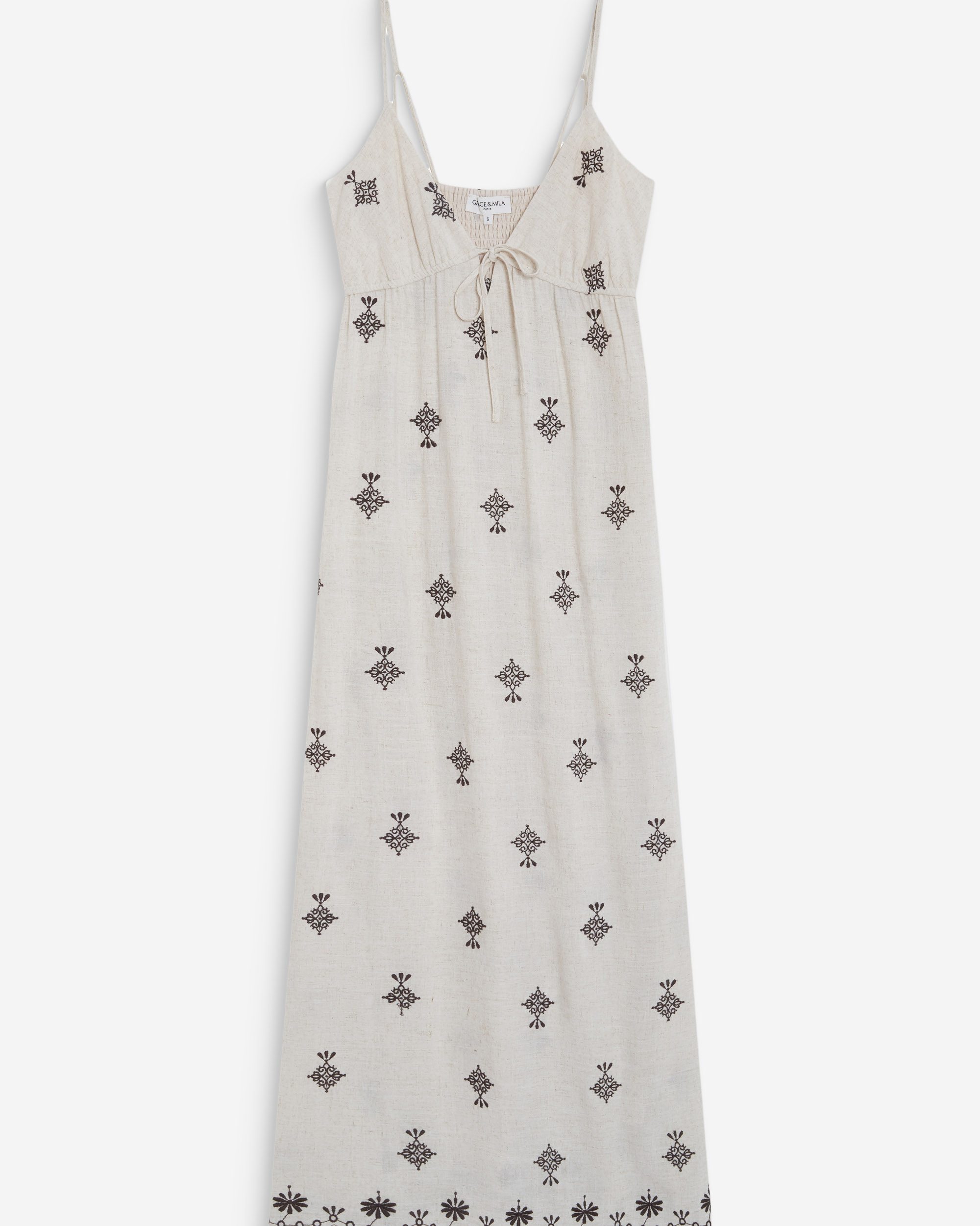 Le top sans manches WAITING, confectionné dans un tissu à broderie anglaise, est une pièce travaillée avec soin. La coupe en pointe et les lignes épurées signent sa simplicité. Le dos nu est rehaussé par un jeu de liens à nouer pour proposer une allure sensuelle et féminine.