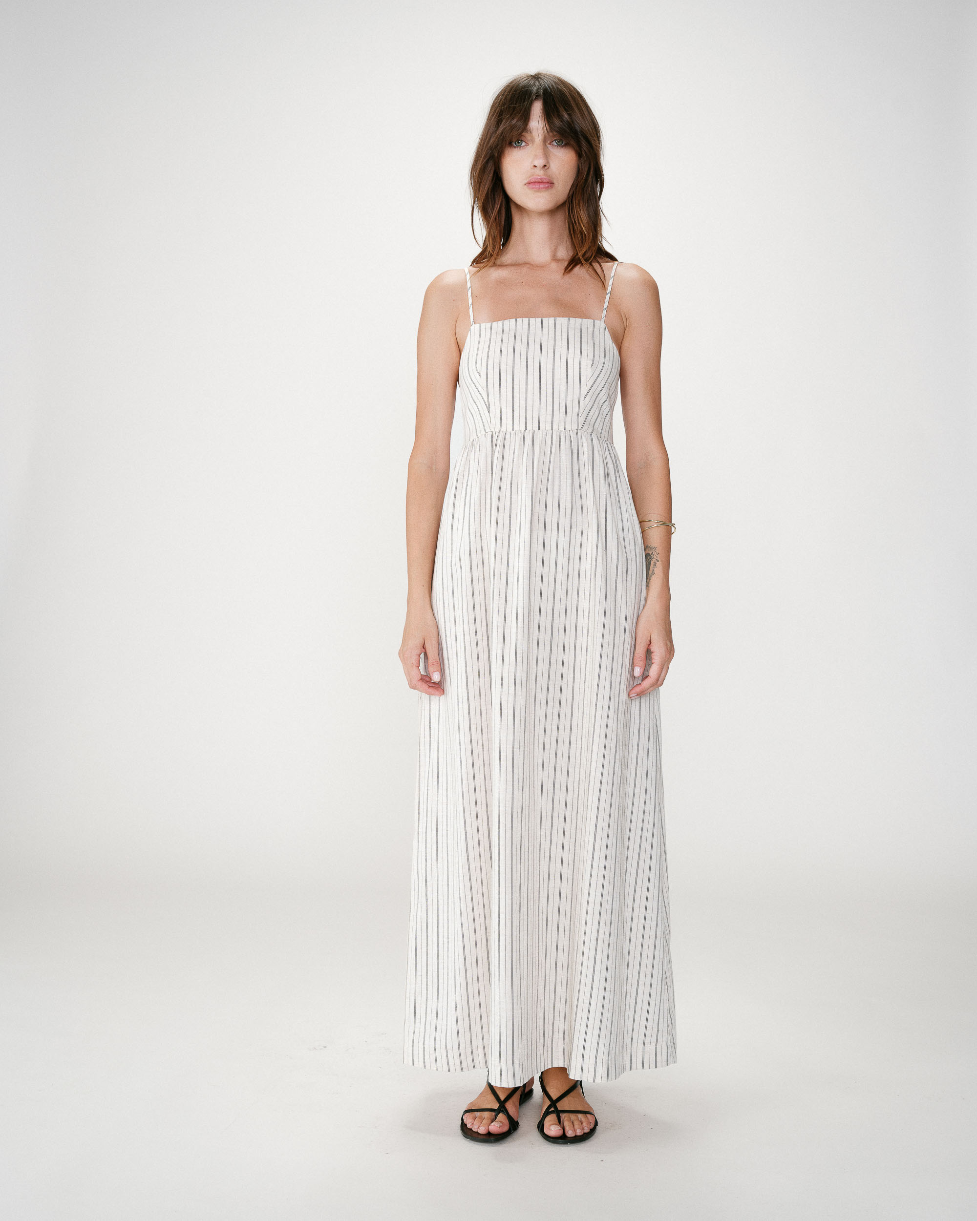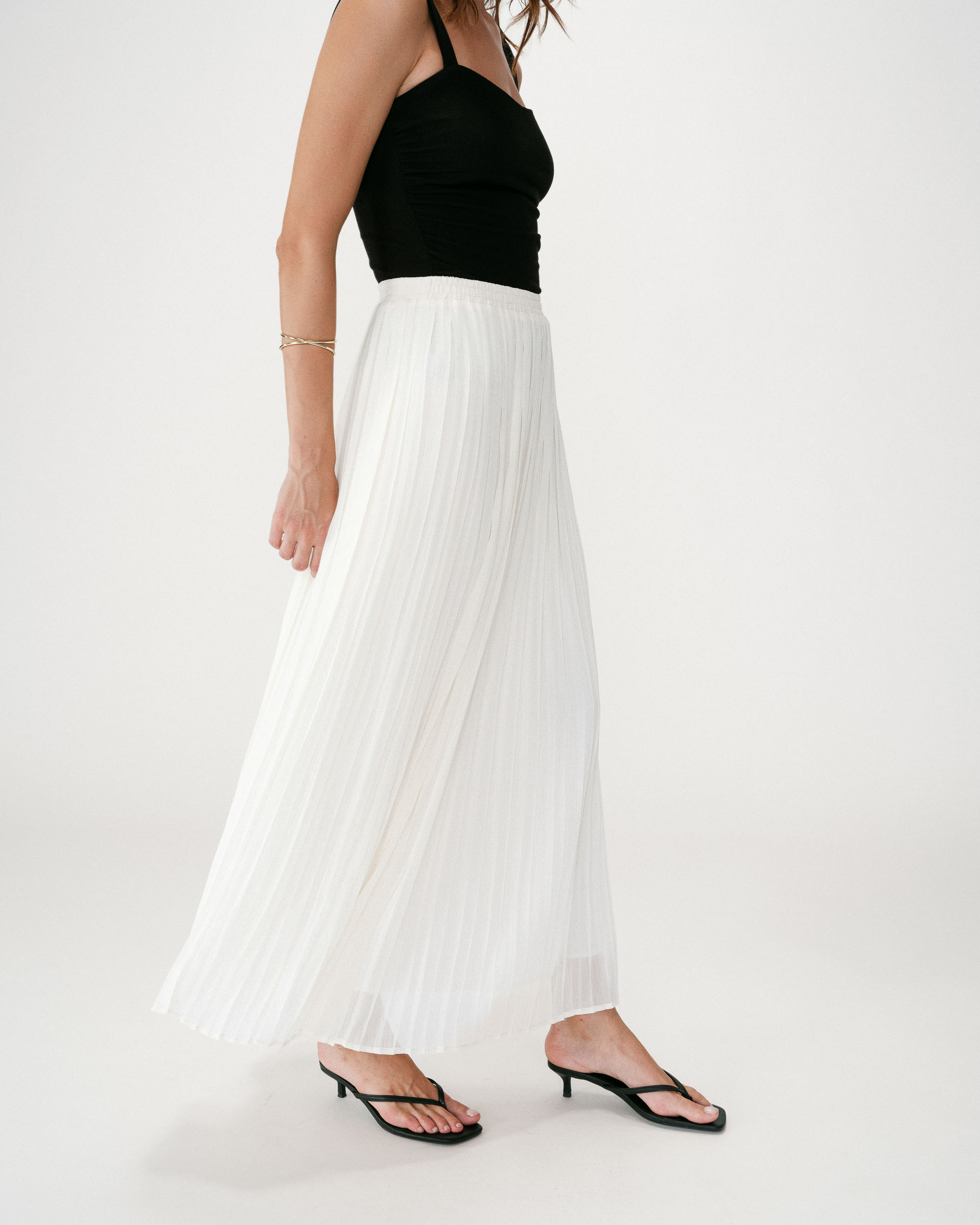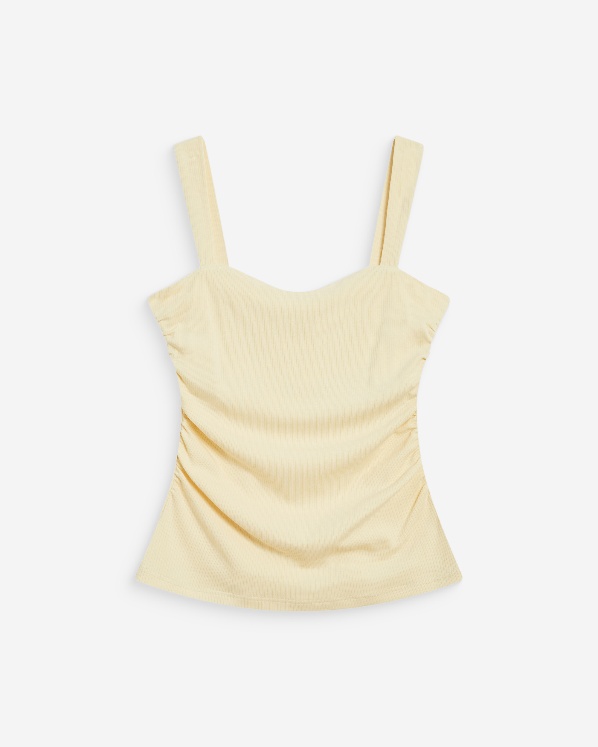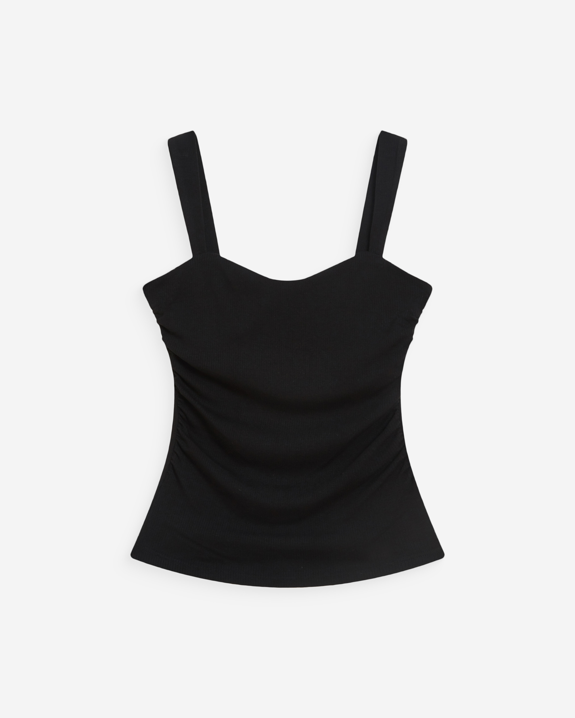 The fitted cut of the WYAN sleeveless top is paired with a sweetheart neckline to create a decidedly feminine look. Ruching details structure the silhouette and accentuate the waist. The WYAN sleeveless top brings an elegant and modern essential to the collection.