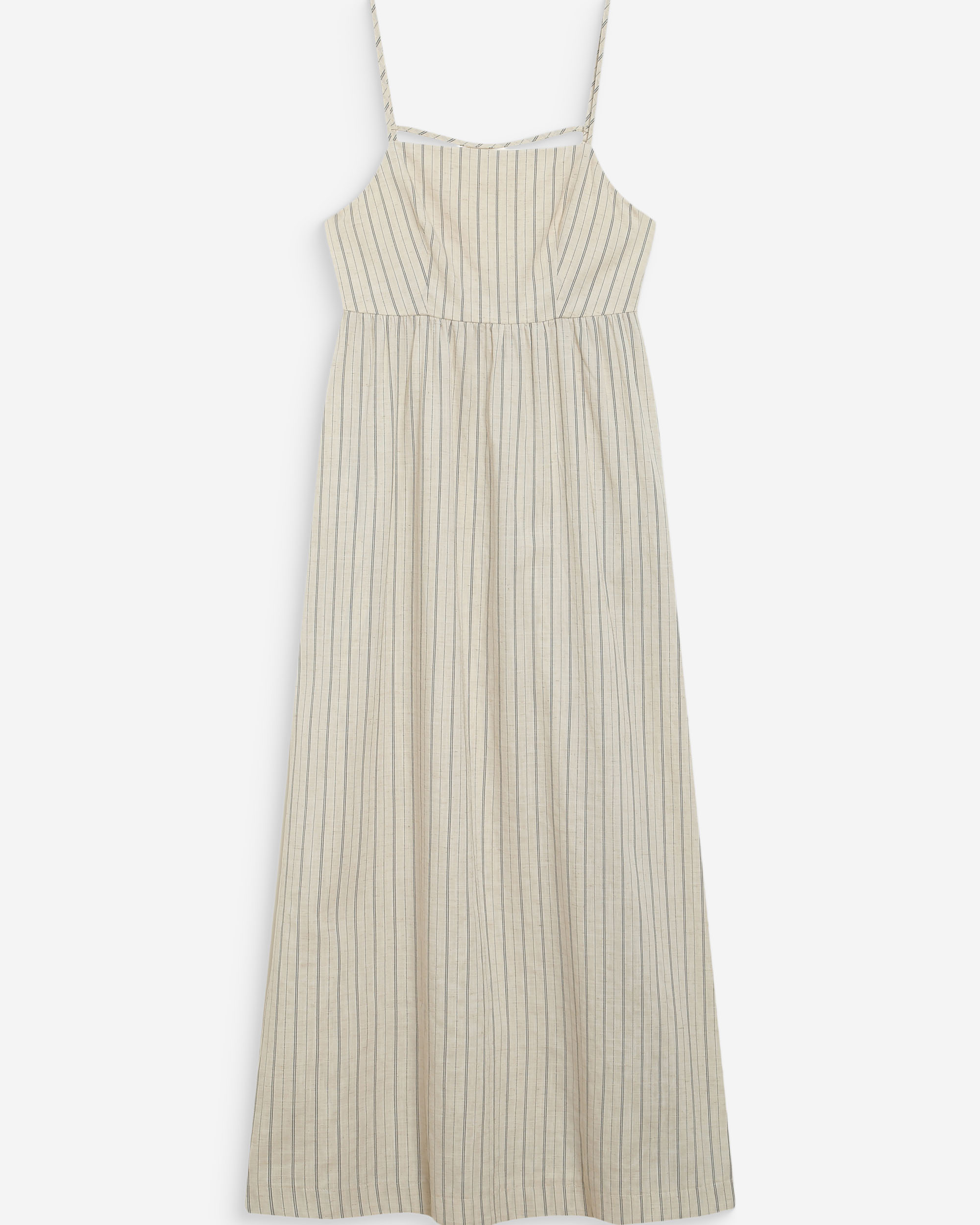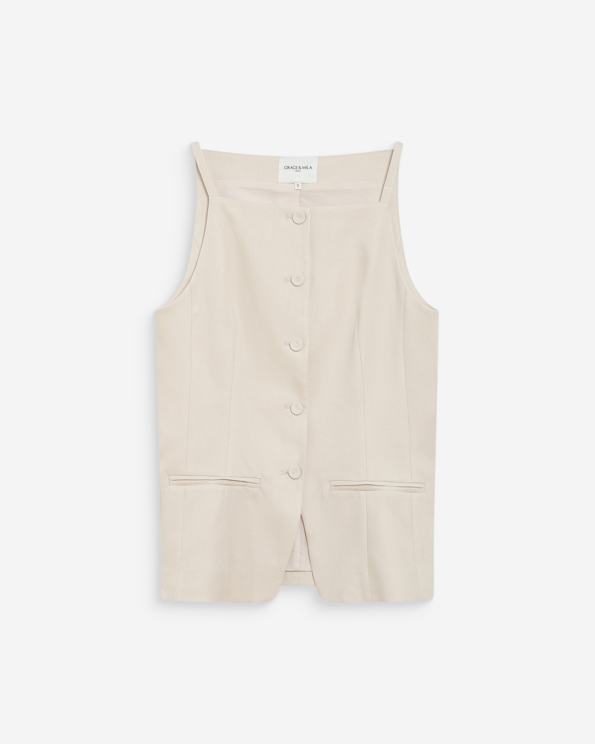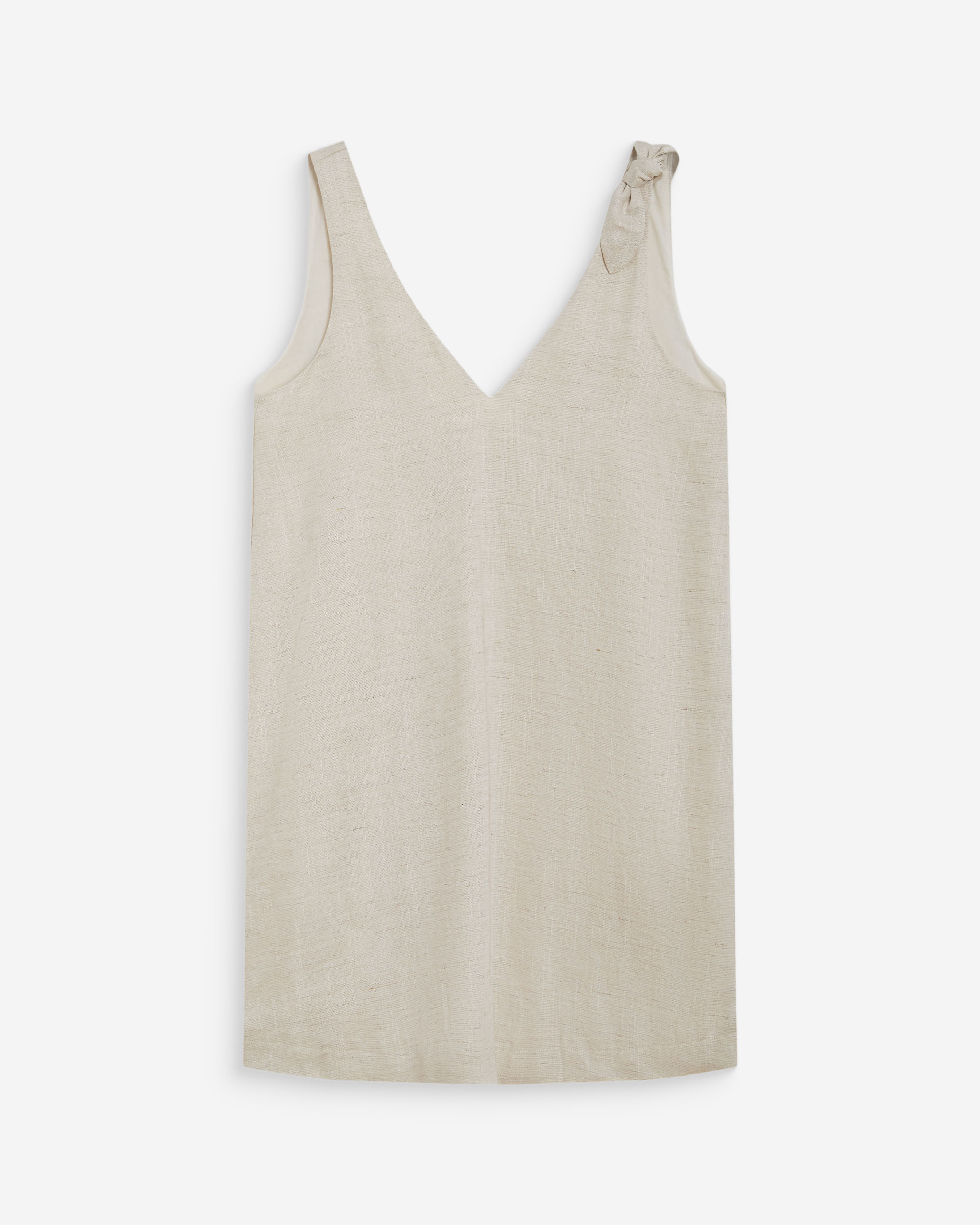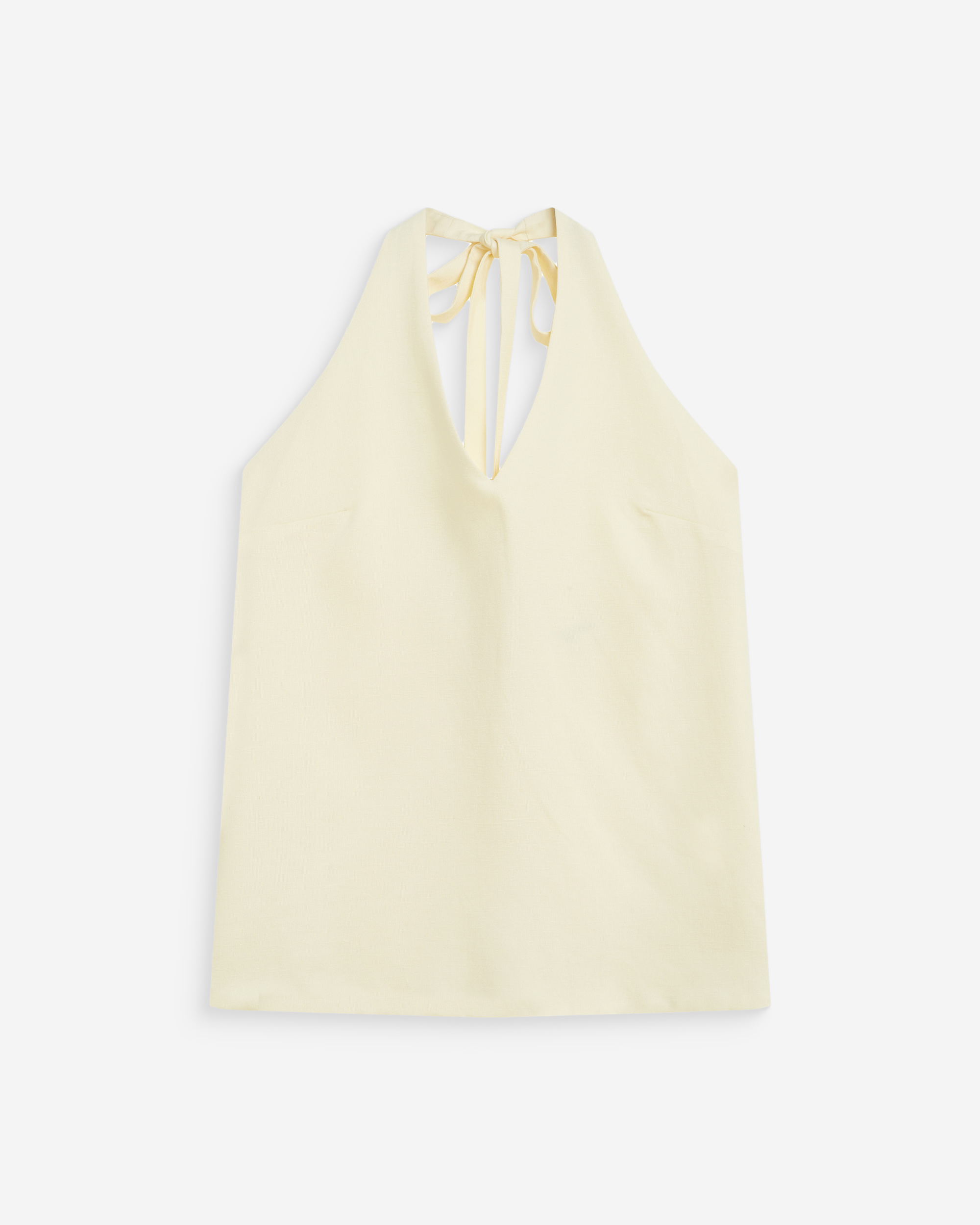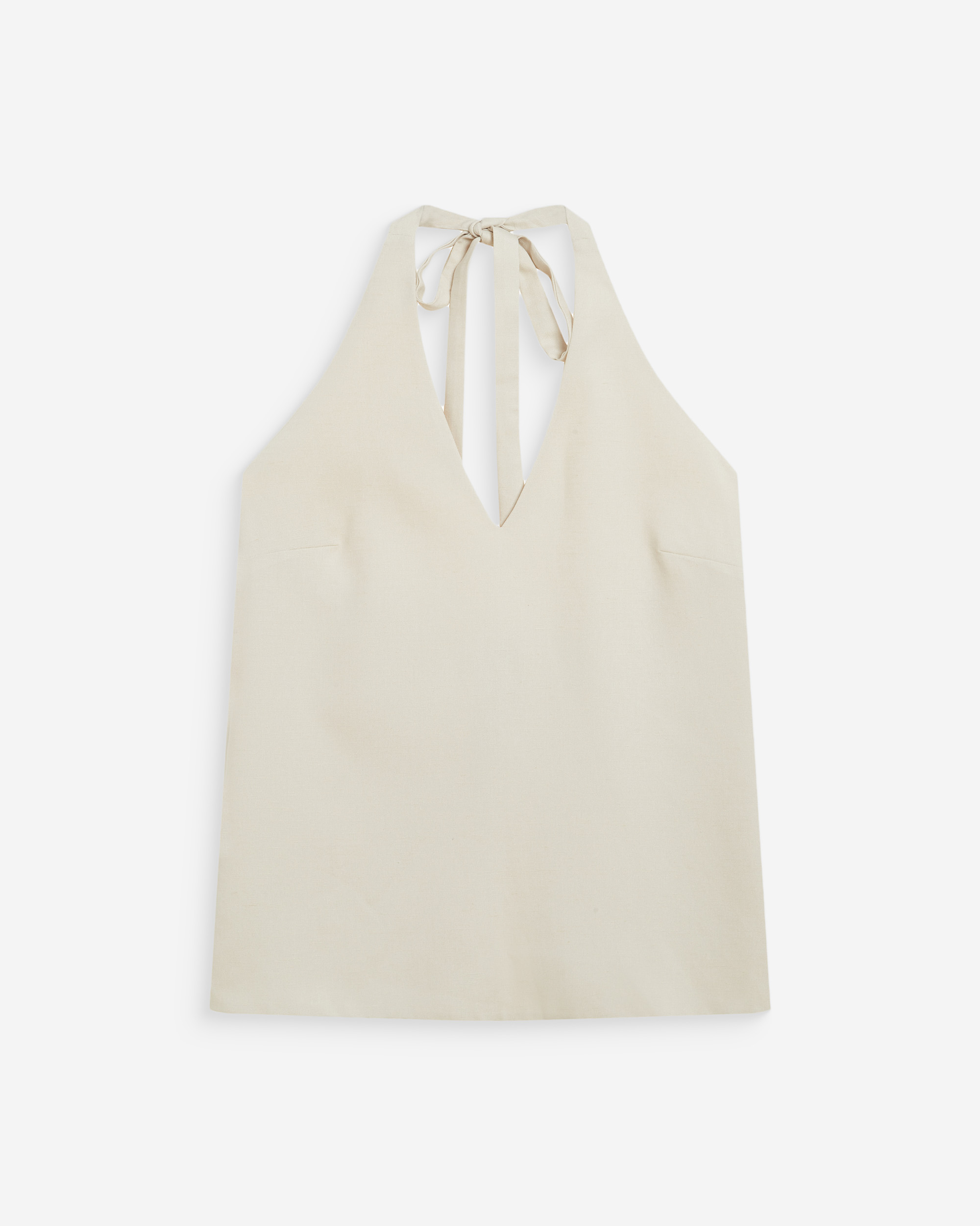 The clean and simple lines of the sleeveless top WISE make it a piece of modern and minimalist elegance. The wide cut is enhanced with a V-neckline and an open back. Made from a linen blend, the back-tie top WISE ties at the back and neck.