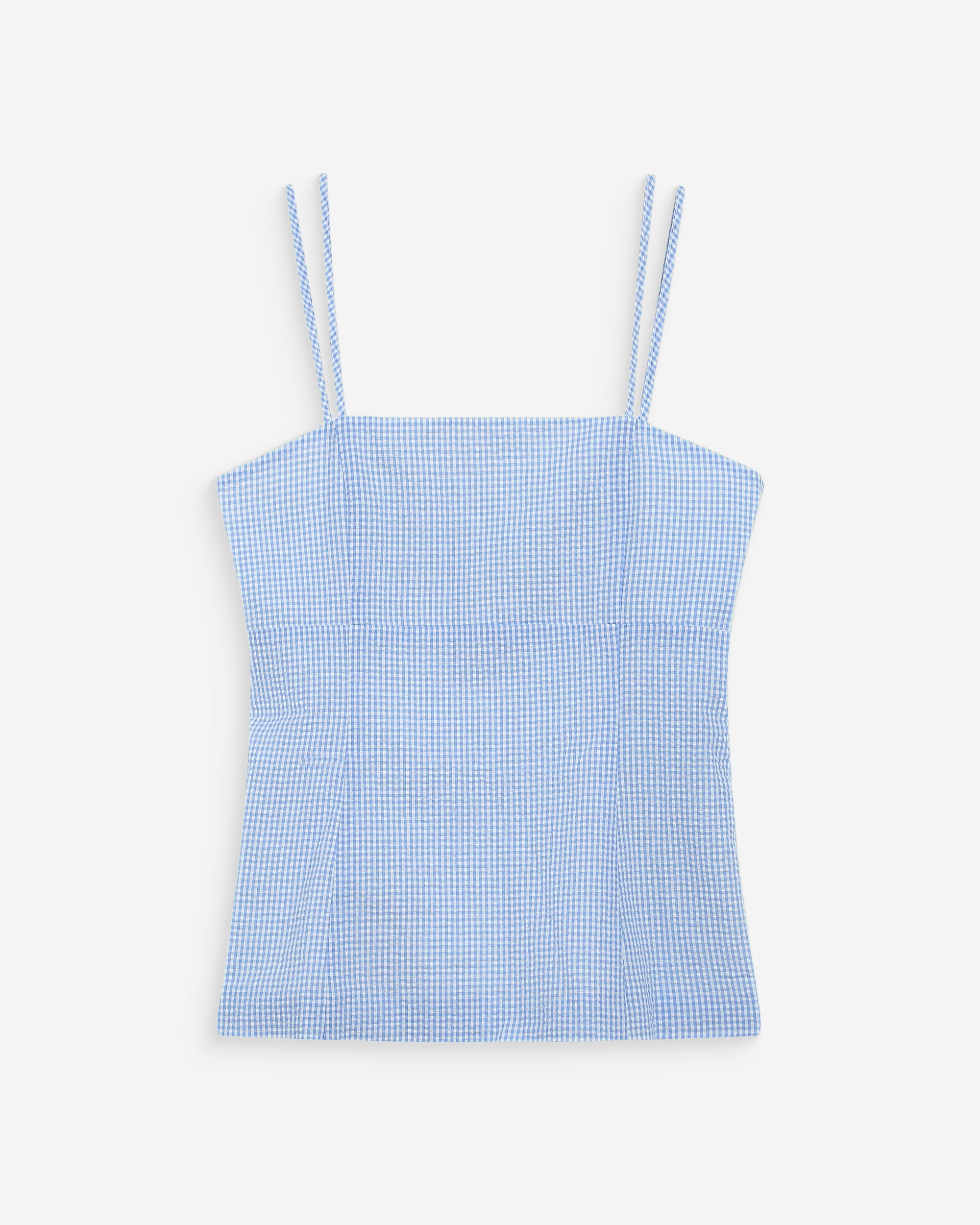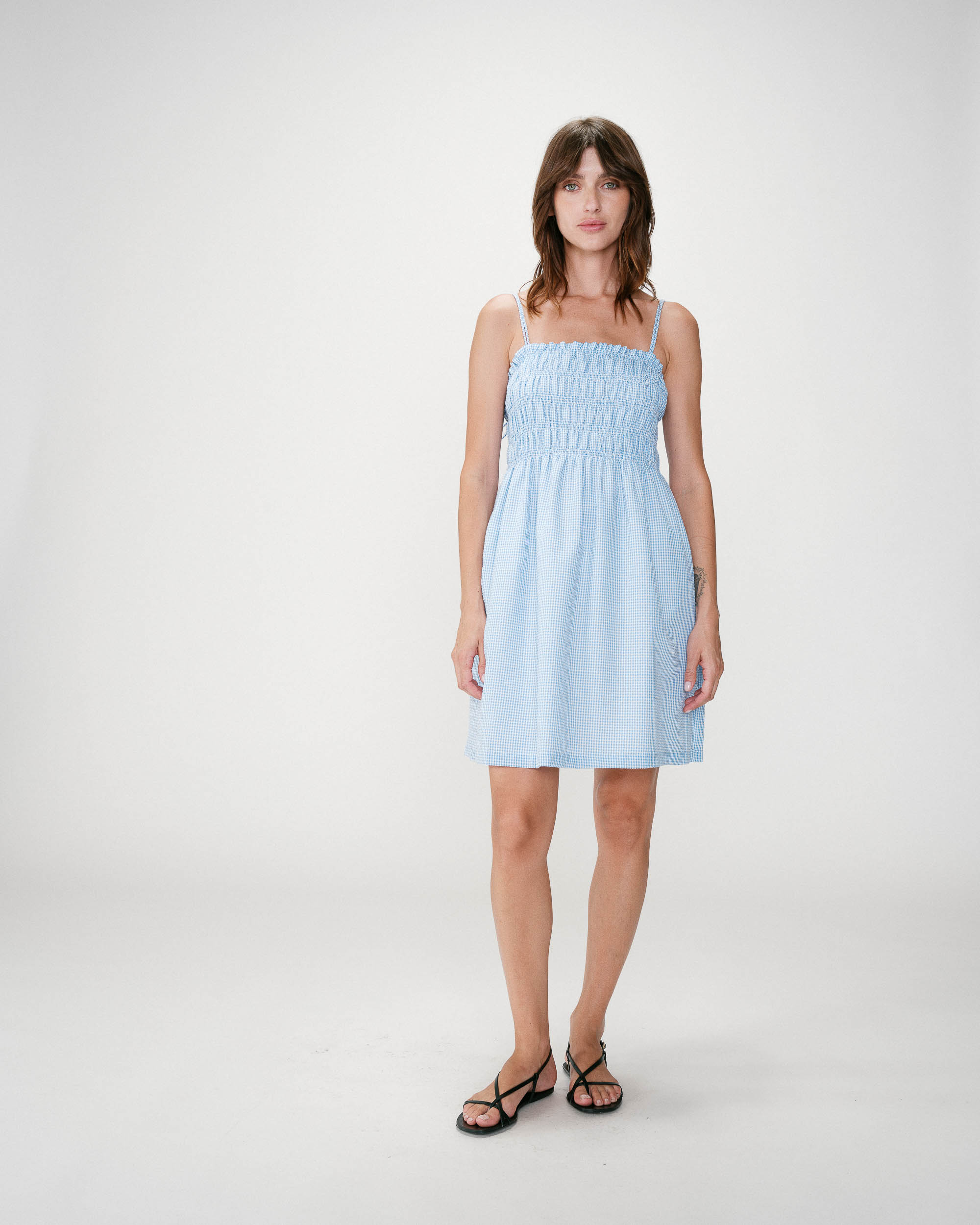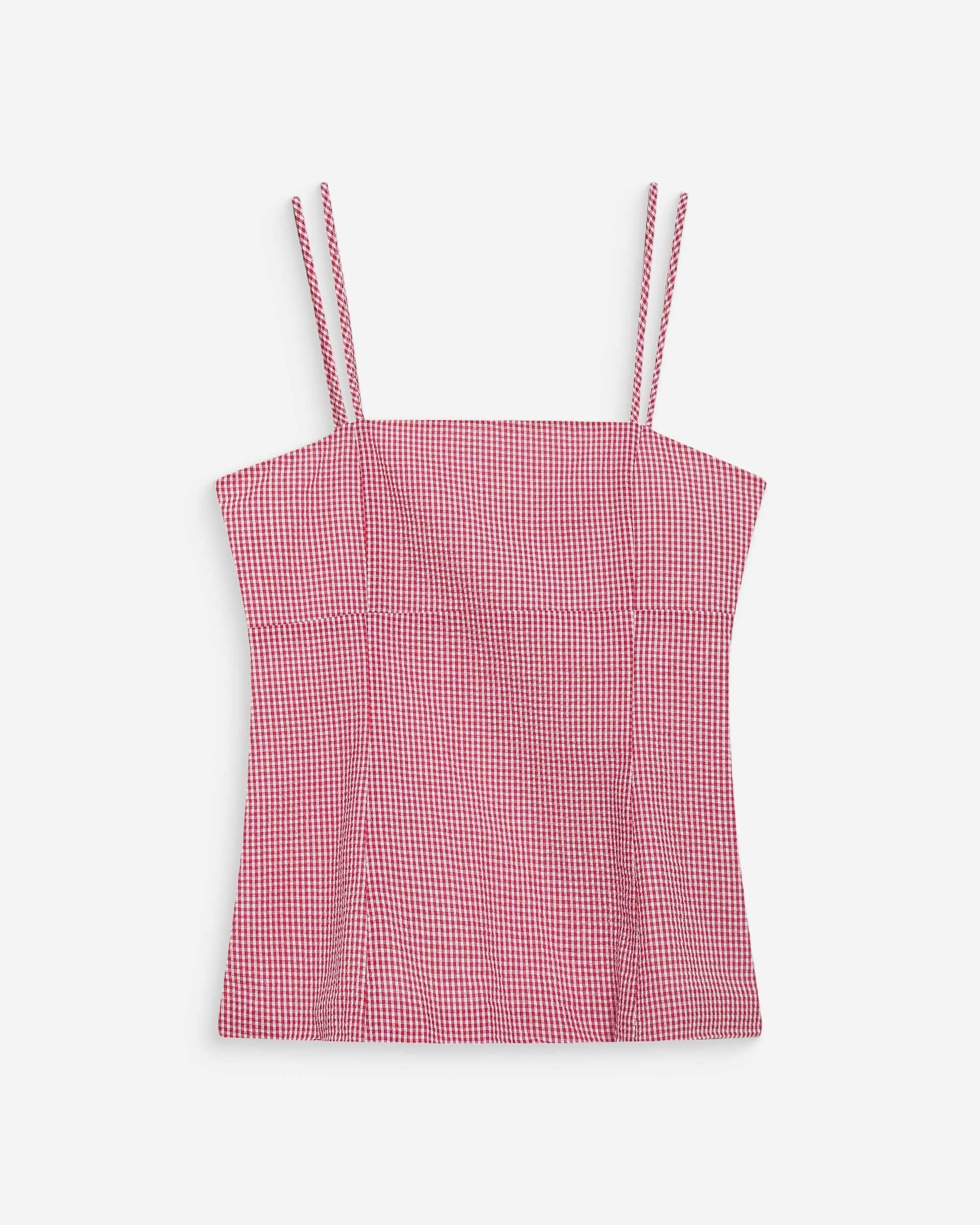 Crafted from 100% cotton gingham fabric, the WYNEL sleeveless top is a feminine piece with a romantic feel. With its fitted cut, adjustable thin straps, and smocked back, the WYNEL checkered top is a refined and detailed creation.