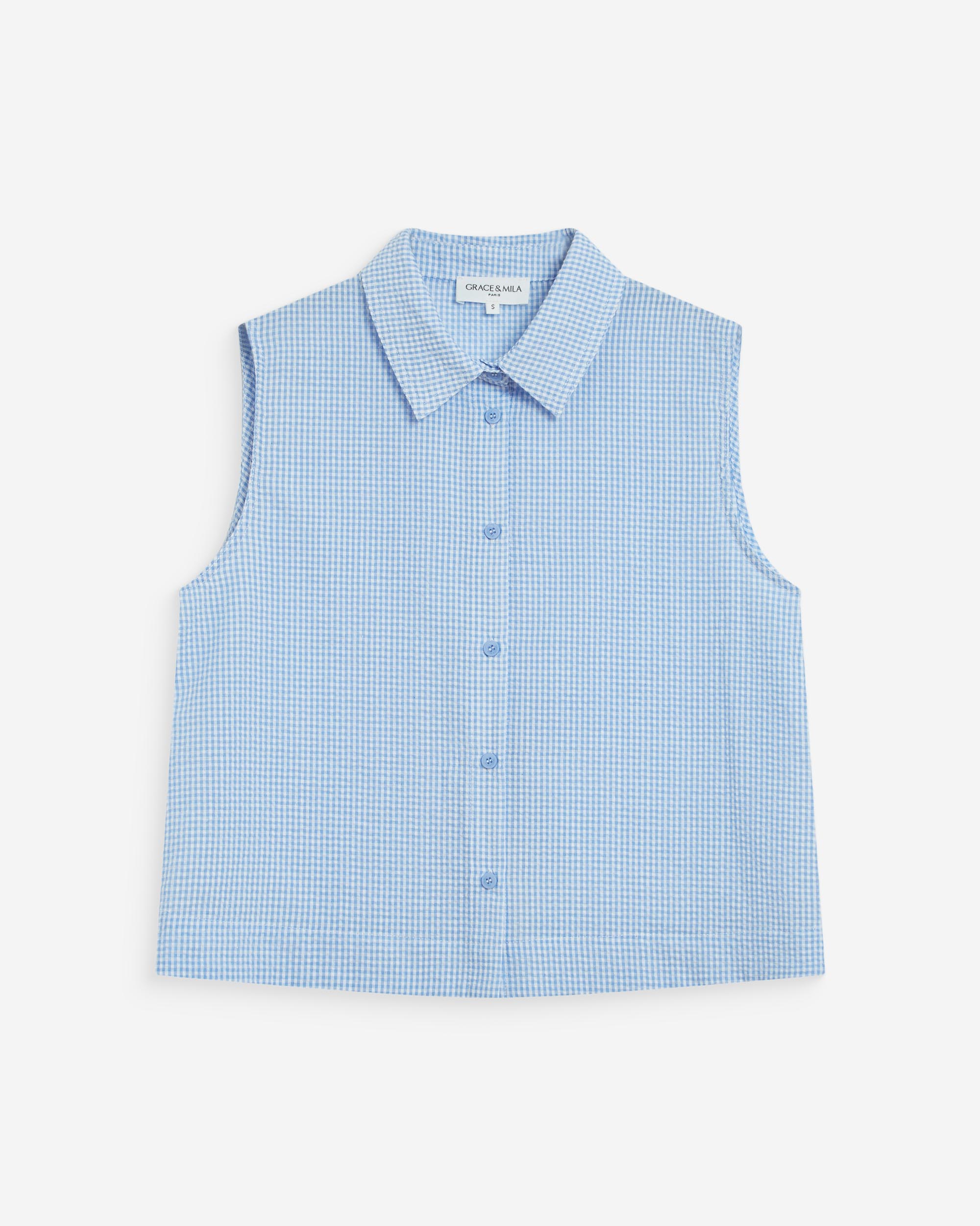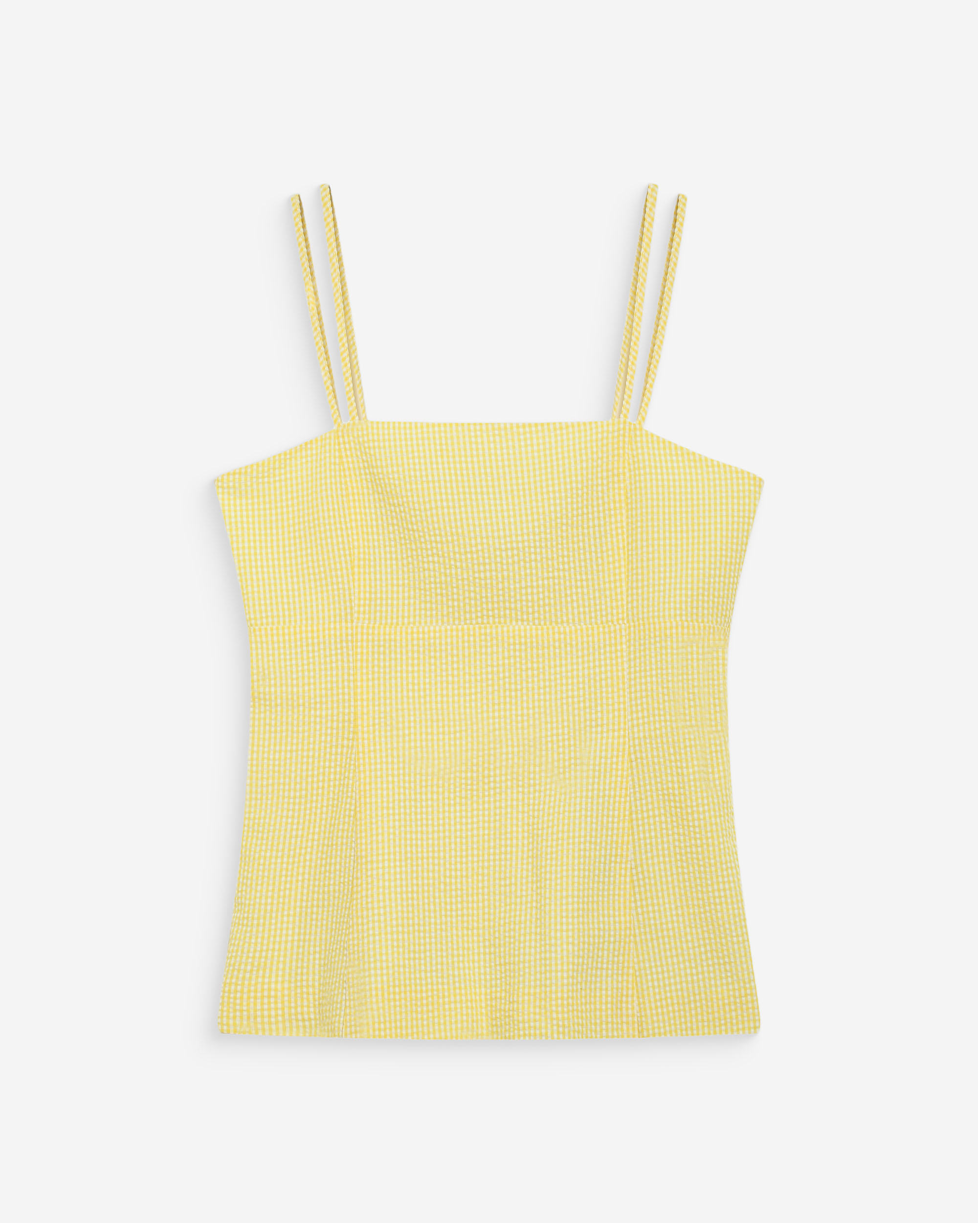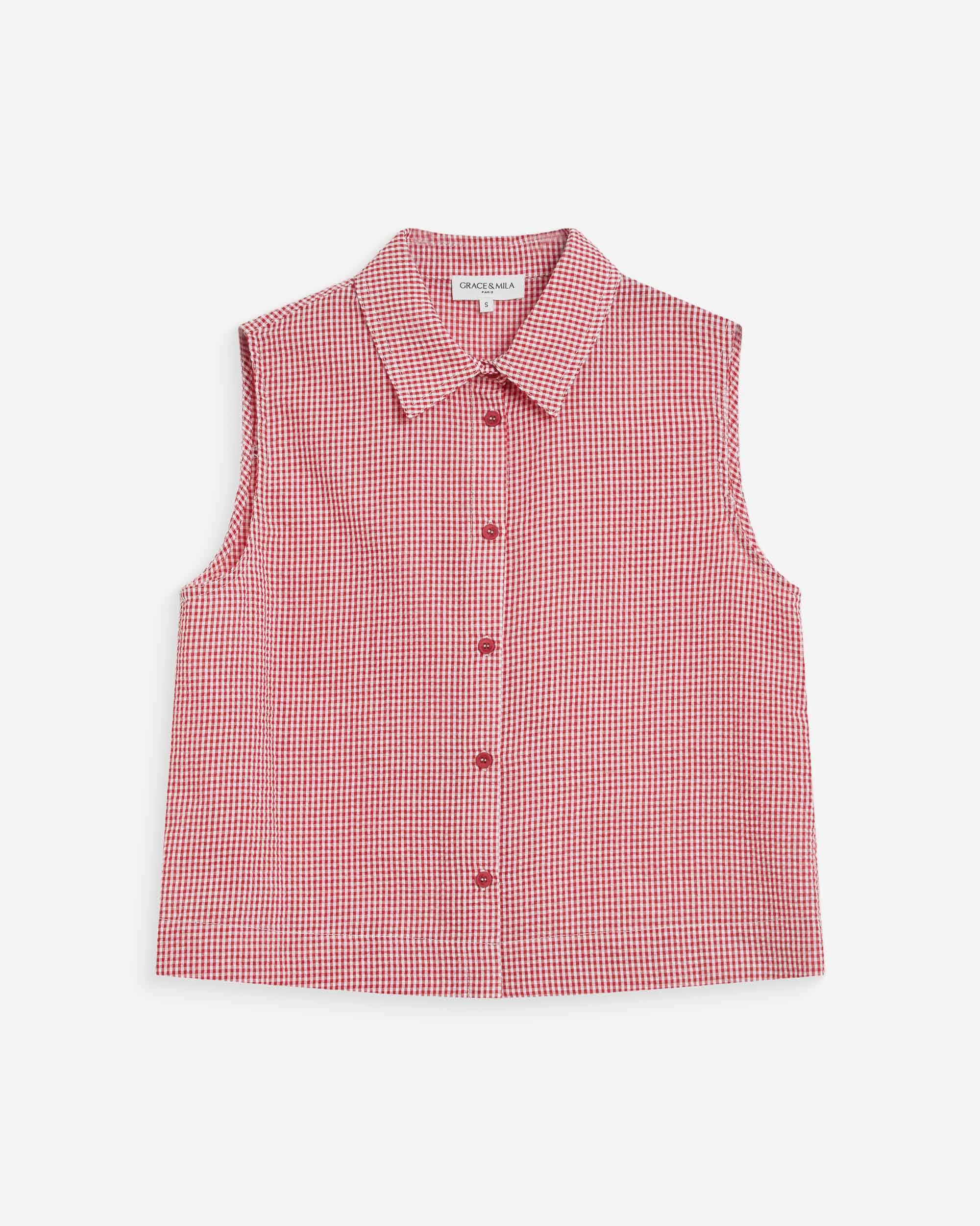 Crafted from 100% cotton gingham fabric, the WYNEL sleeveless top is a feminine piece with a romantic feel. With its fitted cut, adjustable thin straps, and smocked back, the WYNEL checkered top is a refined and detailed creation.