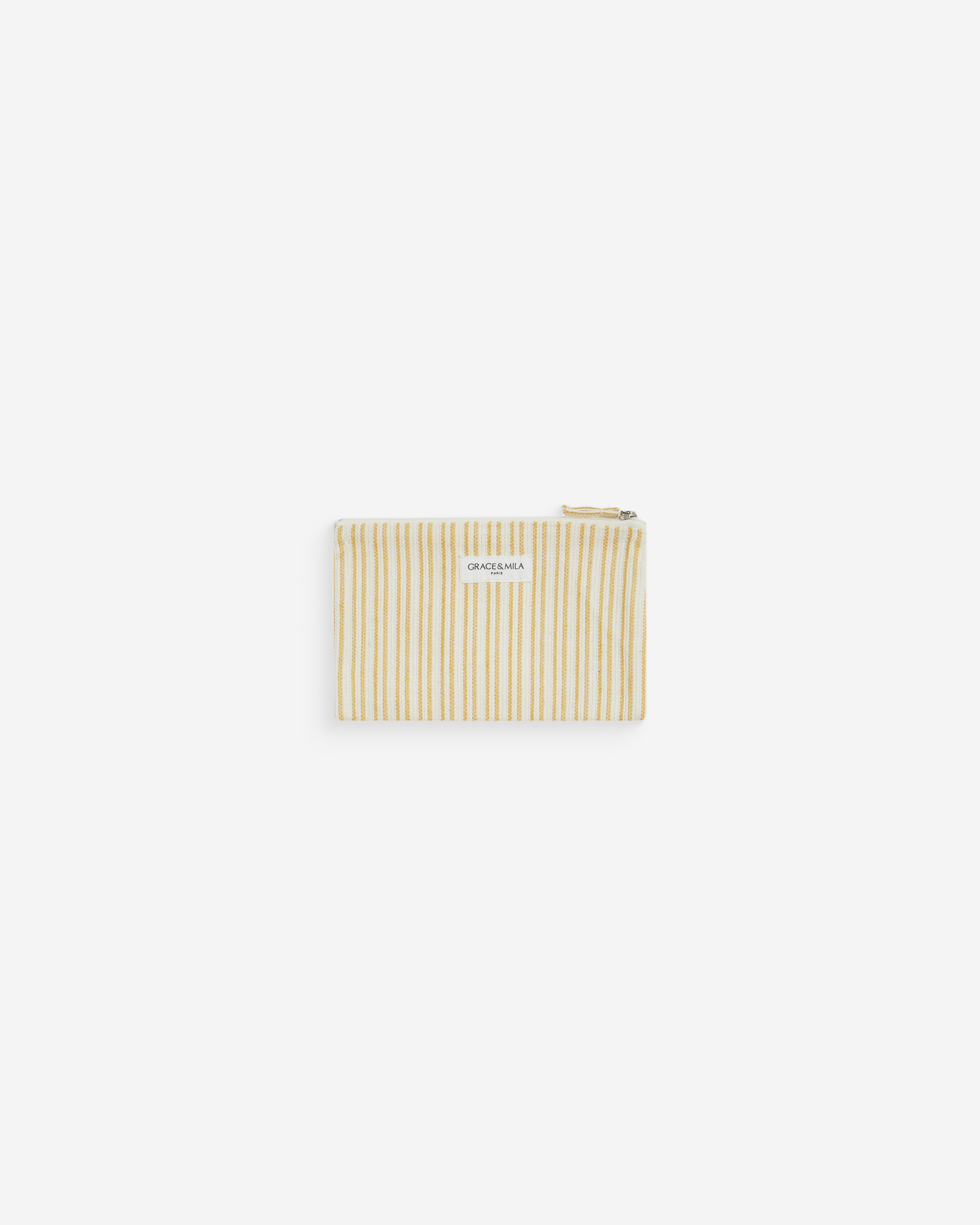 La pochette zippée WILENE est confectionnée dans un tissu à rayures en 100% coton. Ce modèle rejoint la sélection d'accessoires de la maison.