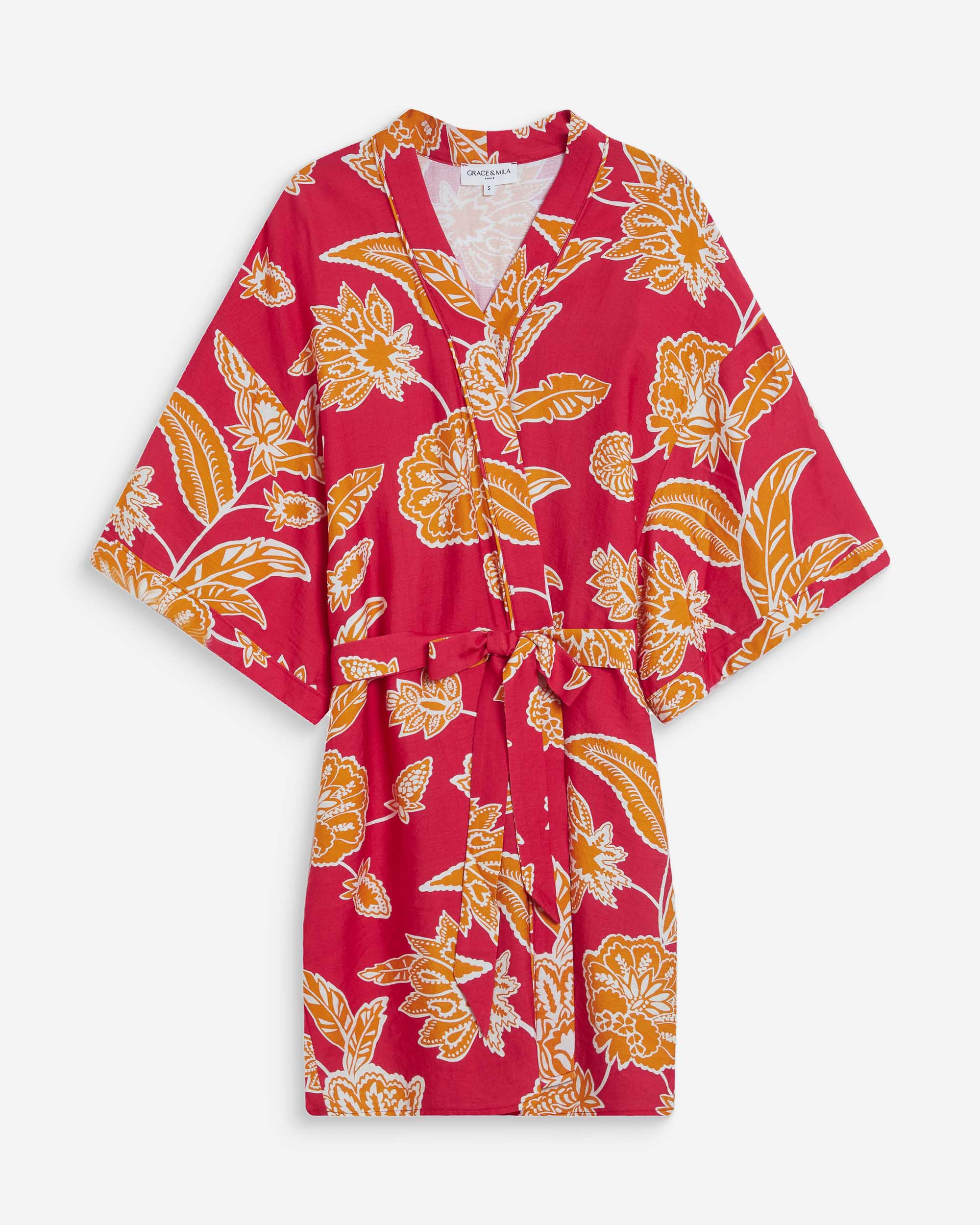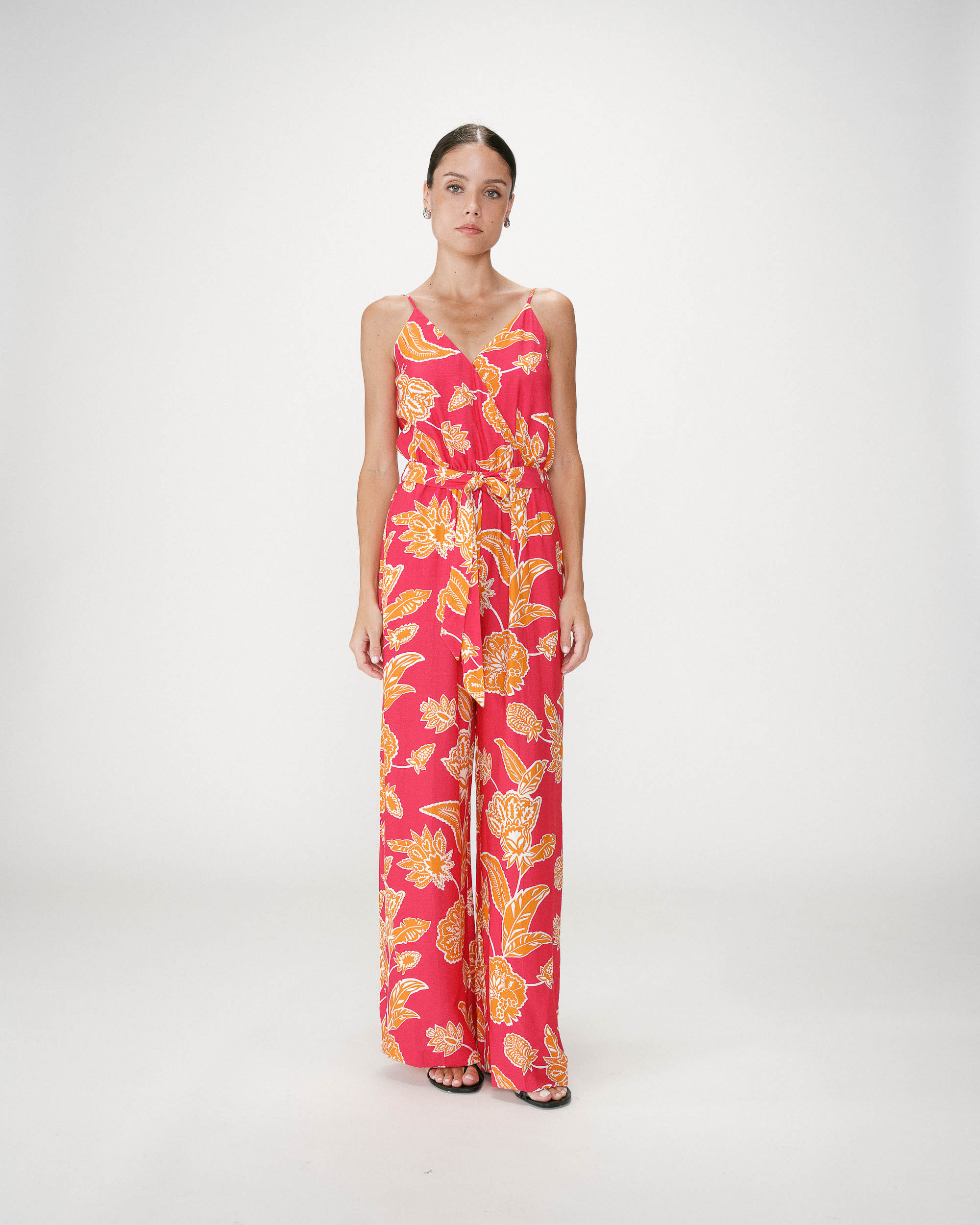 The bustier top WILLARA is enhanced with a floral print in warm and vibrant colors. The pointed cut flatters the silhouette with femininity while the tie at the back allows a perfect fit. The tie top WILLARA creates a bohemian and sunny look.