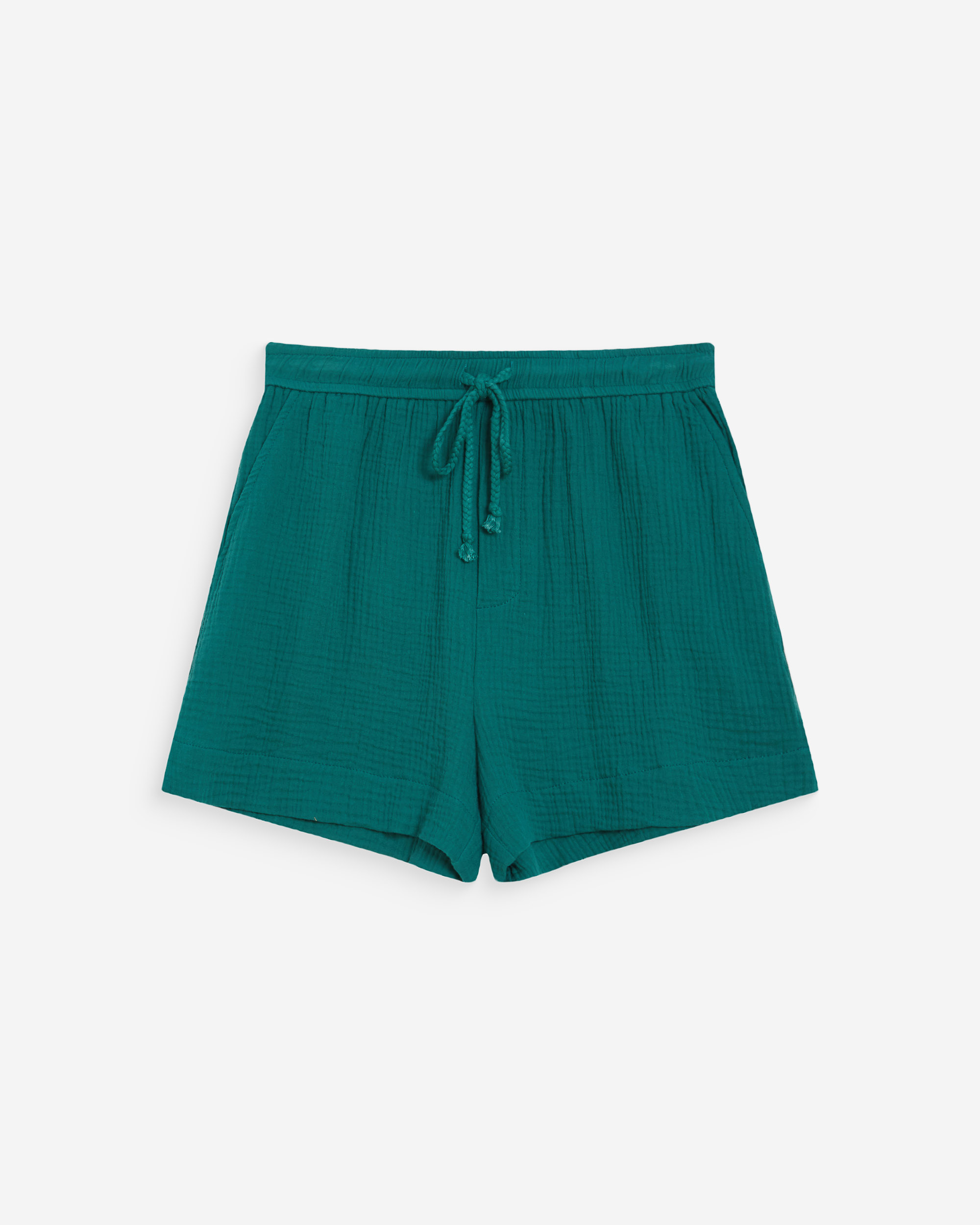 Made from 100% cotton fabric, the wide shorts WASABI are comfortable and easy to wear. The model has an elasticated waist with drawstring and Italian pockets at the front. The high-waisted shorts WASABI offer a simple and relaxed silhouette.