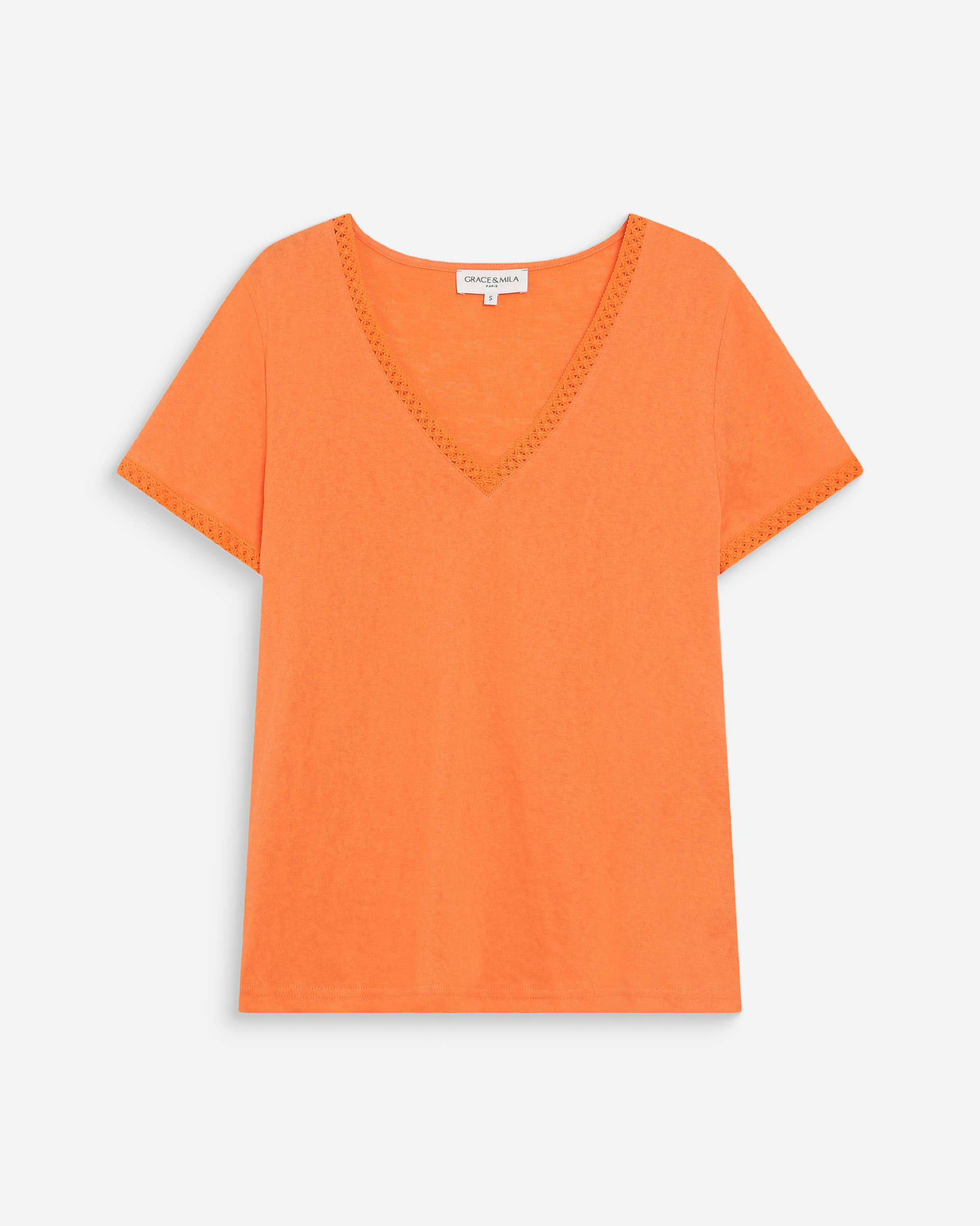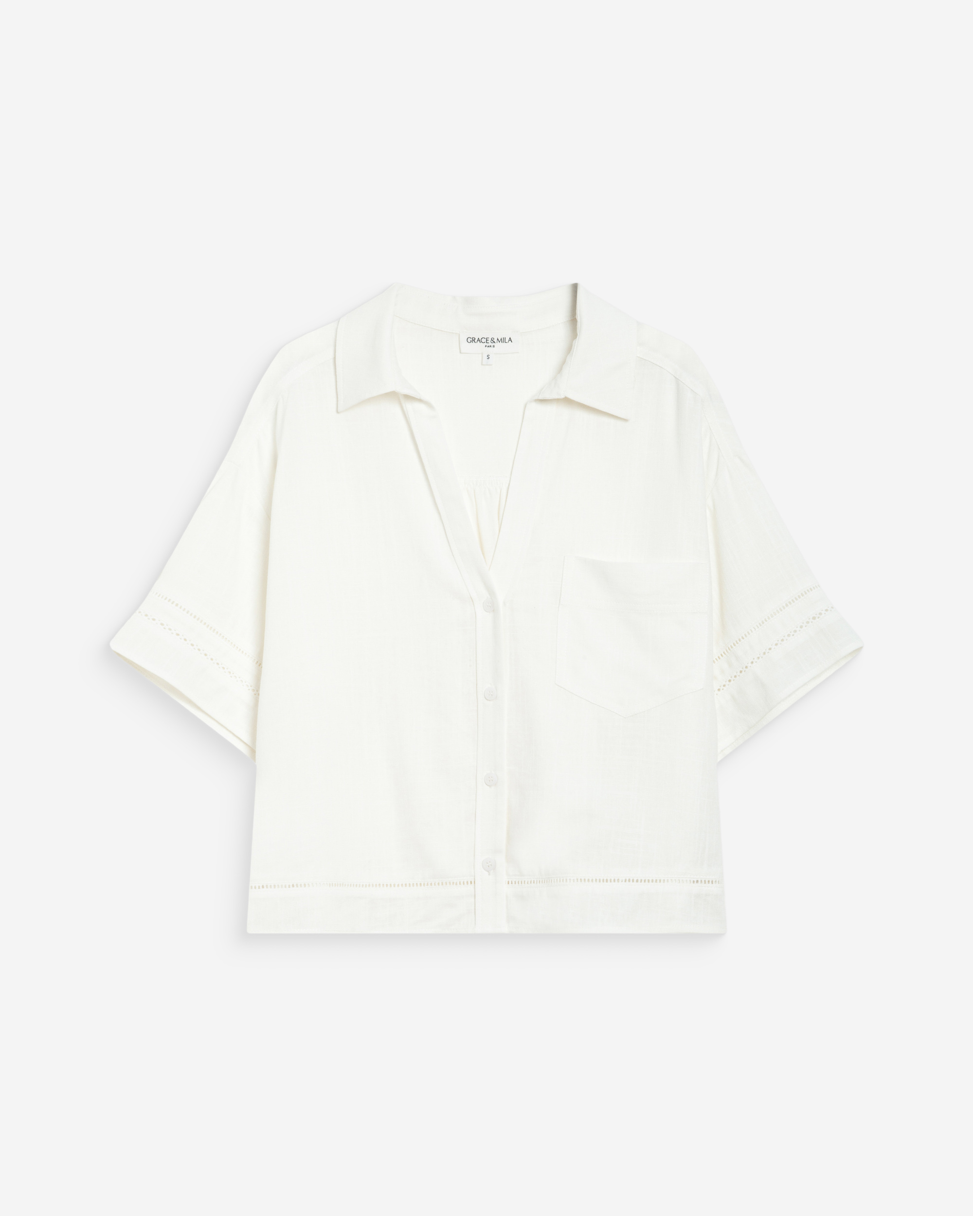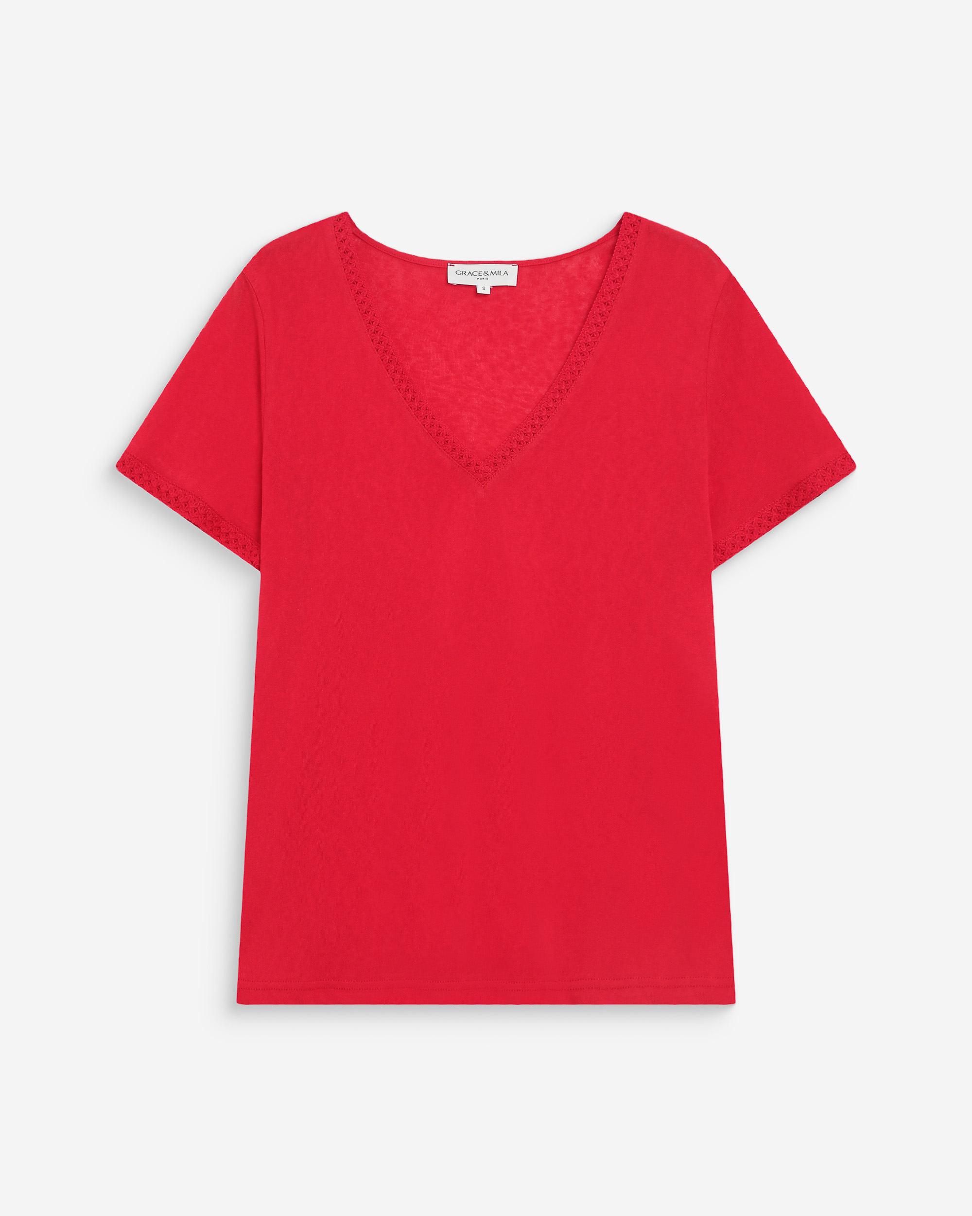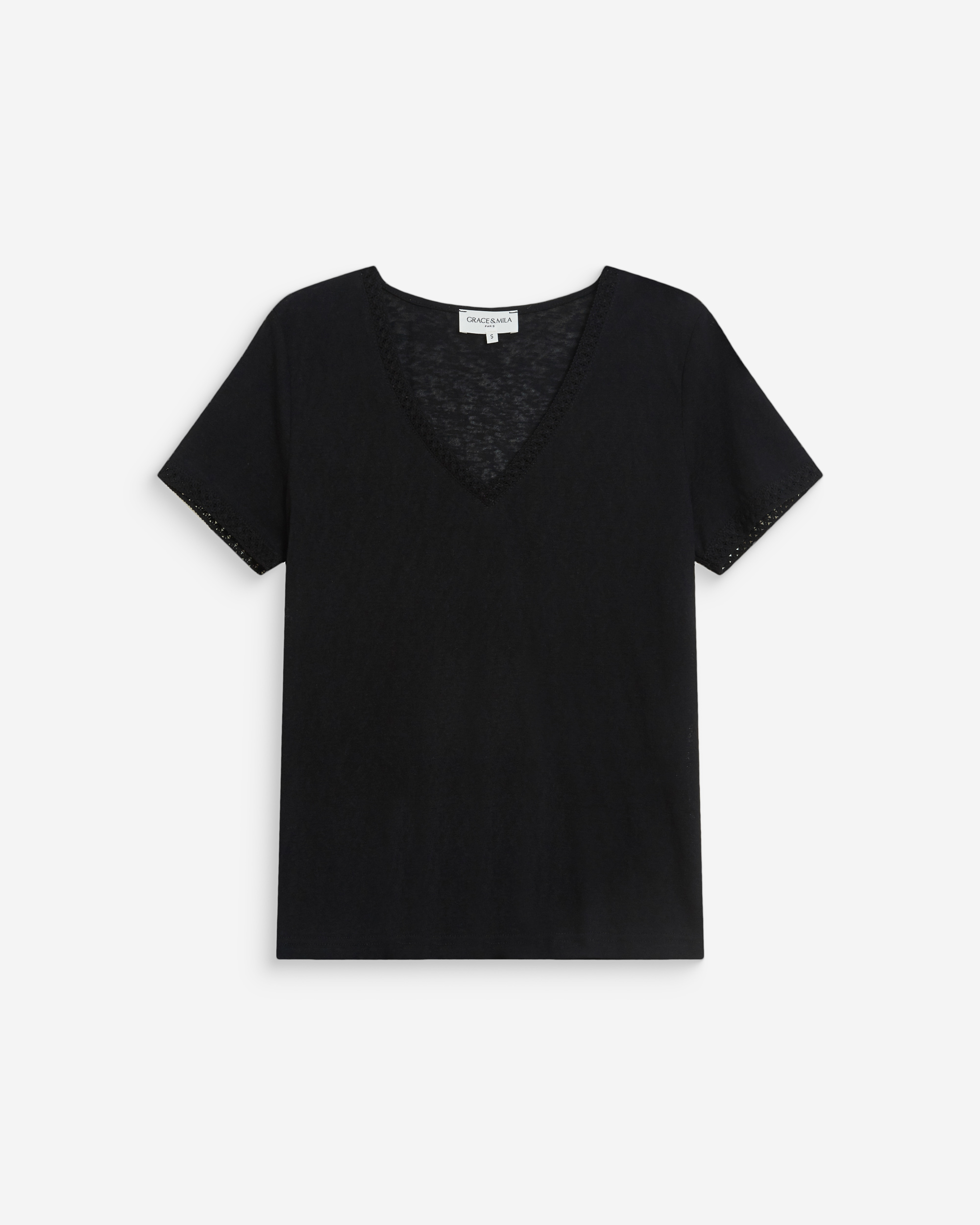 The WILLEM short-sleeved top is a timeless piece from the Maison. The classic lines of the design adapt to every woman’s figure. The V-neckline of the WILLEM straight top is enhanced by a lace trim that highlights the neckline and adds a feminine touch.