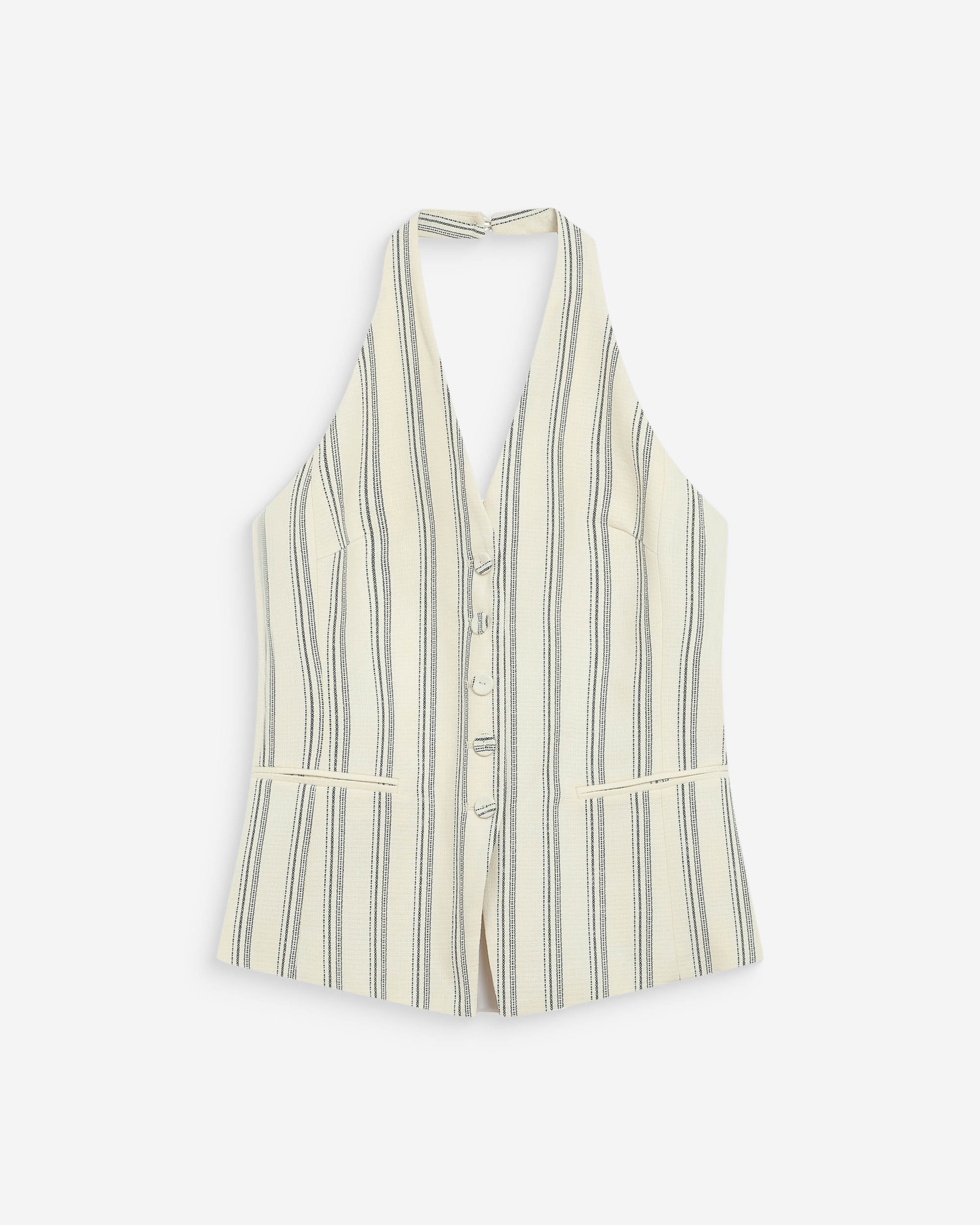Les lignes épurées et simples du top sans manches WISE en font une pièce à l'élégance moderne et minimaliste. La coupe large du modèle est valorisée par une encolure en V et un dos nu. Confectionné dans un tissu en lin mélangé, le top dos nu WISE se noue au dos et au col.