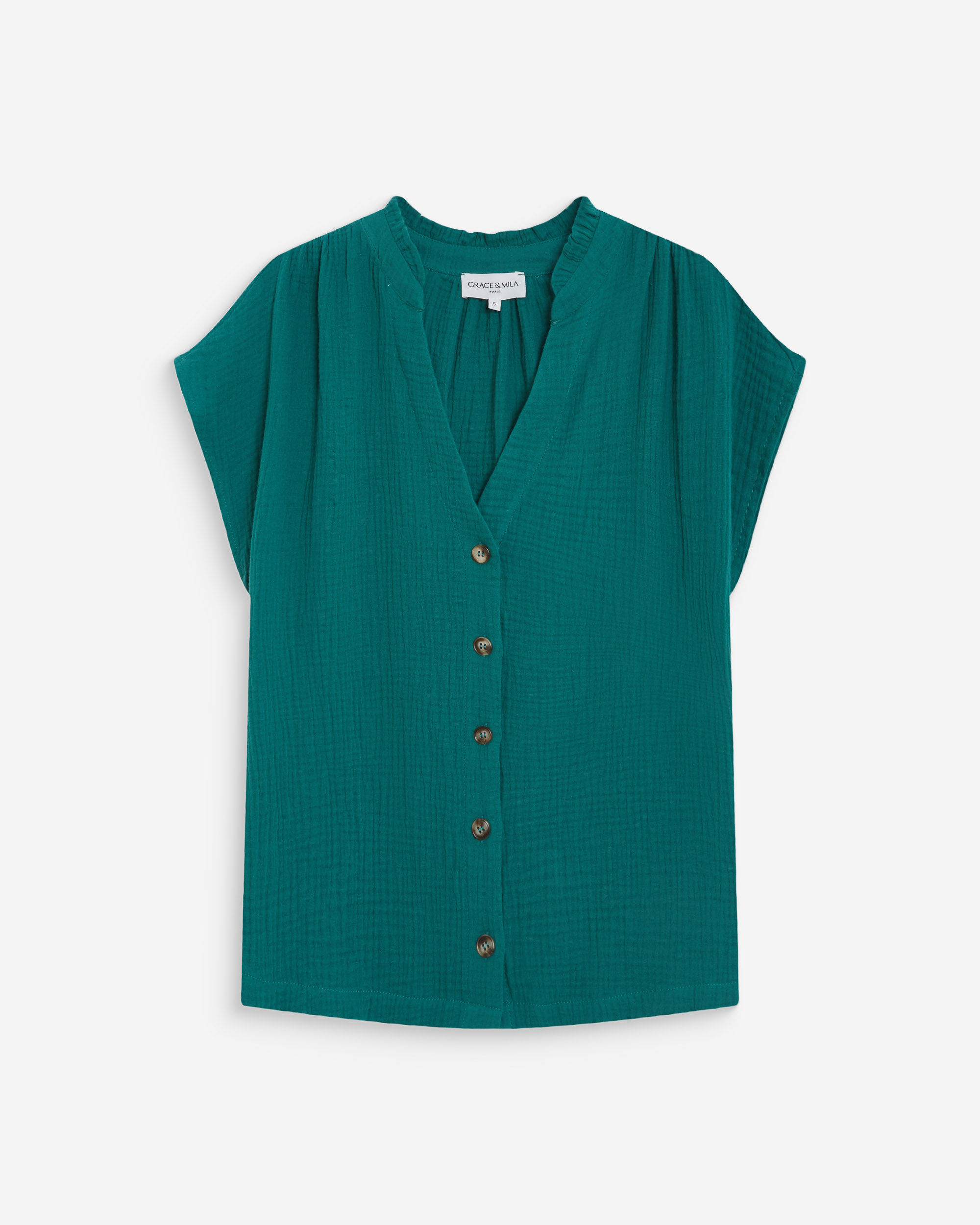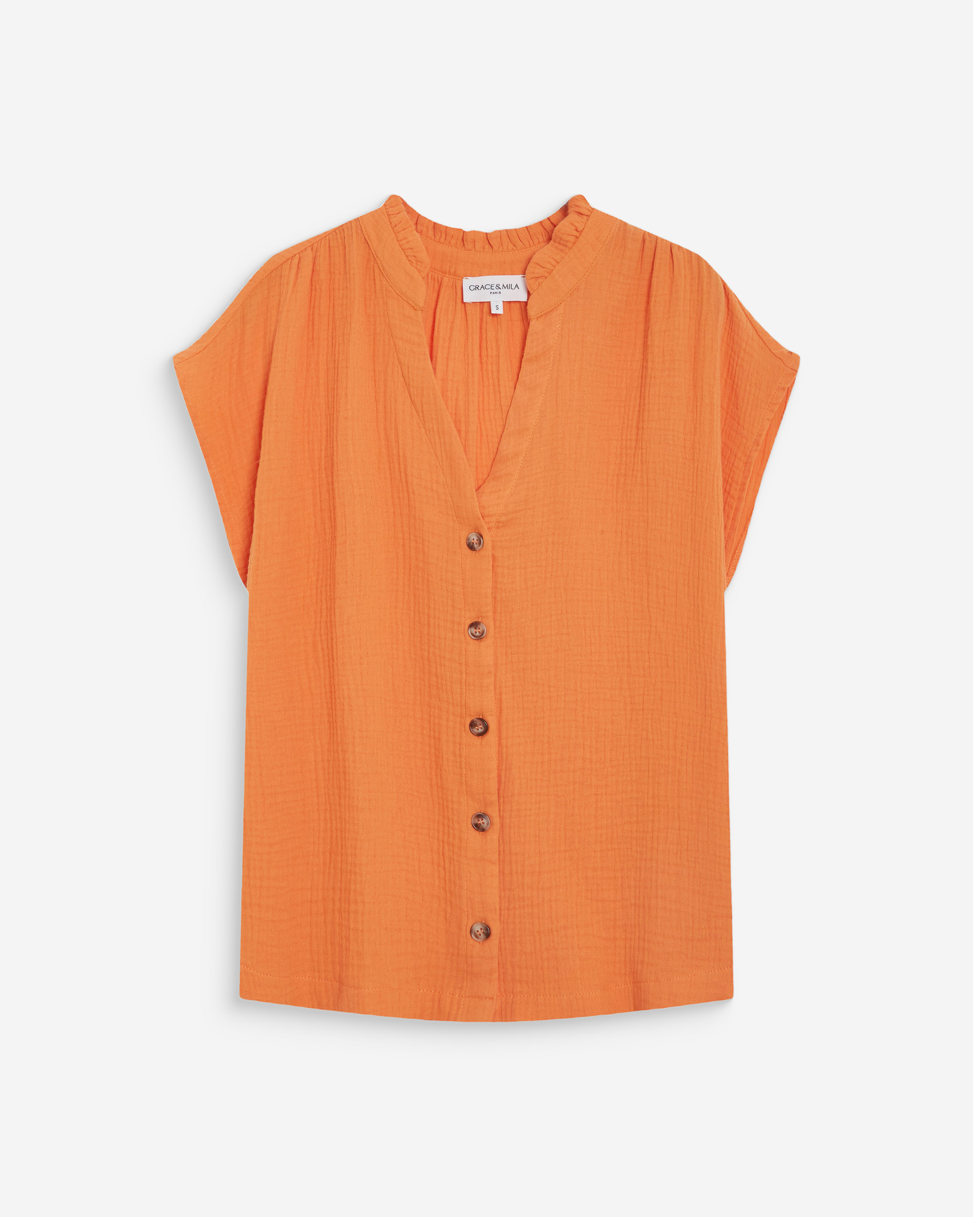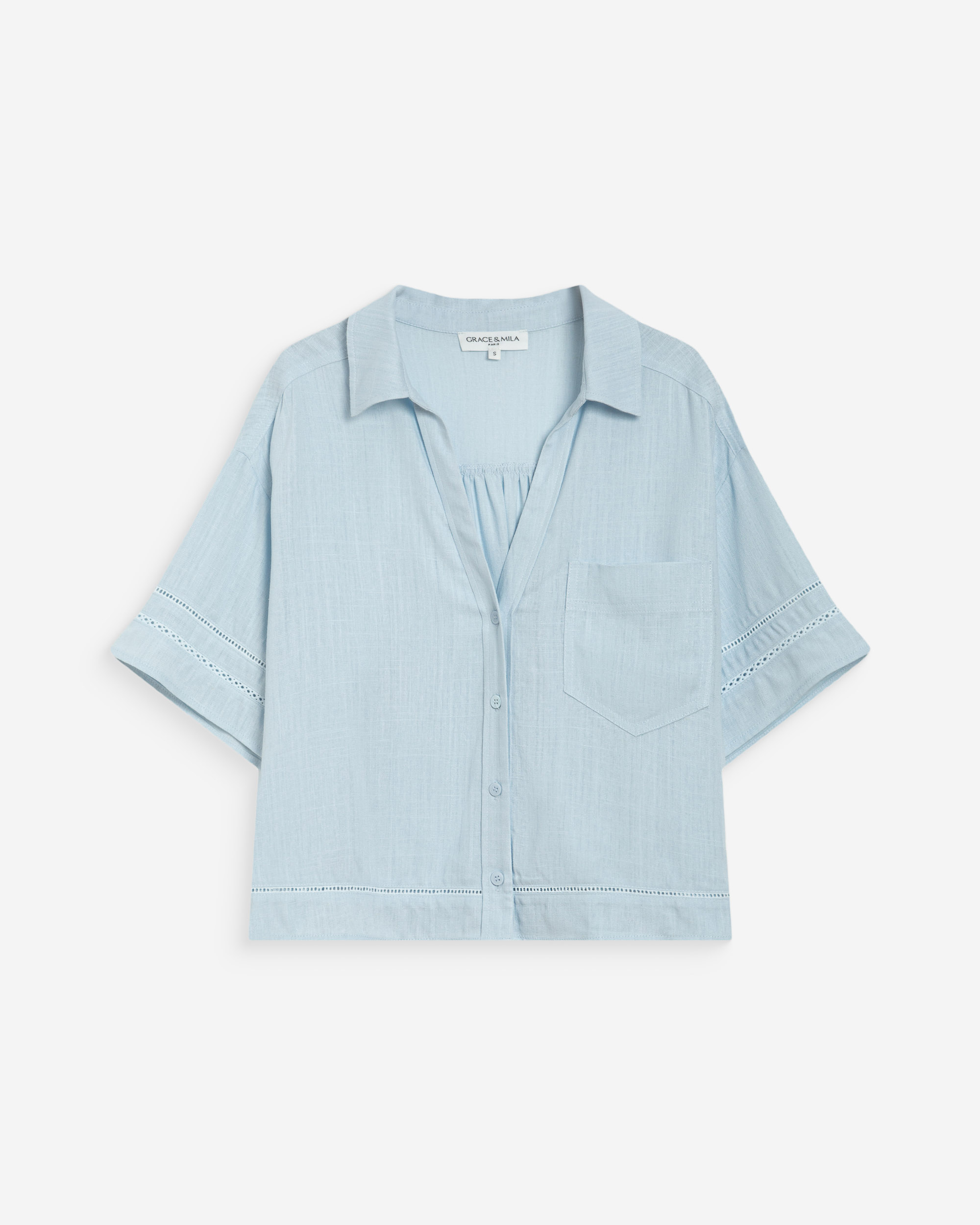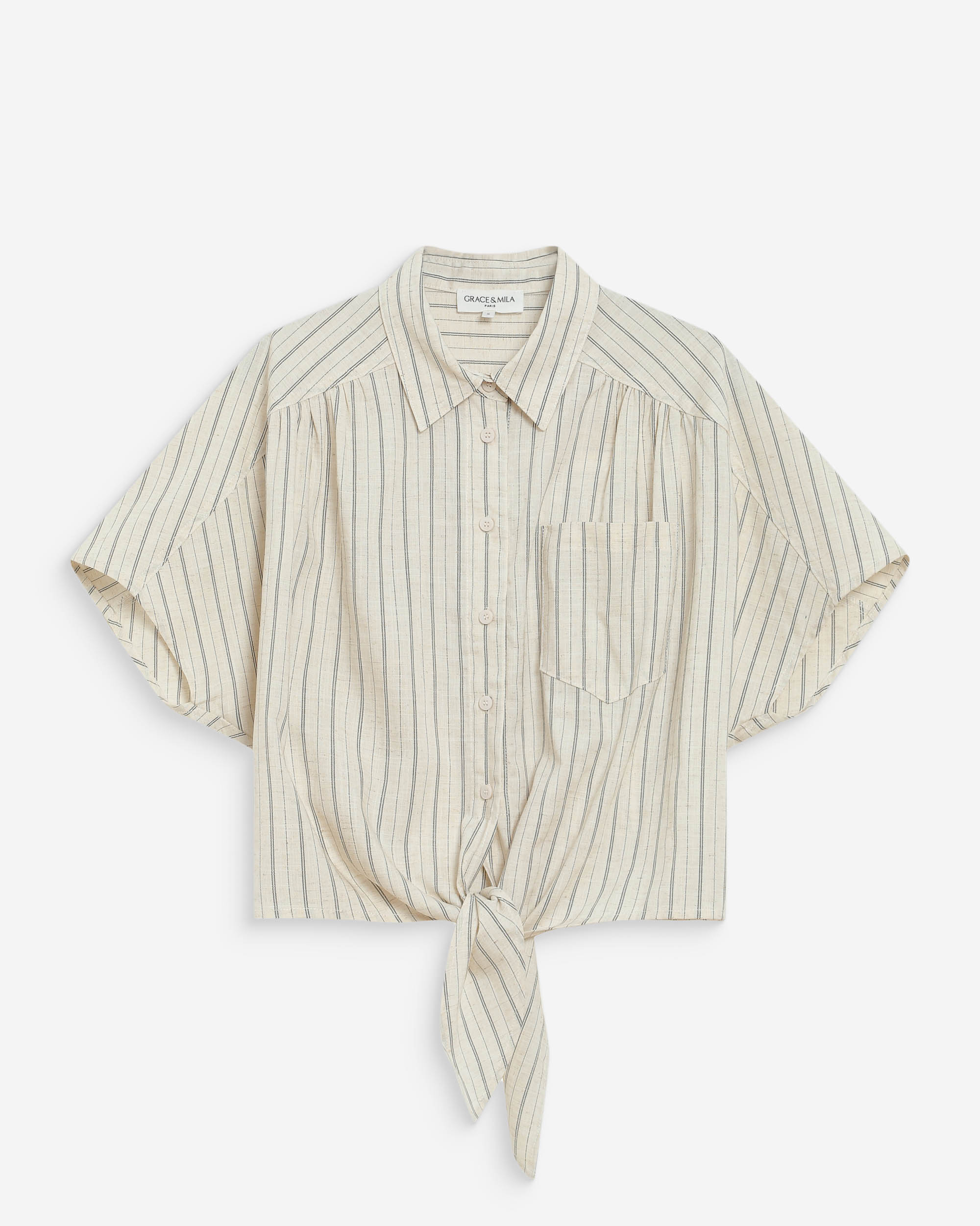 La blouse droite VALORY a été conçue dans un esprit à la fois décontracté et raffiné. Les poignets boutonnés agrémentés du monogramme G&M apportent une signature subtile et élégante. L'encolure fendue en V, les fronces aux épaules et les manches bouffantes soulignent la féminité de la silhouette.