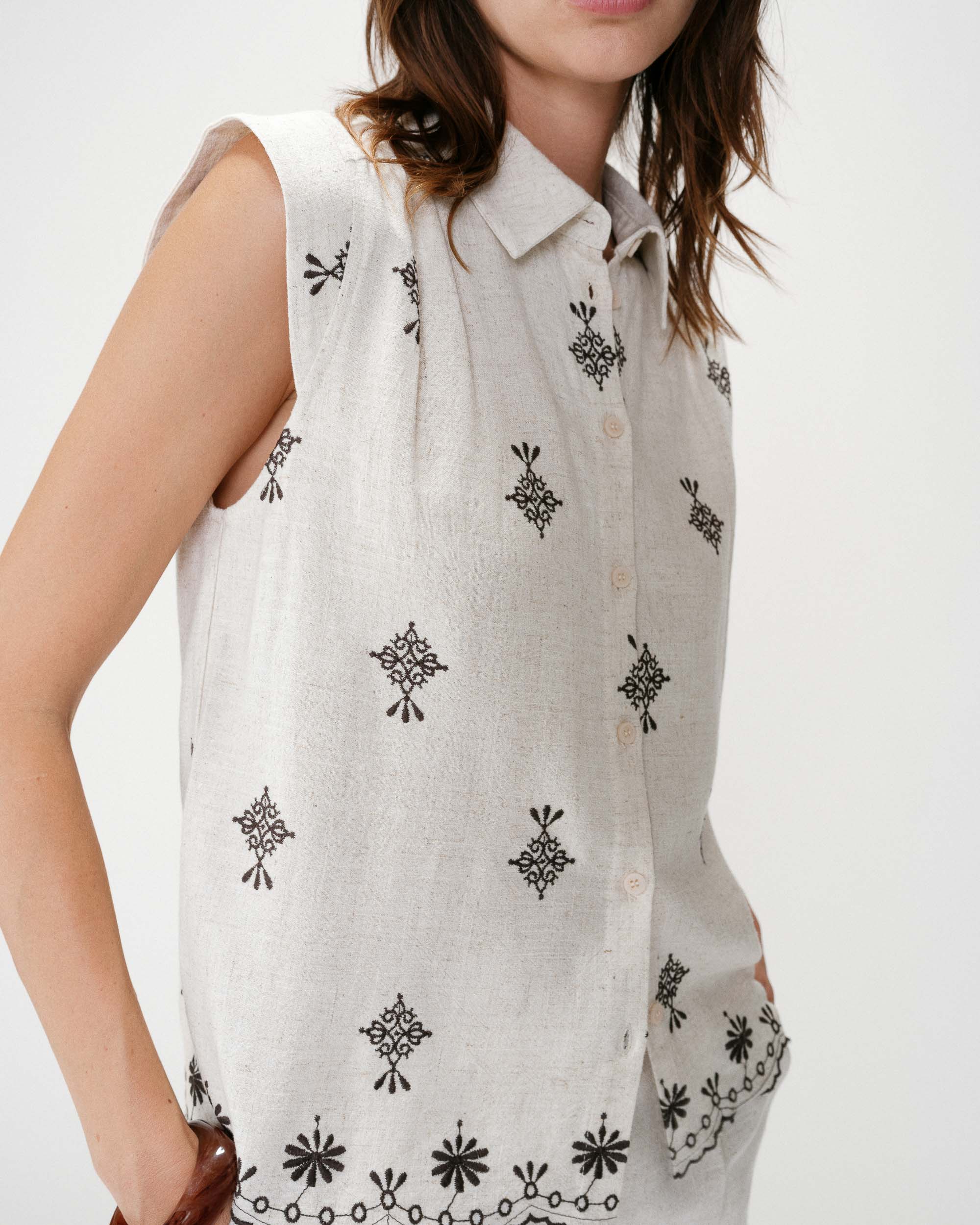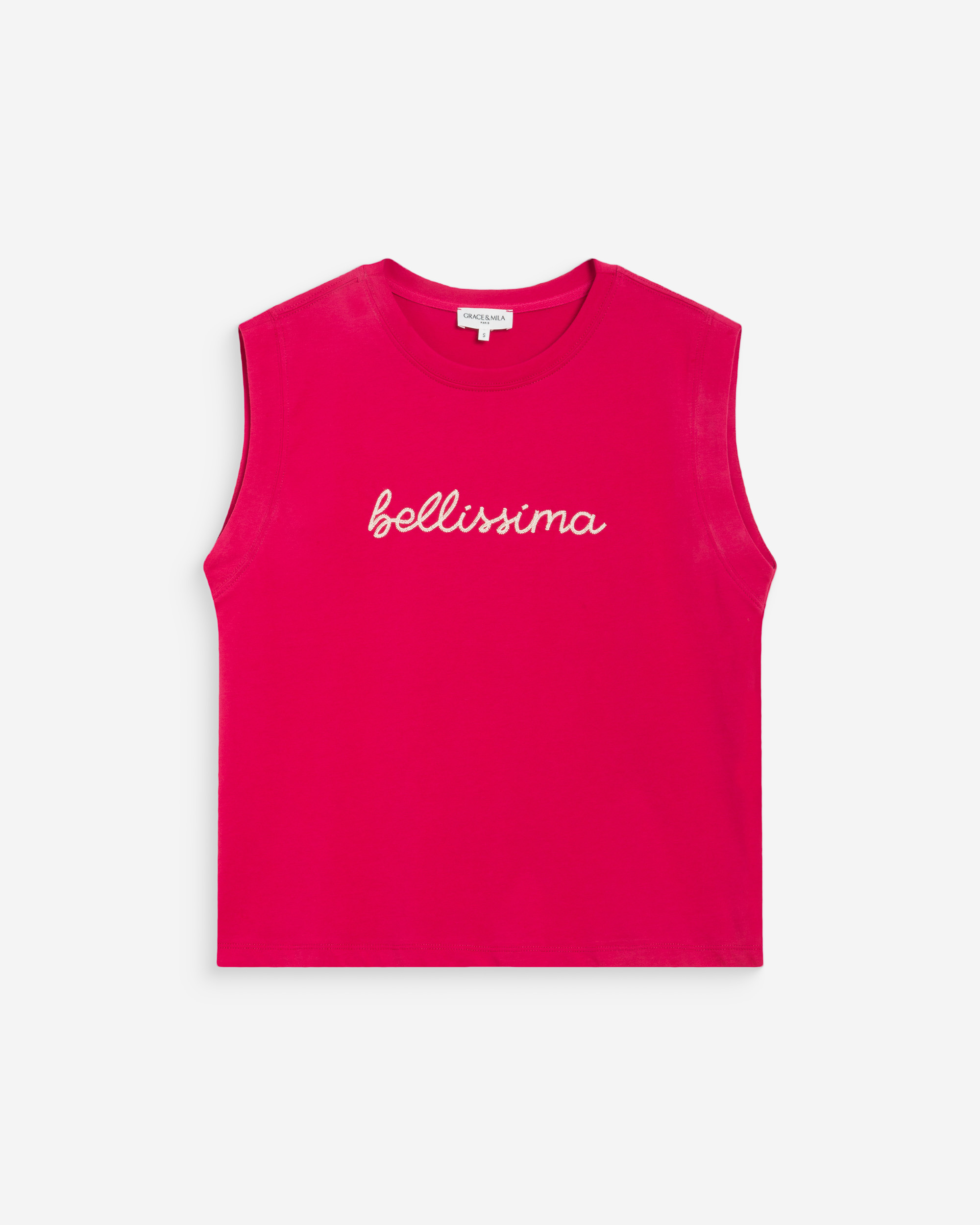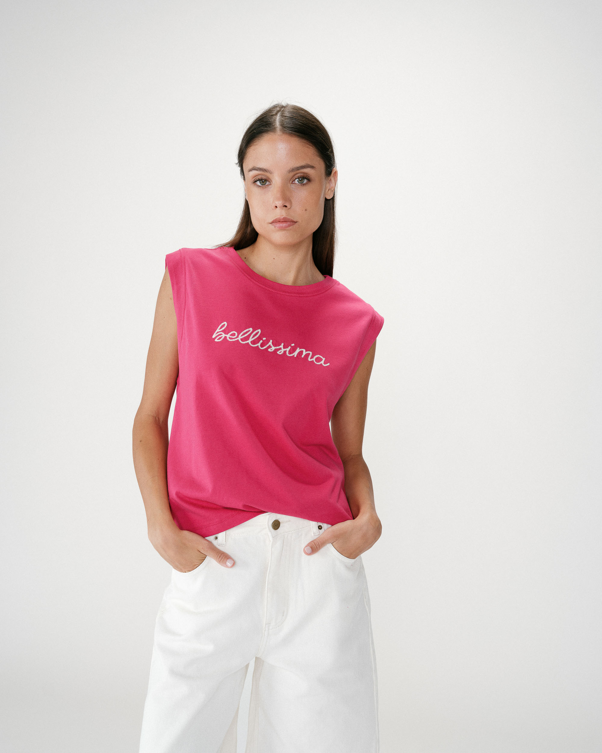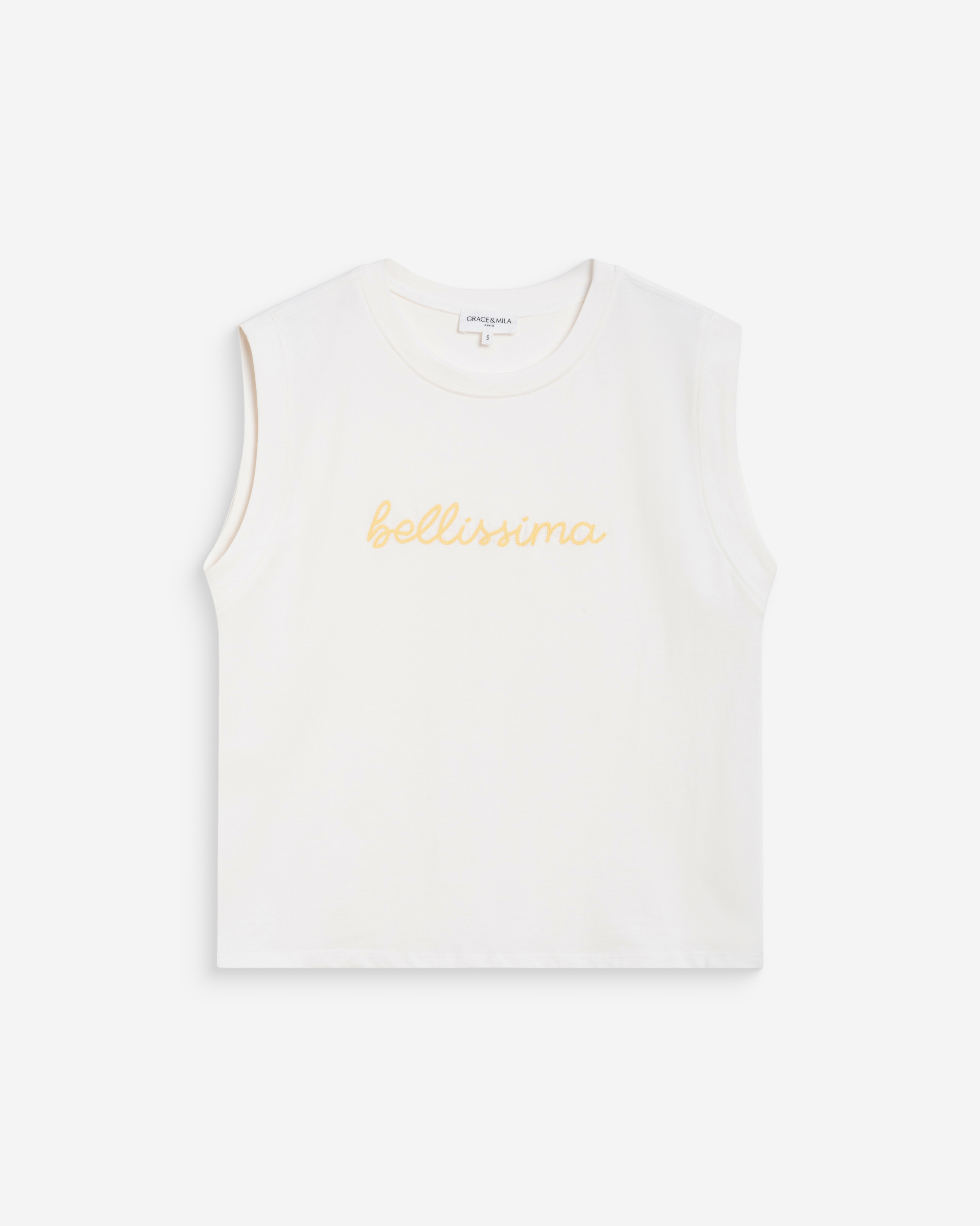 Confectionné en 100% coton, le top sans manches WILLOW est agrémenté du message brodé 'Belissima'. La coupe large et le col rond dessinent une silhouette simple et décontractée.