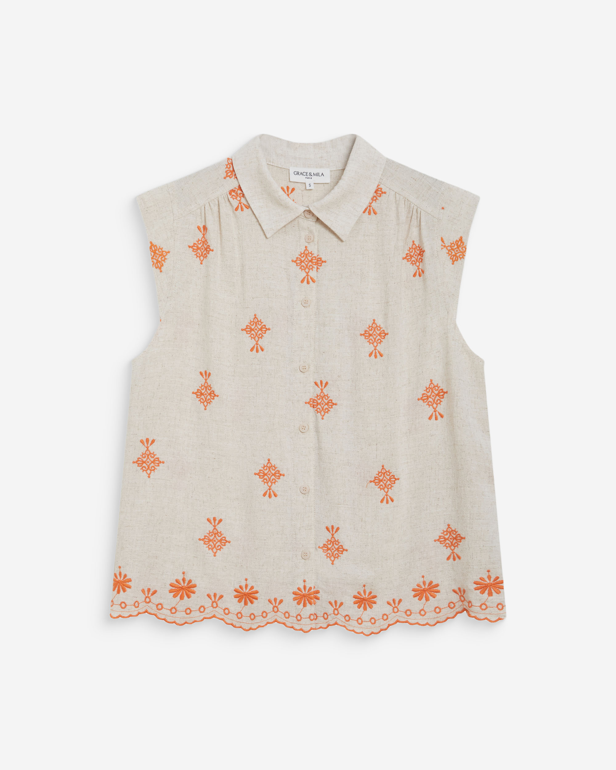 La blouse à manches longues VANDITA réinvente la broderie anglaise et propose une silhouette élégante et romantique. La coupe droite s'associe à des manches 3/4 à poignets élastiqués et à un col mao pour proposer des lignes classiques et élégantes. La blouse brodée VANDITA est une pièce féminine et raffinée.