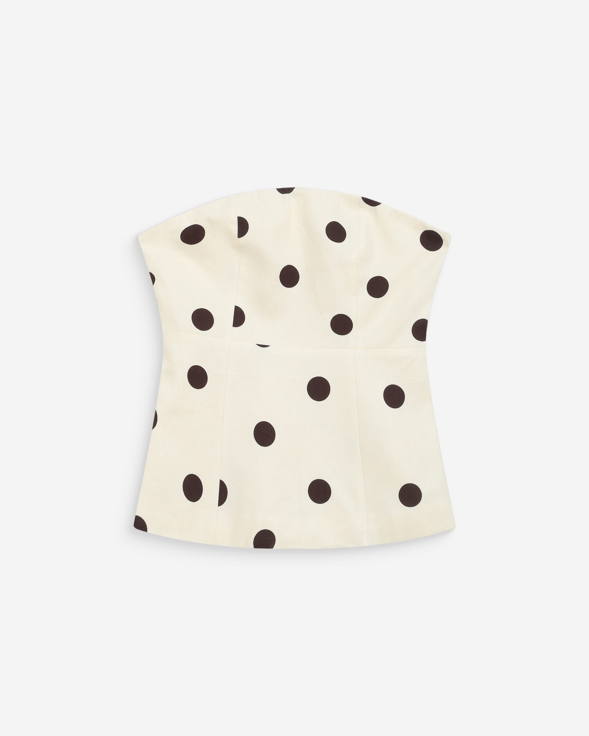 La maison réinvente le motif à pois rétro et iconique en proposant le top bustier WIXIE. La coupe ajustée valorise les courbes féminines tandis que le dos smocké offre plus de maintien. Les finitions soignées, telles que la fermeture zippée invisible sur le côté et la doublure intégrale, en font une pièce travaillée et raffinée.