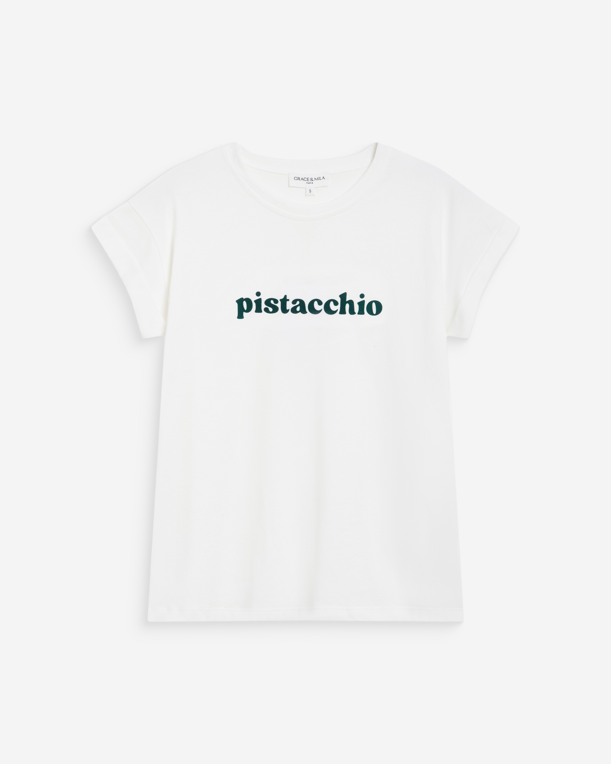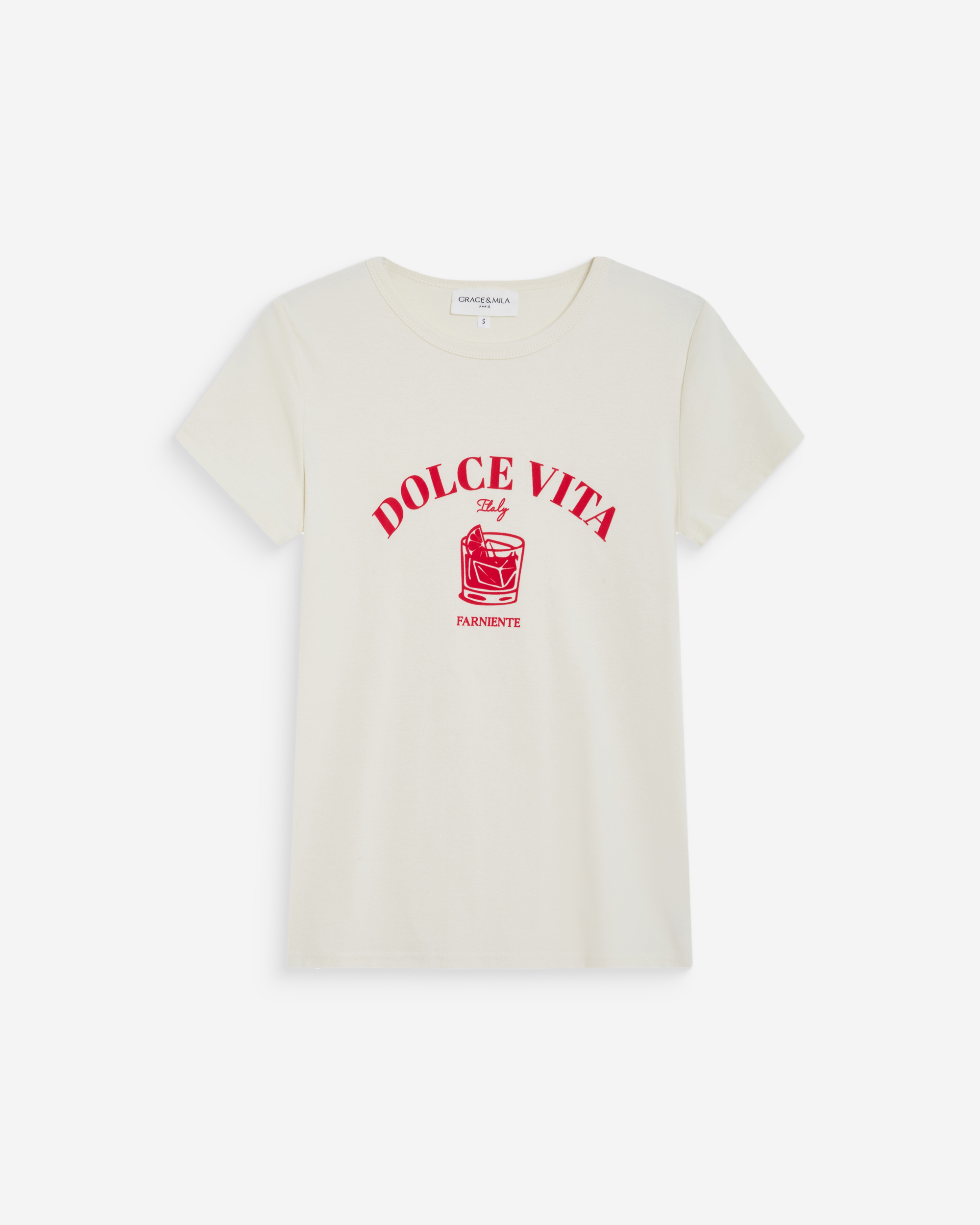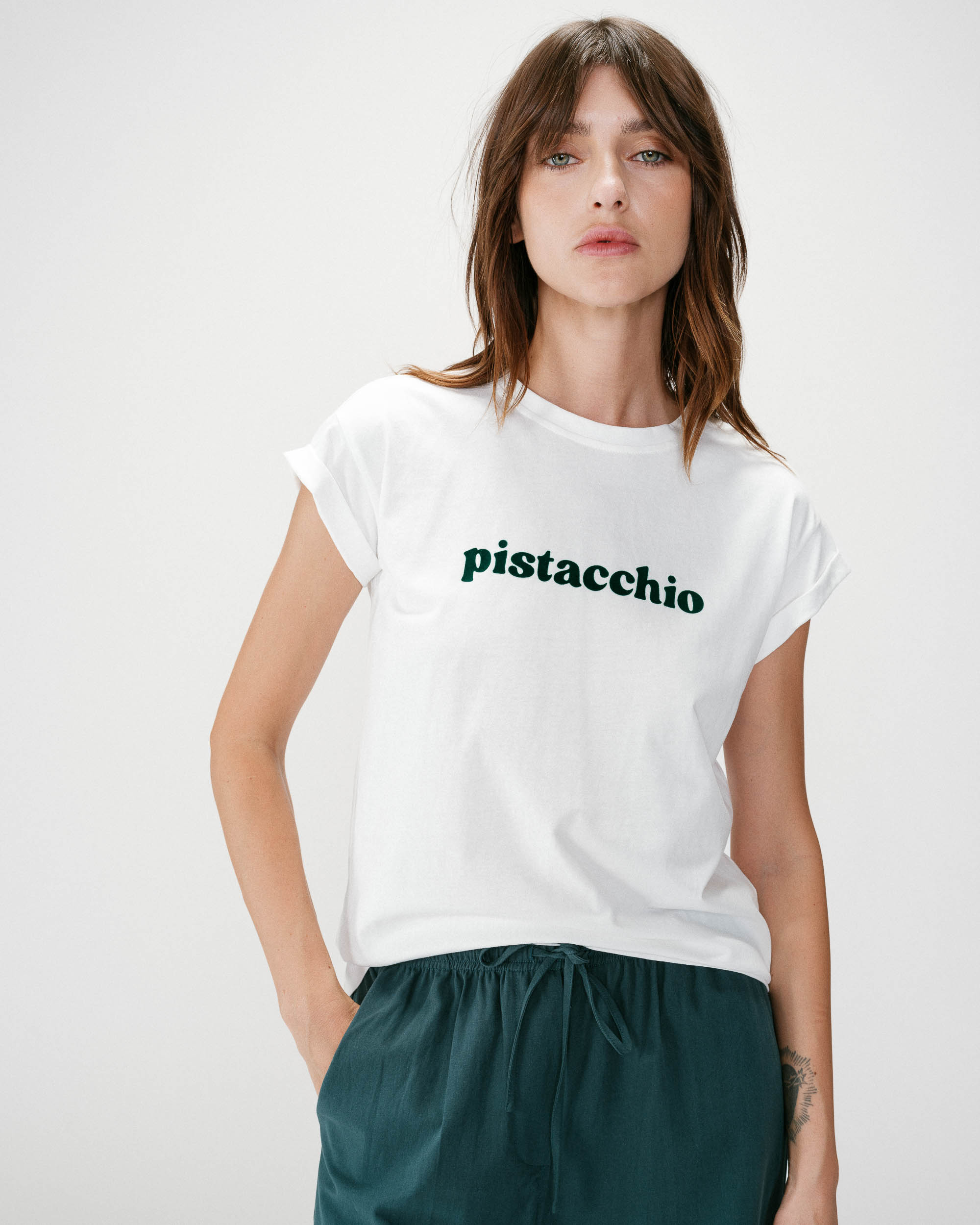 The short-sleeve t-shirt WYLO is made from 100% cotton and offers a relaxed silhouette. The model is adorned with a velvet-printed message inspired by Italian treats.