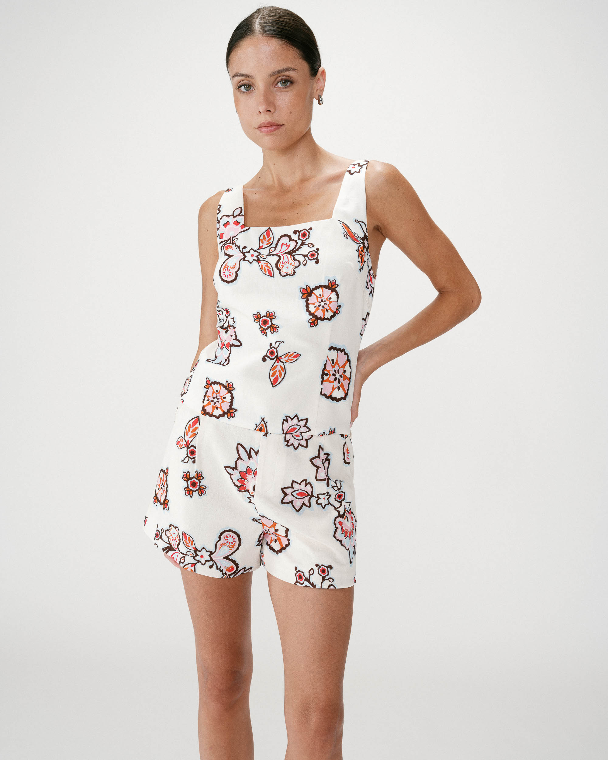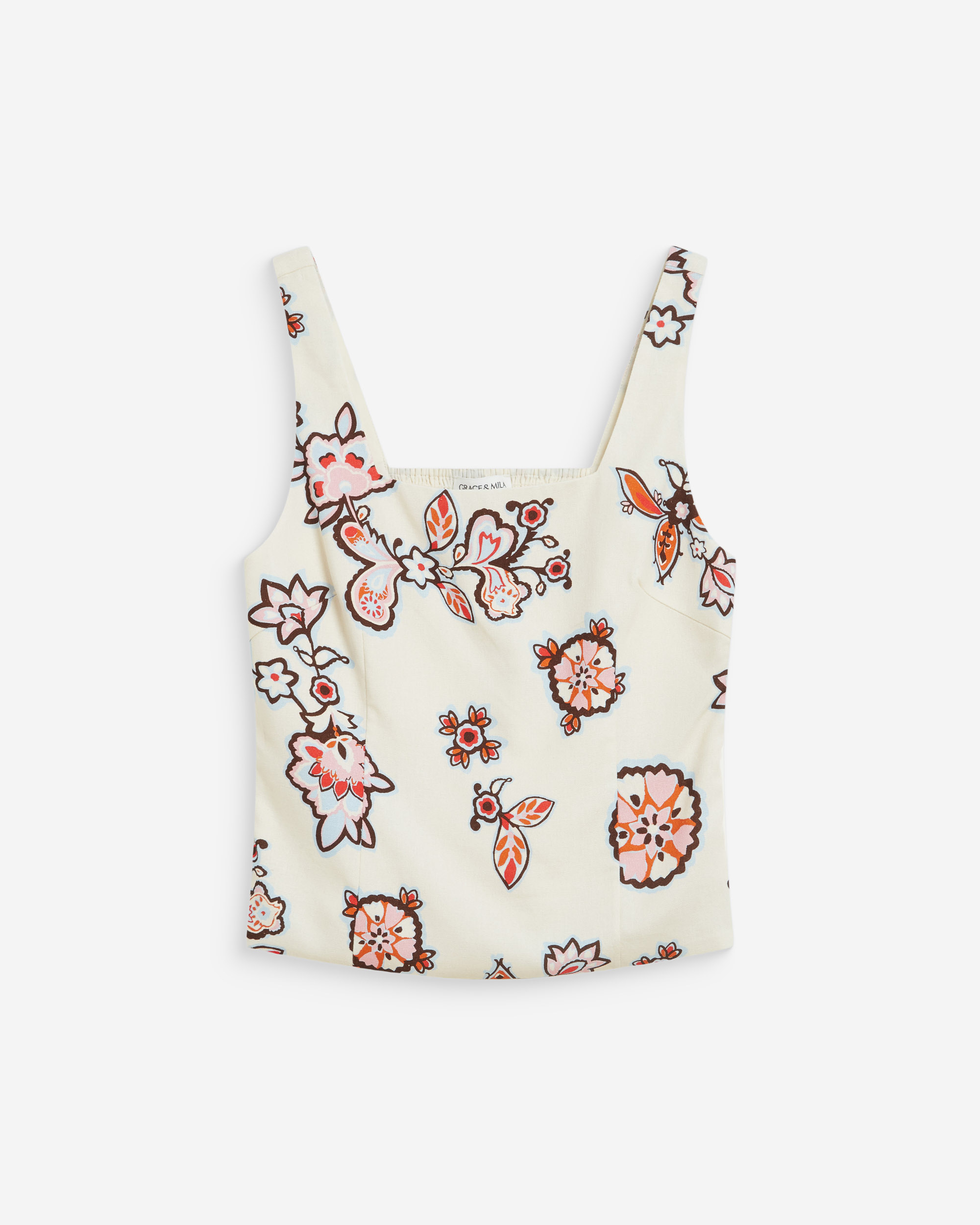 La coupe simple et épurée du top sans manches WINDSOR est rehaussée par un tissu à imprimé floral aux teintes claires et douces. L'encolure carrée structure la silhouette et propose une allure moderne.