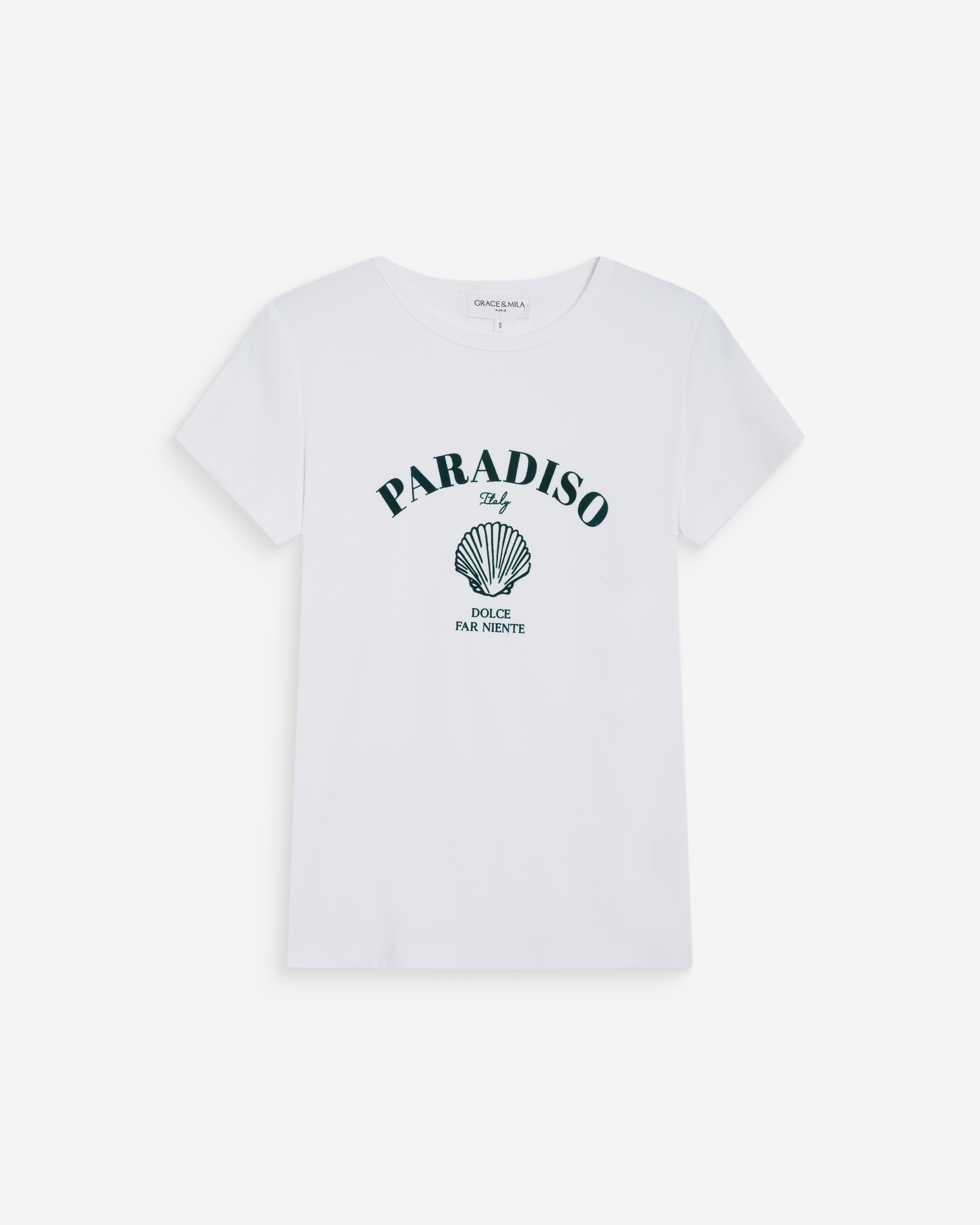 Le t-shirt à manches courtes WYLO est confectionné dans un tissu en 100% coton et propose une silhouette décontractée. Le modèle est agrémenté d'un message imprimé en velours, inspiré des gourmandises italiennes.