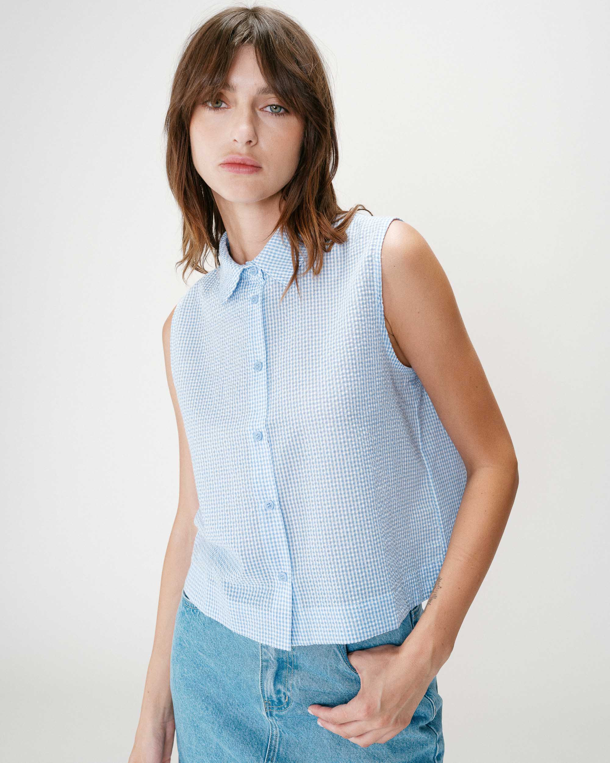 Confectionné dans un tissu vichy 100 % coton, le top sans manches WYNEL est une pièce féminine à l’esprit romantique. La coupe ajustée, les fines bretelles réglables et le dos smocké font du top à carreaux WYNEL une pièce travaillée et soignée.